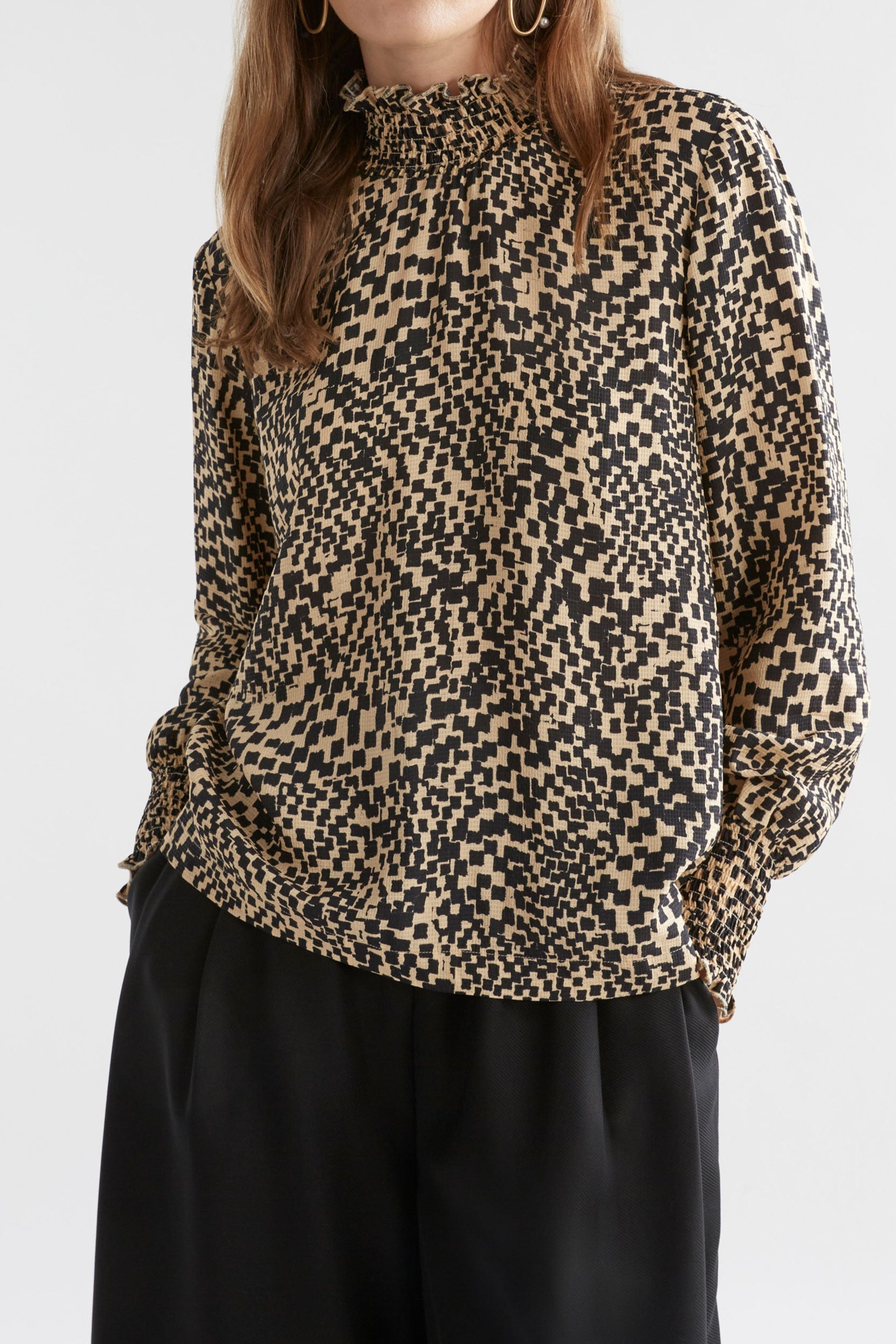 Crafted from a waffle crepe viscose, the Veda Turtleneck Top features our Beige Sinda Print, thoughtfully designed to colour-match seamlessly both with separates across the collection and your wardrobe staples. Shirred gathers at the neck and cuffs add interest, making this piece the perfect base layer for styling under knitwear and jackets.