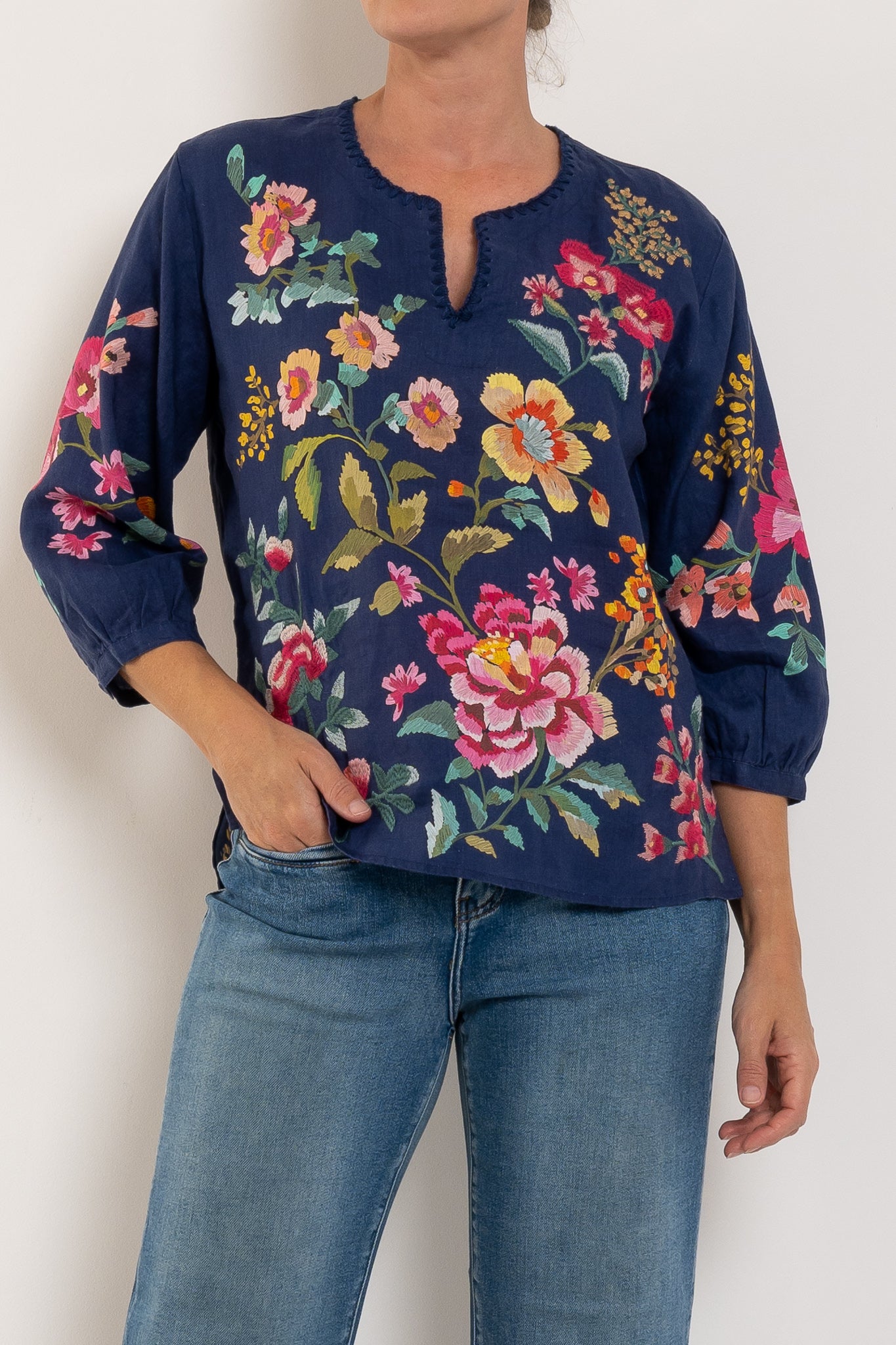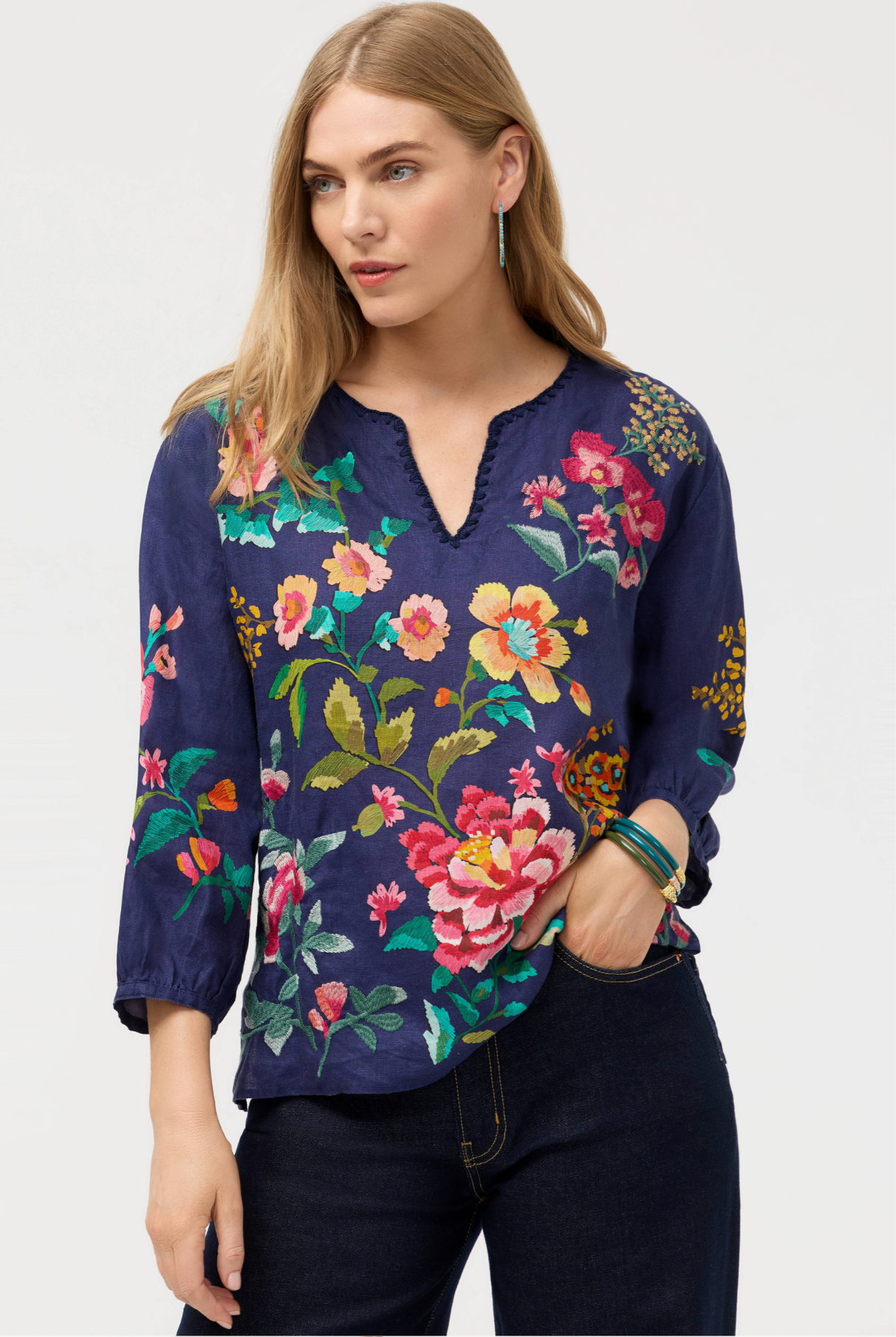 Johnny Was Split Neck Blouse Miraze