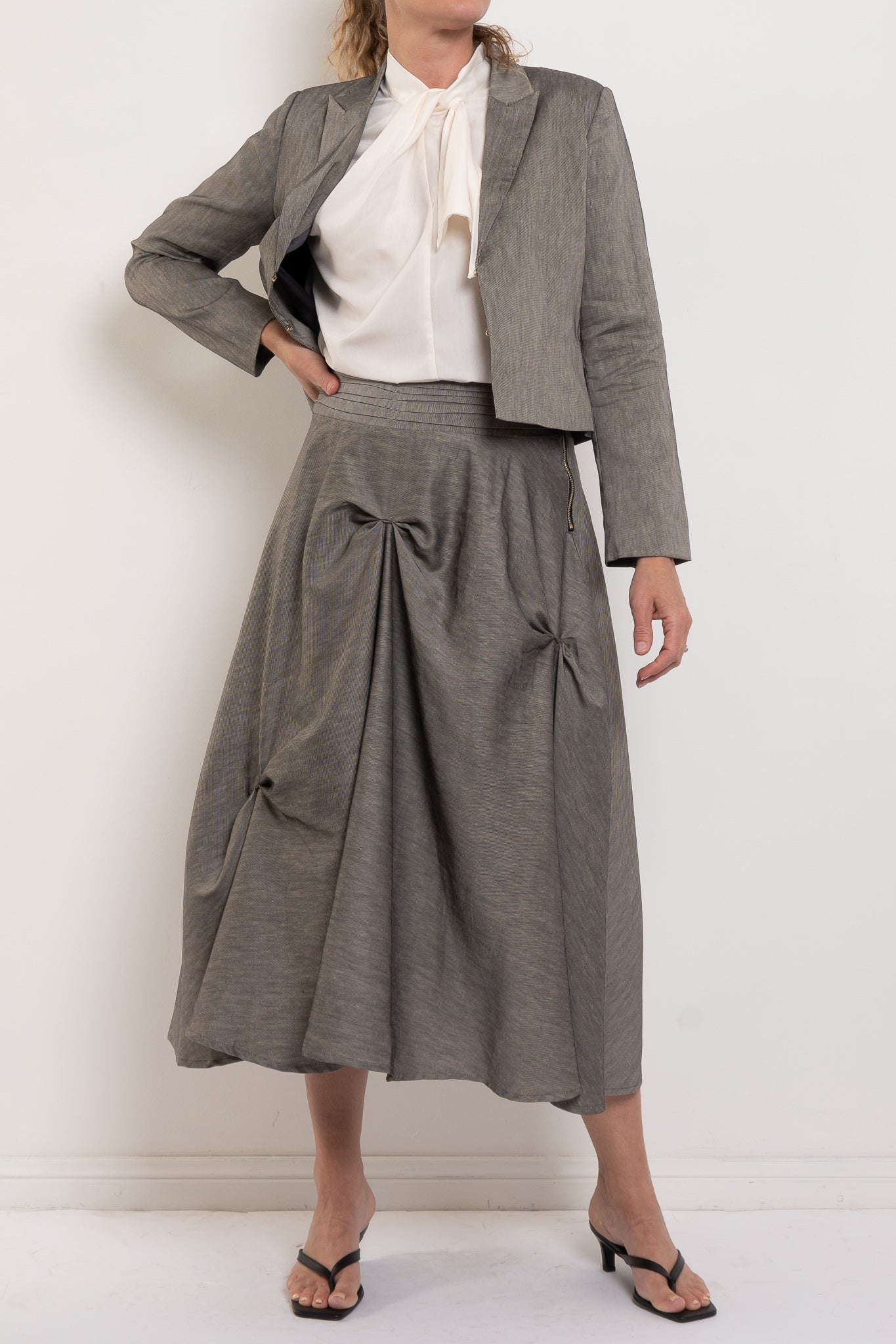 Make it a power set with the matching Chute Skirt and heels, or keep it casual with a crisp tee and denim for an off-duty look that still says “I’ve got this.”