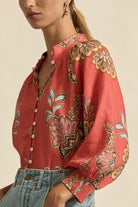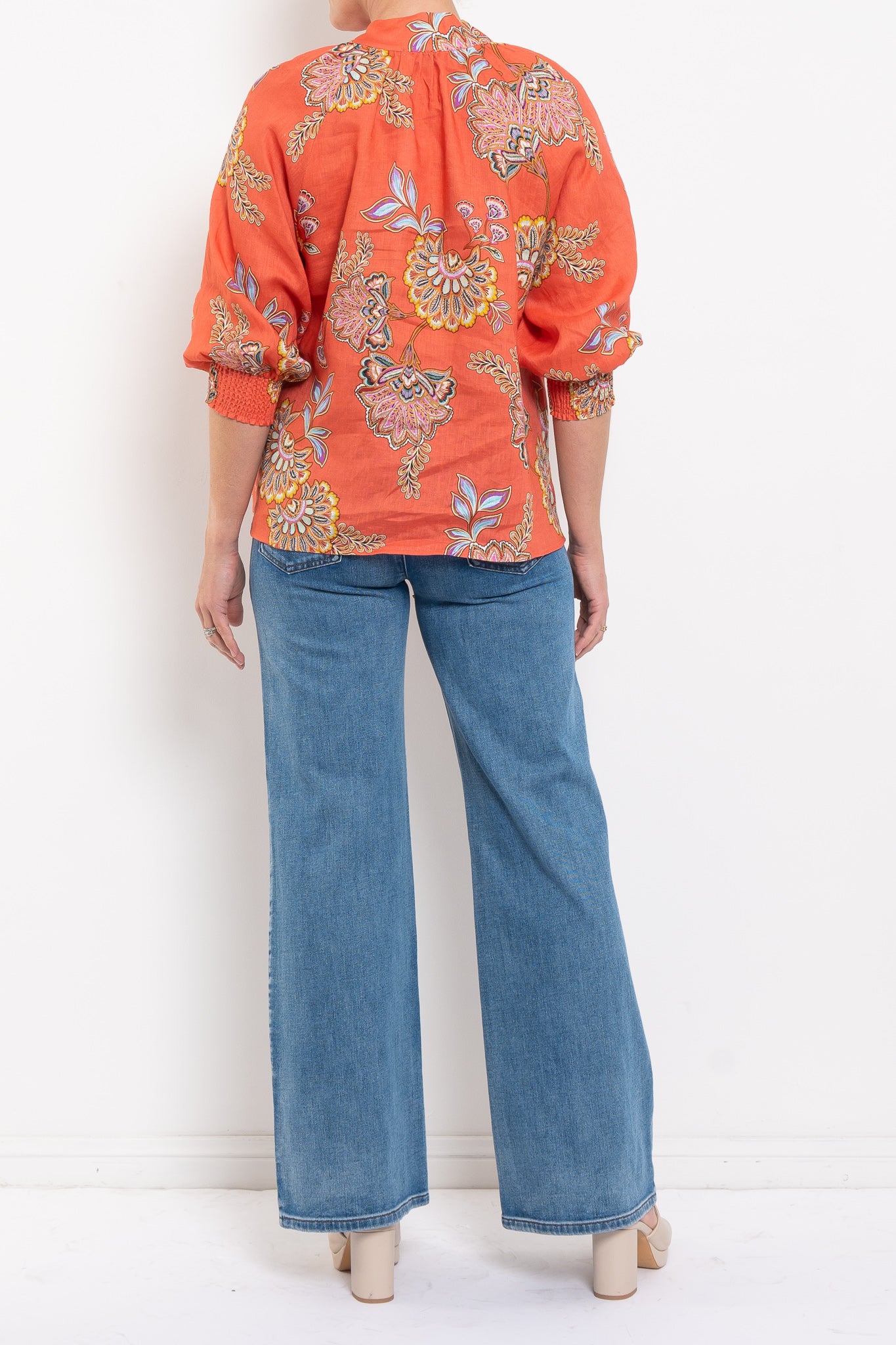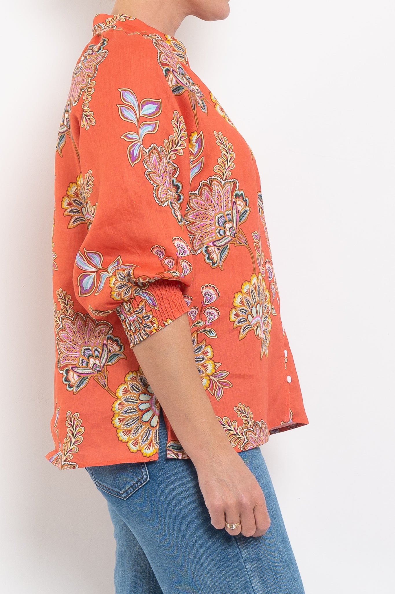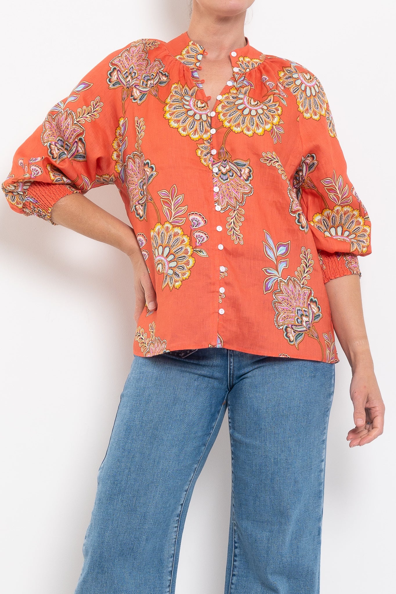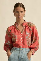 In Zoe Kratzmann’s exclusive K’gari Melon print, the Inspire Top is a light and versatile option for warm-weather dressing. Its high stand collar and button-down front feel polished, while elasticated loops and cuffed sleeves add a touch of charm. Designed for a relaxed fit, it layers beautifully and makes an ideal travel companion – easy to style, easy to wear, and effortlessly chic.