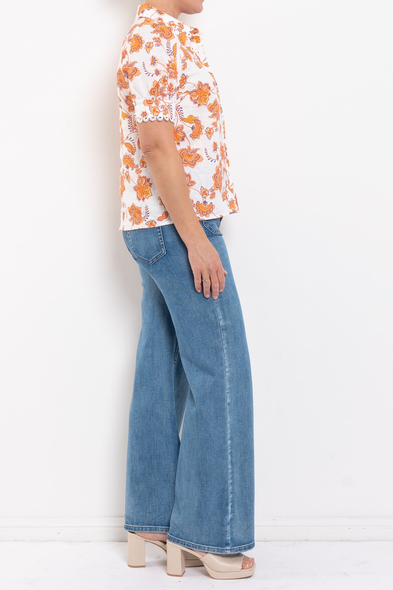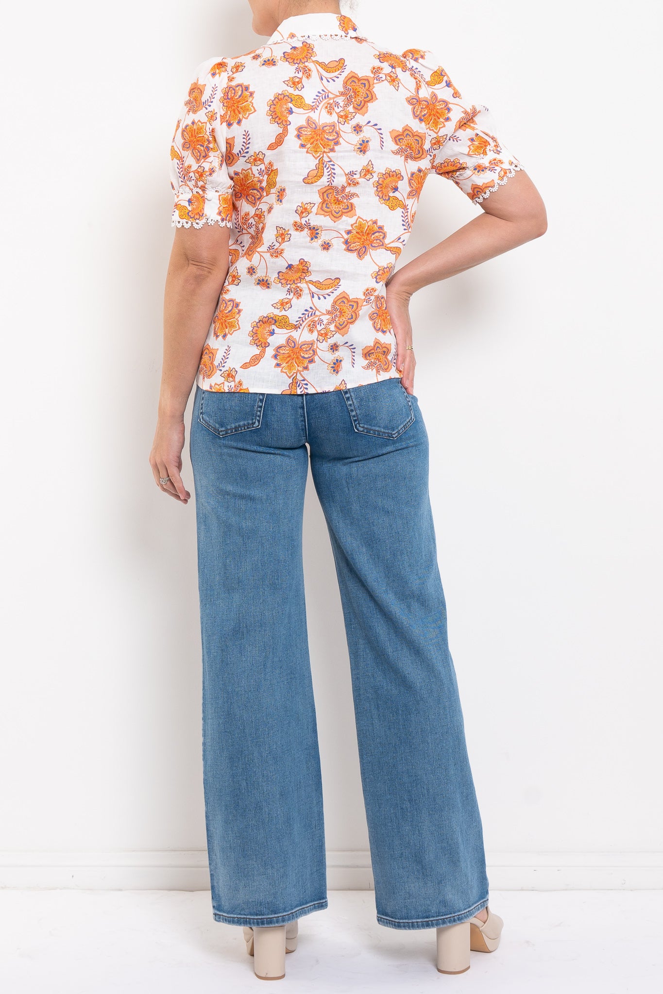 In Zoe Kratzmann’s exclusive Orchard Botanic print, the Tether Top feels both refined and relaxed. Lace trims and fabric-covered buttons lend a nostalgic touch, while tulip sleeves keep the look fresh and feminine. Its polished yet wearable design makes it a versatile choice – pair with denim for effortless daytime chic, or with tailored pants to take it into spring events.