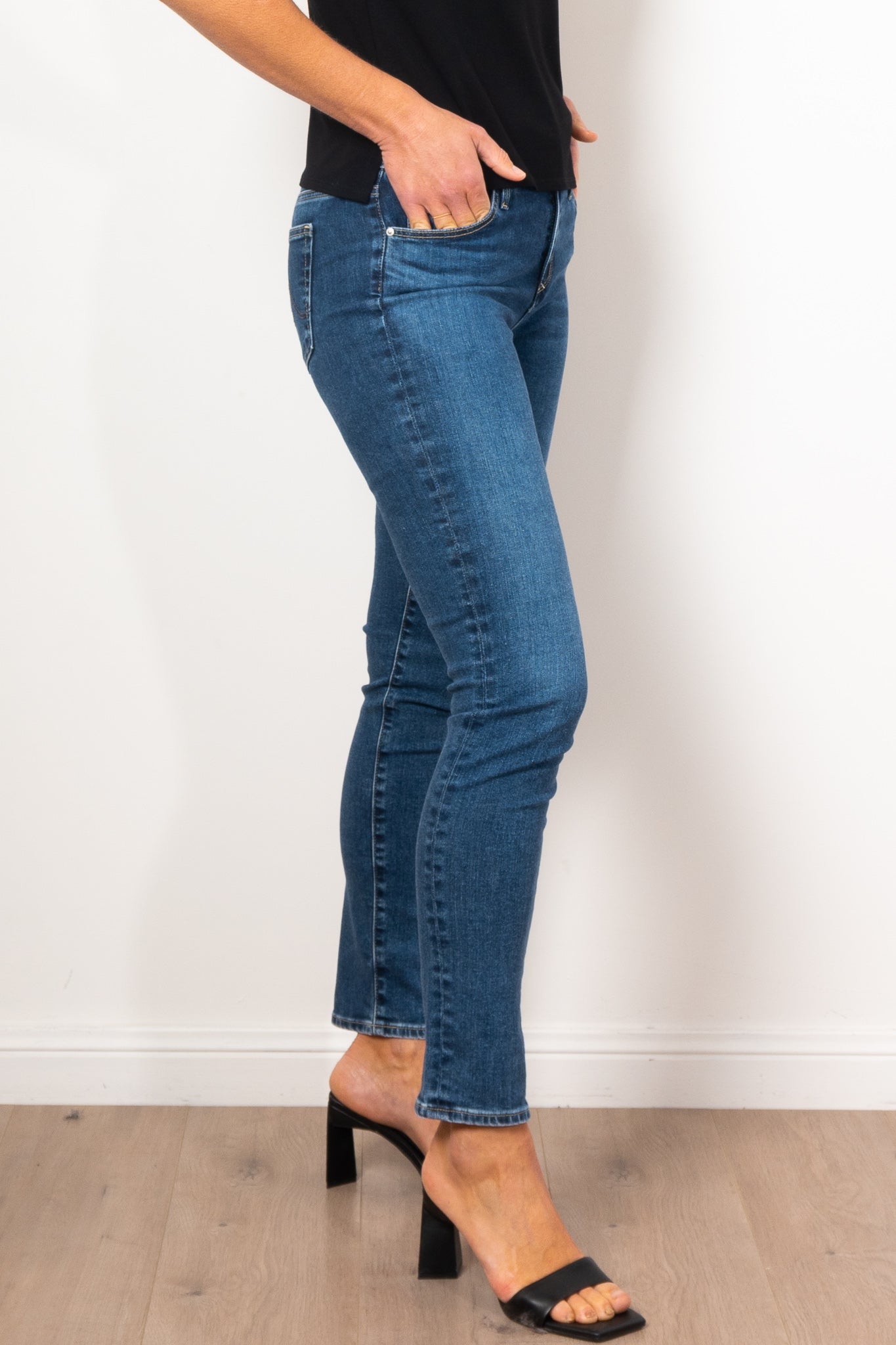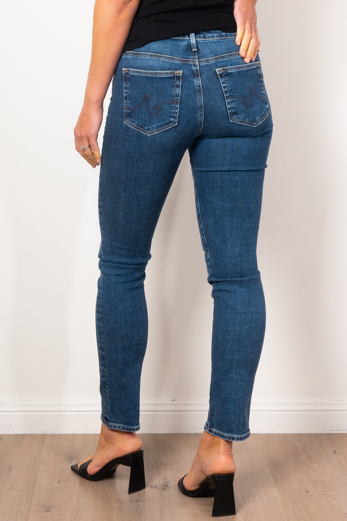 Introducing a new colour in the best selling Prima Jean, a mid-rise cigarette cut in a dark indigo wash with a well-worn look. Made with body-hugging Rouge Advanced Stretch Denim, it moves with you and maintains its shape. AG Vapor Wash™ reduces environmental impact, while the vegan and biodegradable patch adds a sustainable touch.