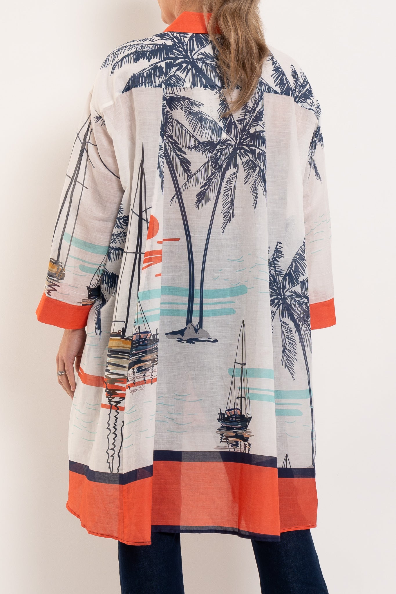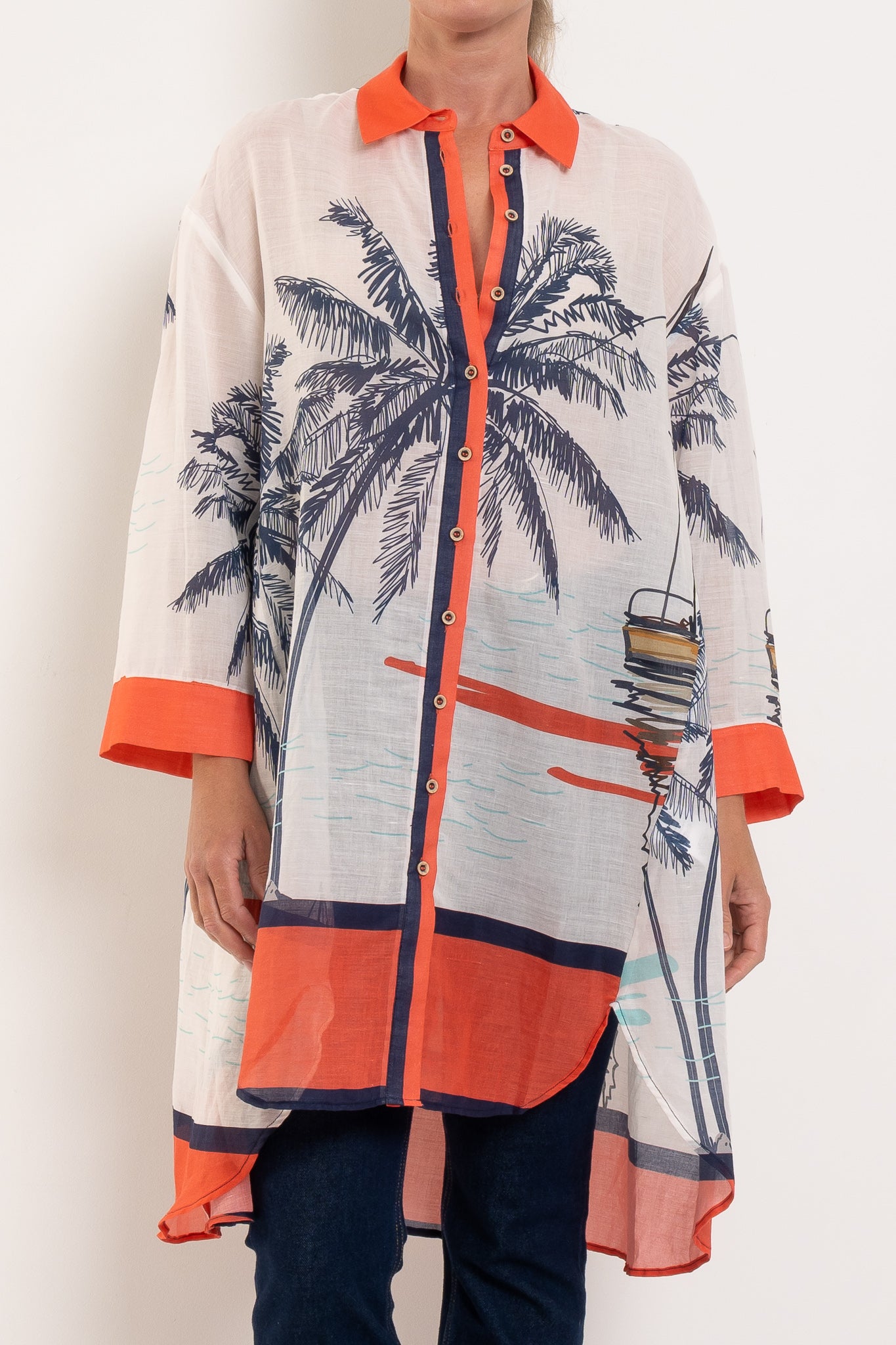 With endless styling opportunities granted by its button through front, the ‘Sail-Abrate The Good Times’ shirt is a key player this season. Crafted in the gauzy, ‘Float Your Boat’ cotton, ramie blend this shirt showcases a generous trapeze shape with a contoured high-low hem and a relaxed drop shoulder. Pair as a light layer over jeans and a tank for effortless, casual styling or wear buttoned through as an easy one-and-done dress.