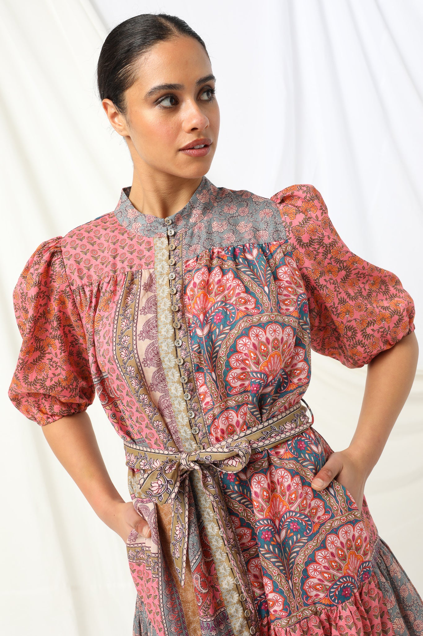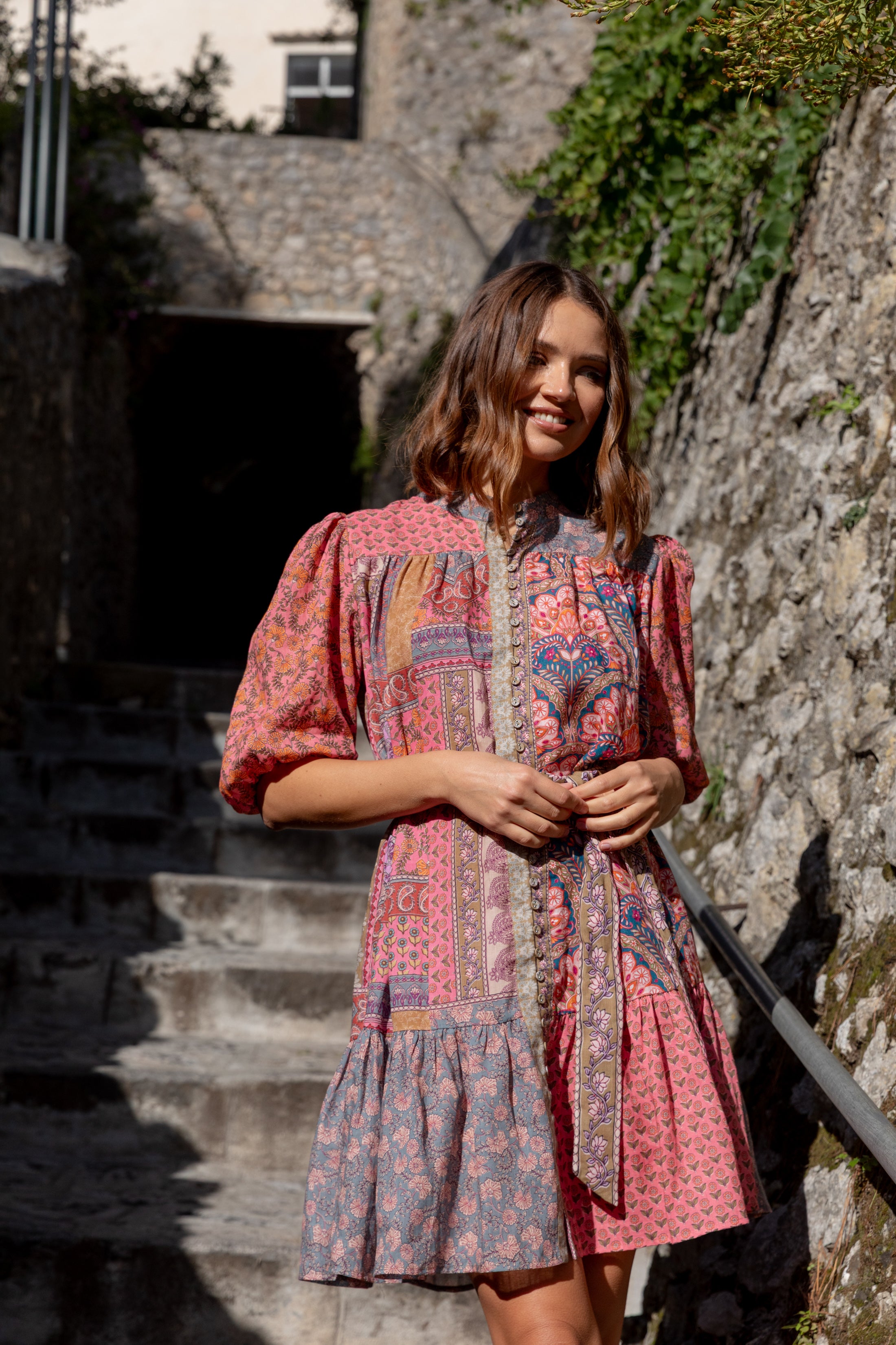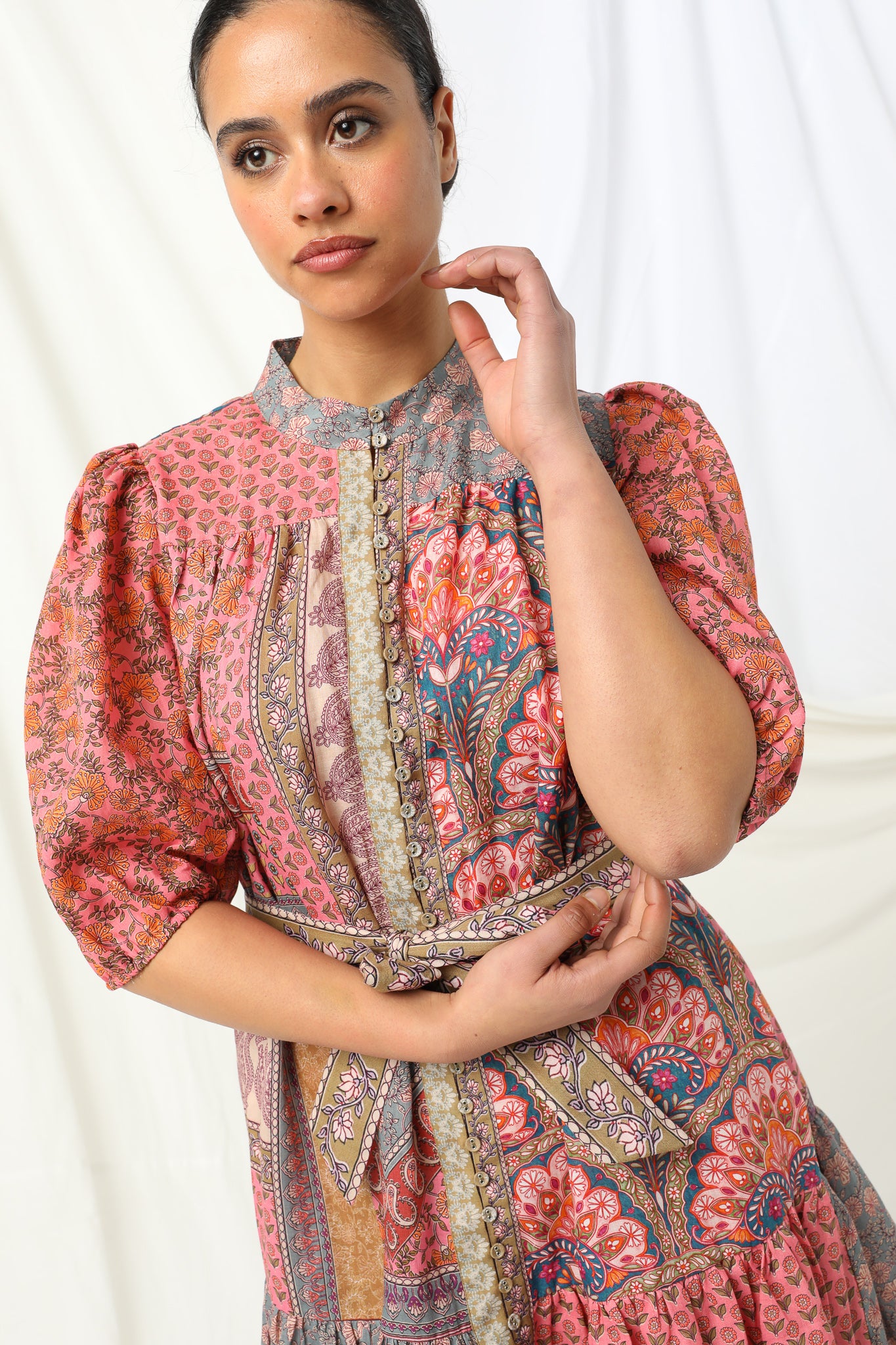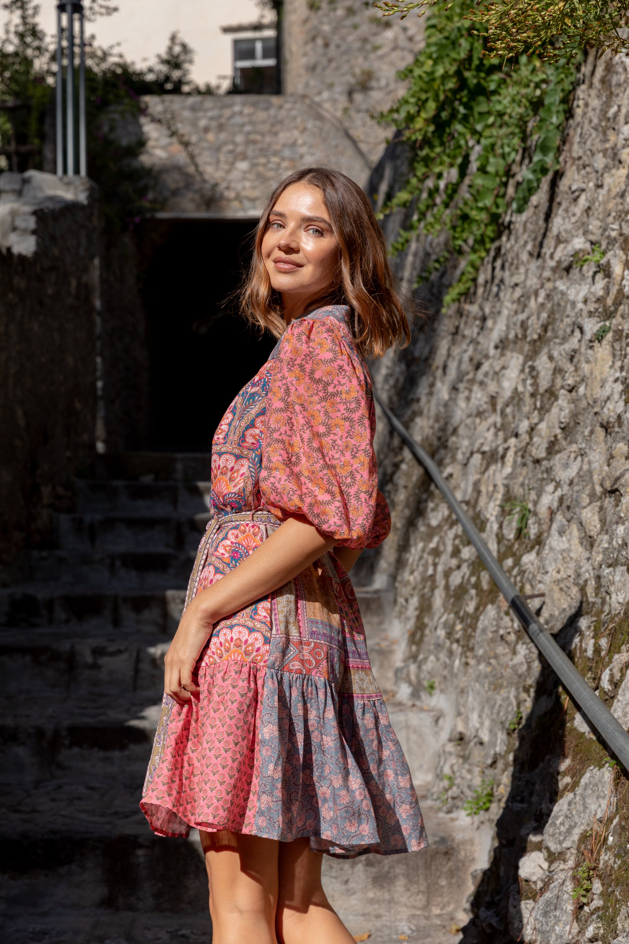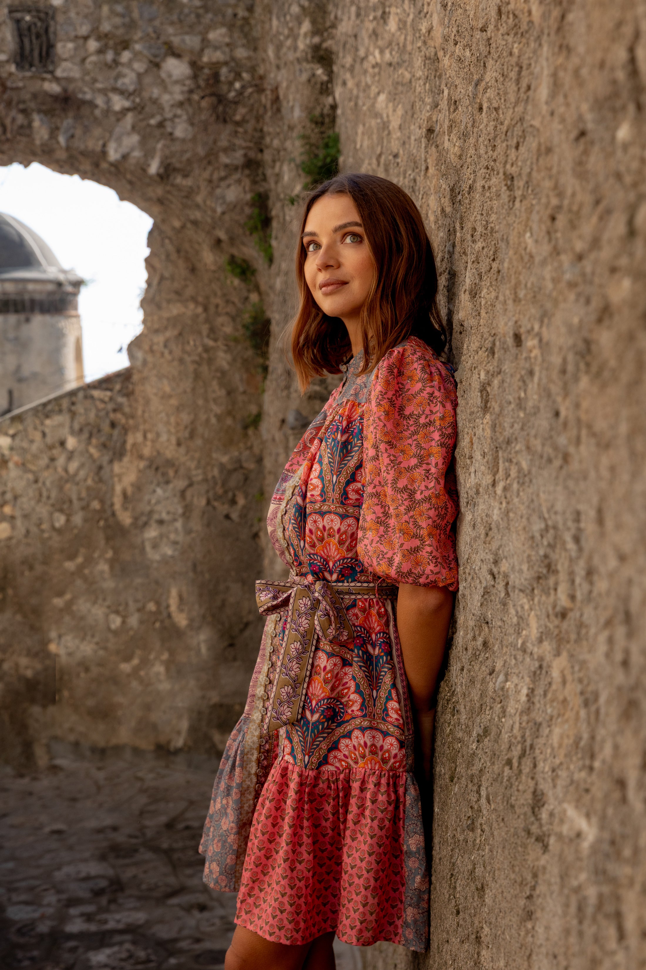 Crafted from 100% linen, the Sophie Dress features Kachel’s signature patchwork print, bringing colour, texture and individuality without feeling overdone. The gently shaped waist tie allows you to define your silhouette or wear it looser for an effortless feel, while the softly gathered skirt adds movement and ease.