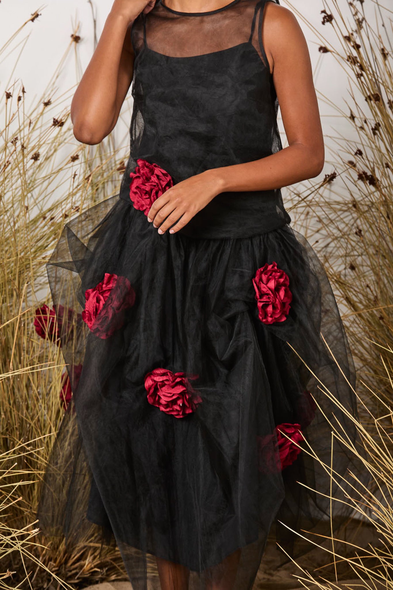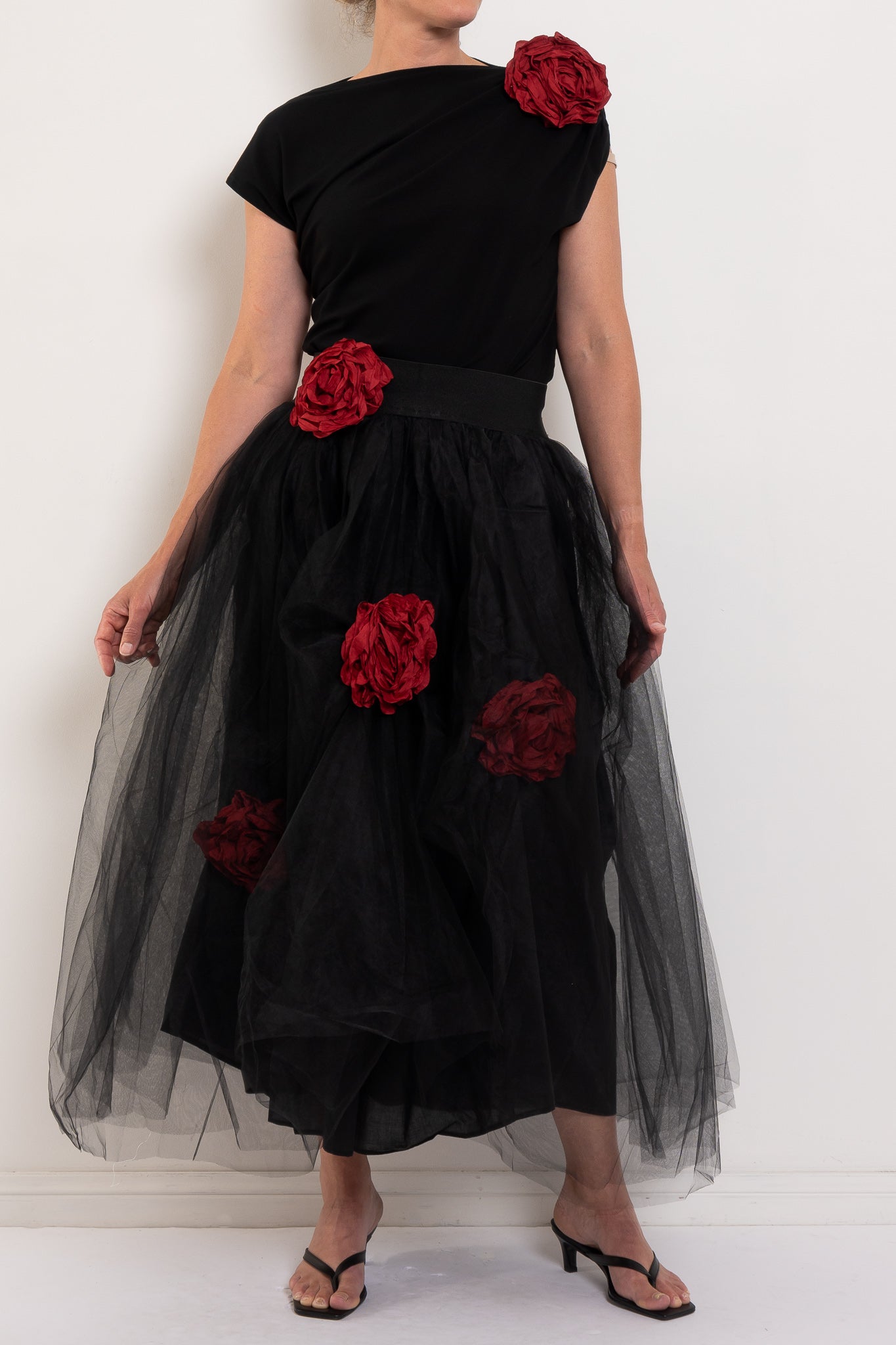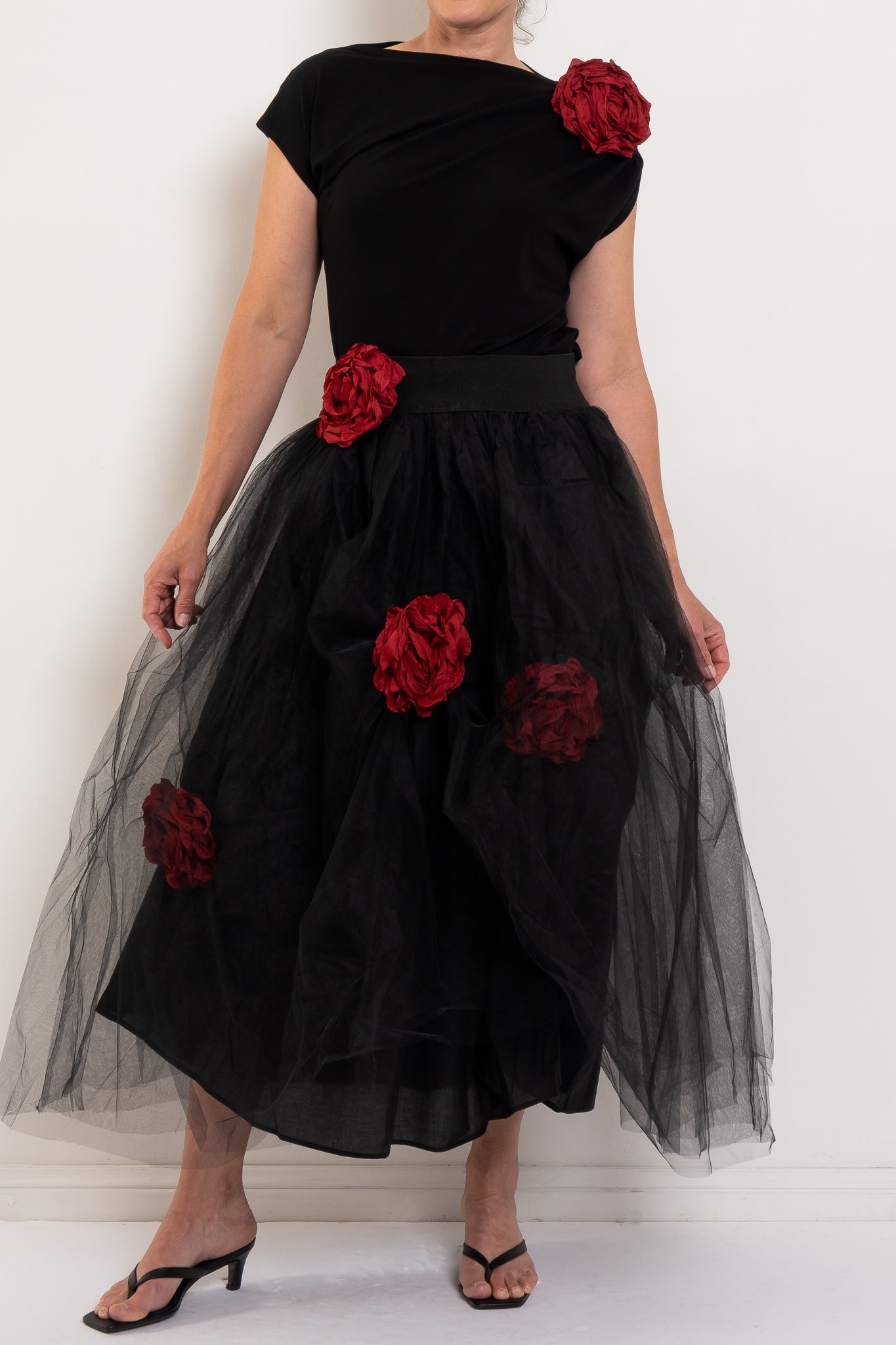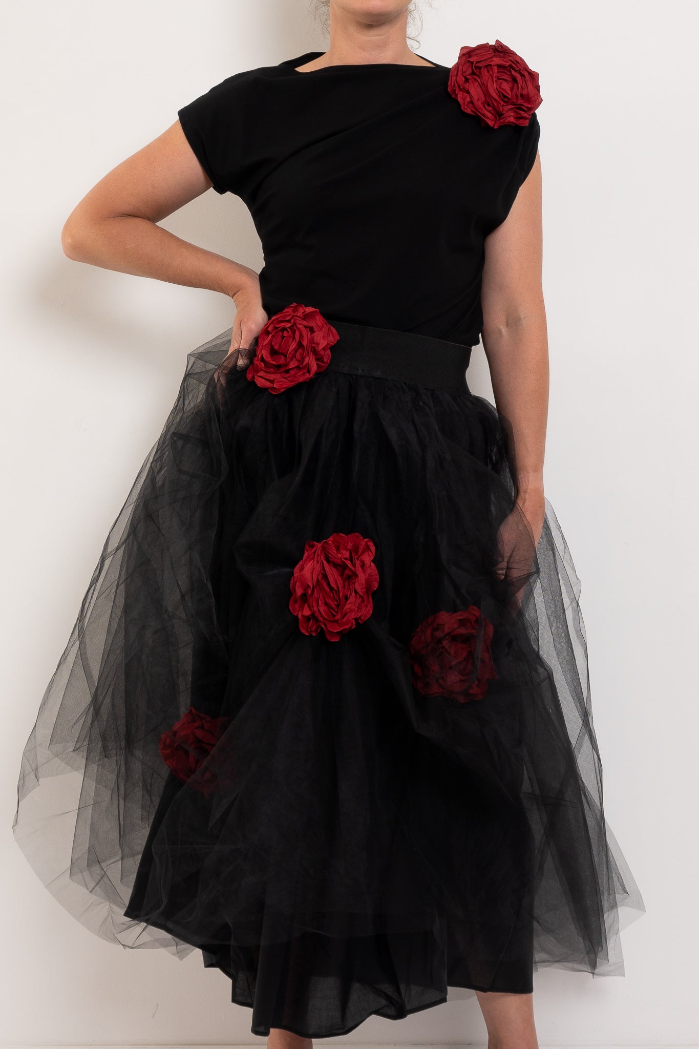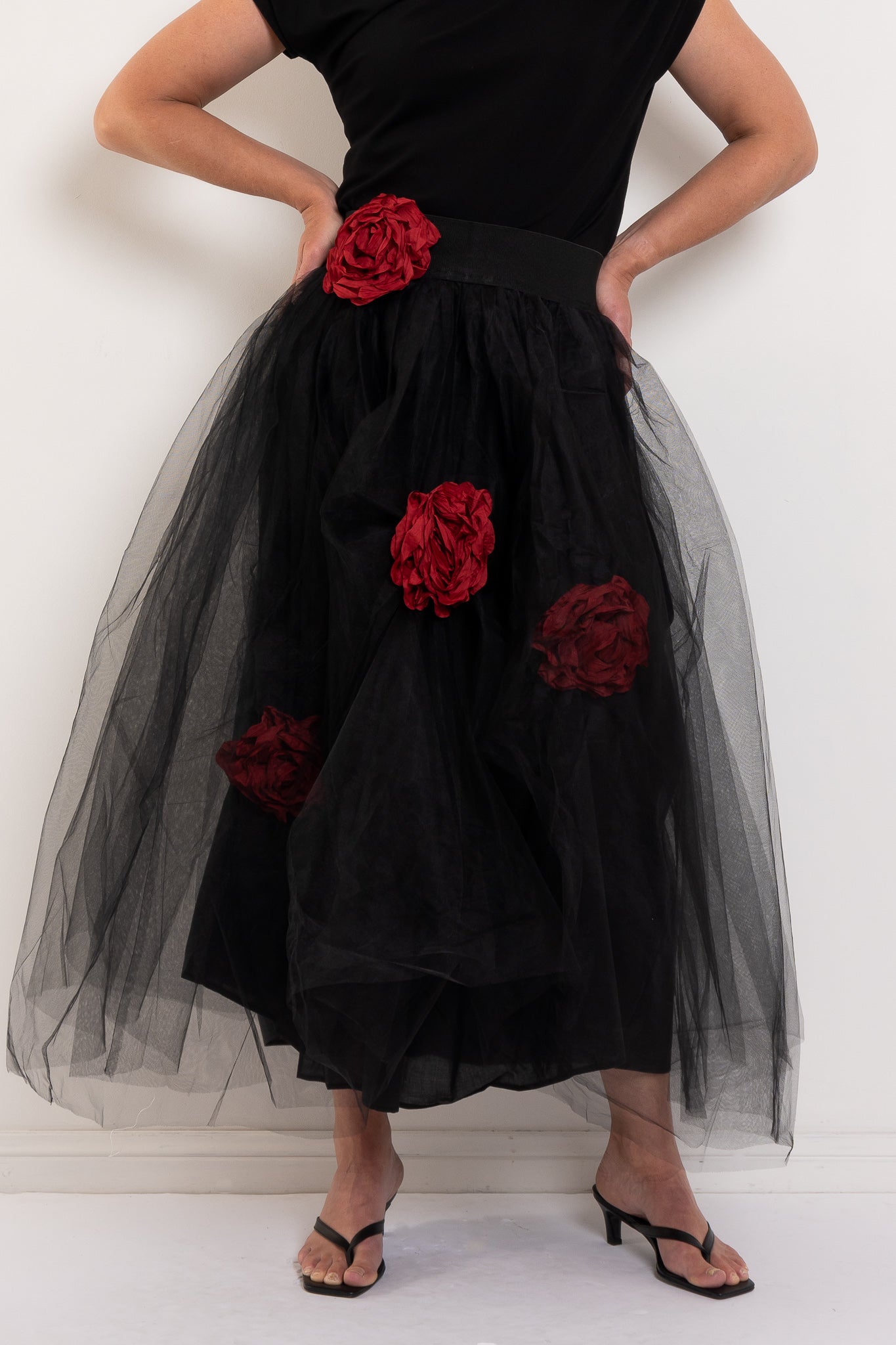 Styling tip: Pair it with a simple black top and let the red roses take centre stage, or lean into romance with a silk cami and heels. Perfect for making a statement at special events—or just celebrating love your own way.