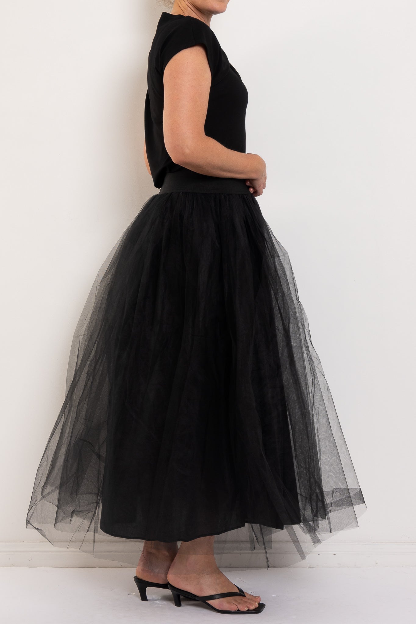 A skirt that’s as playful as it is poetic. The Eternal Love Skirt is crafted from layers of soft, voluminous tulle that create a romantic silhouette, grounded with a comfortable cotton lining and easy elastic waistband. What makes it truly unique? A matching mesh heart shaped bag filled with eight bold red fabric hearts—pin them wherever your mood takes you. Under the tulle for a peek-a-boo effect, scattered across the skirt for drama, or even on your top for a playful matching moment. This piece is all about making it your own.