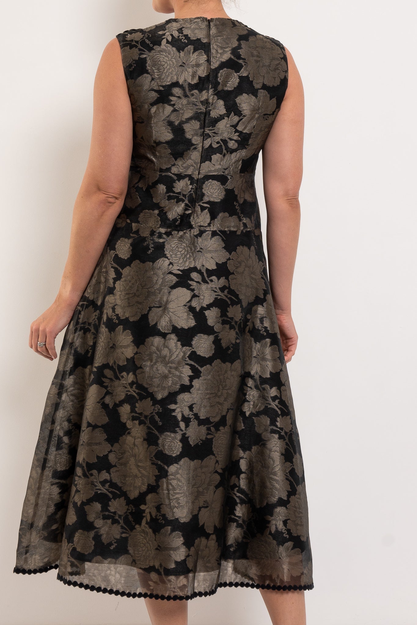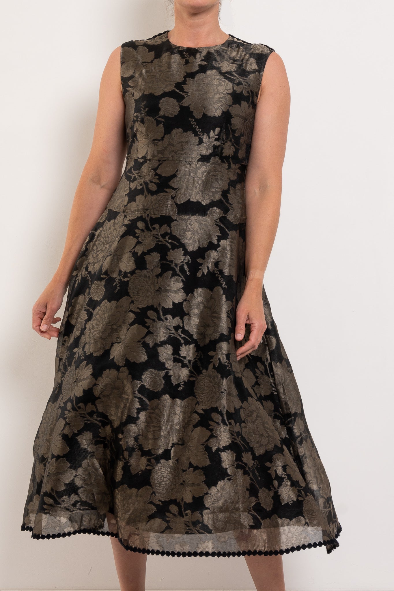The Sofie Dress is an elegant fit-and-flare design that flatters from every angle. Crafted in a jacquard floral fabric, it balances timeless femininity with a modern edge. The fitted bodice defines the waist, while the full skirt falls with soft movement—perfect for twirling your way through spring occasions. Subtle black circle trim at the hemline and shoulder seams adds a playful finish, making this dress as unique as it is versatile.