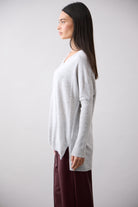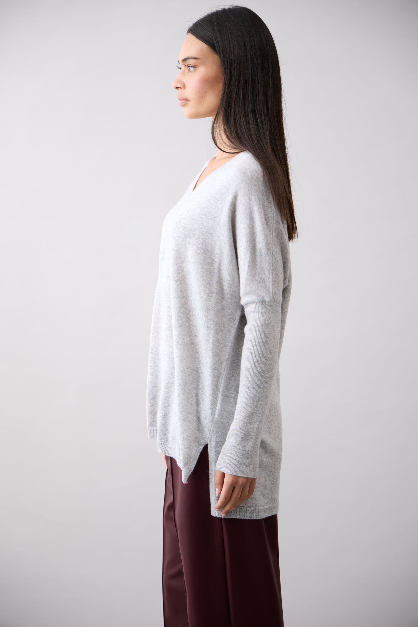 Mia Fratino's super-soft V-Neck sweater is the perfect choice for relaxing in style. This 100% Cashmere long line classic has stepped back and side splits. Cut from a relaxed wide-block, designed for maximum comfort. Team it with your favourite jeans or leggings for lounging anytime!