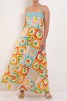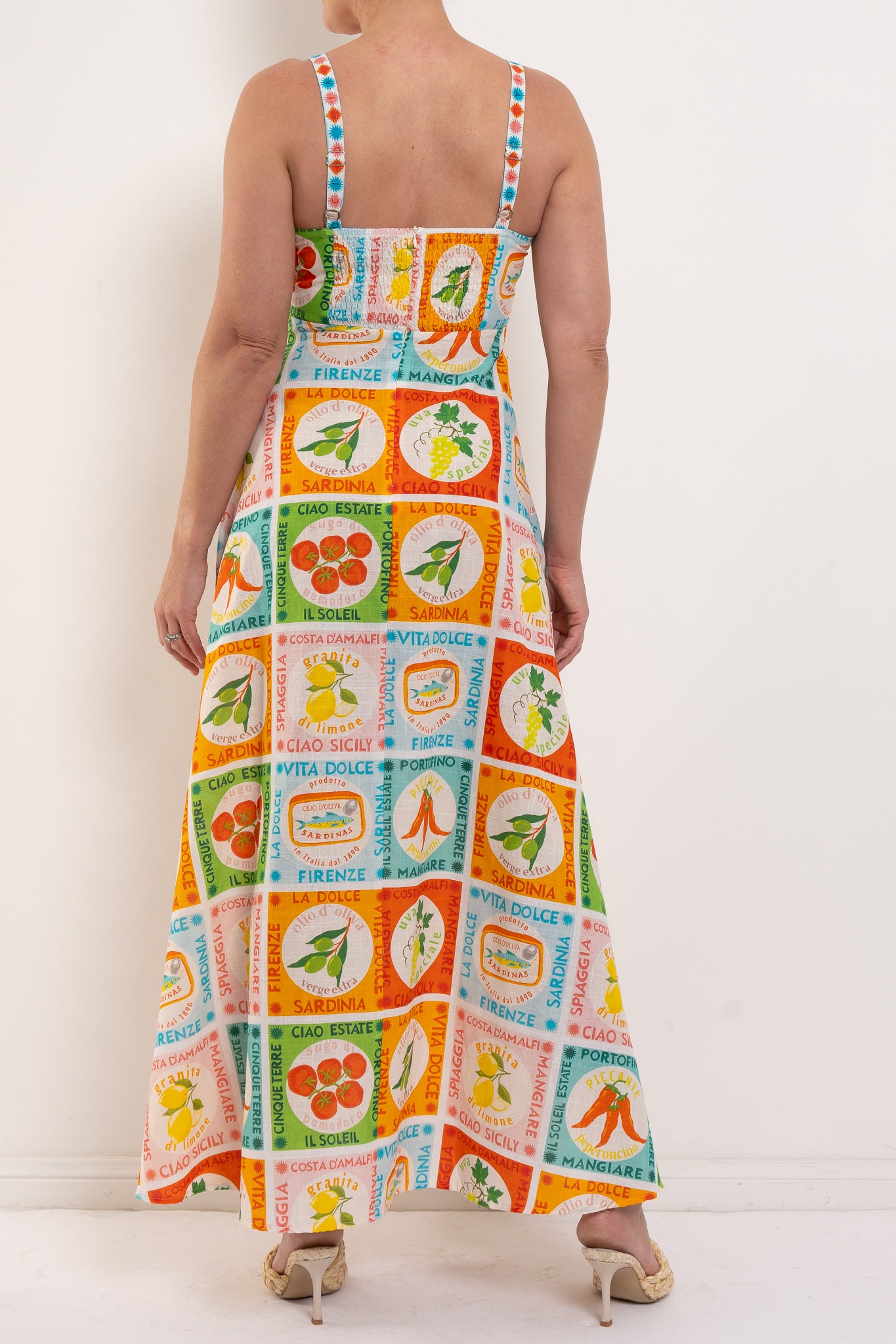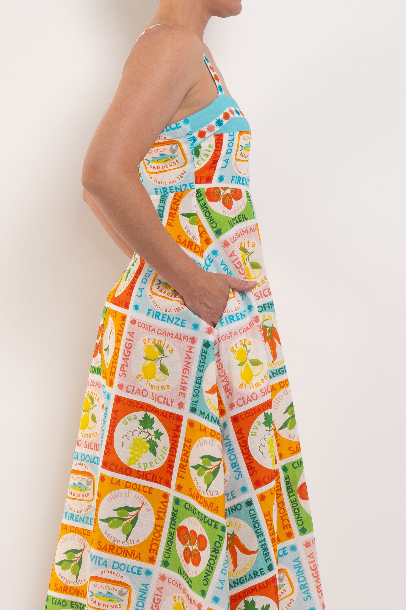 A sunny-day statement in full technicolour. The Milan Dress is crafted in lightweight cotton and cut to a flattering fit-and-flare silhouette. It features a square neckline, adjustable straps, and smocking through the back for comfort. The vibrant ‘Ciao Sicily’ print brings a nostalgic nod to European summer adventures, perfect for day-to-dinner dressing.