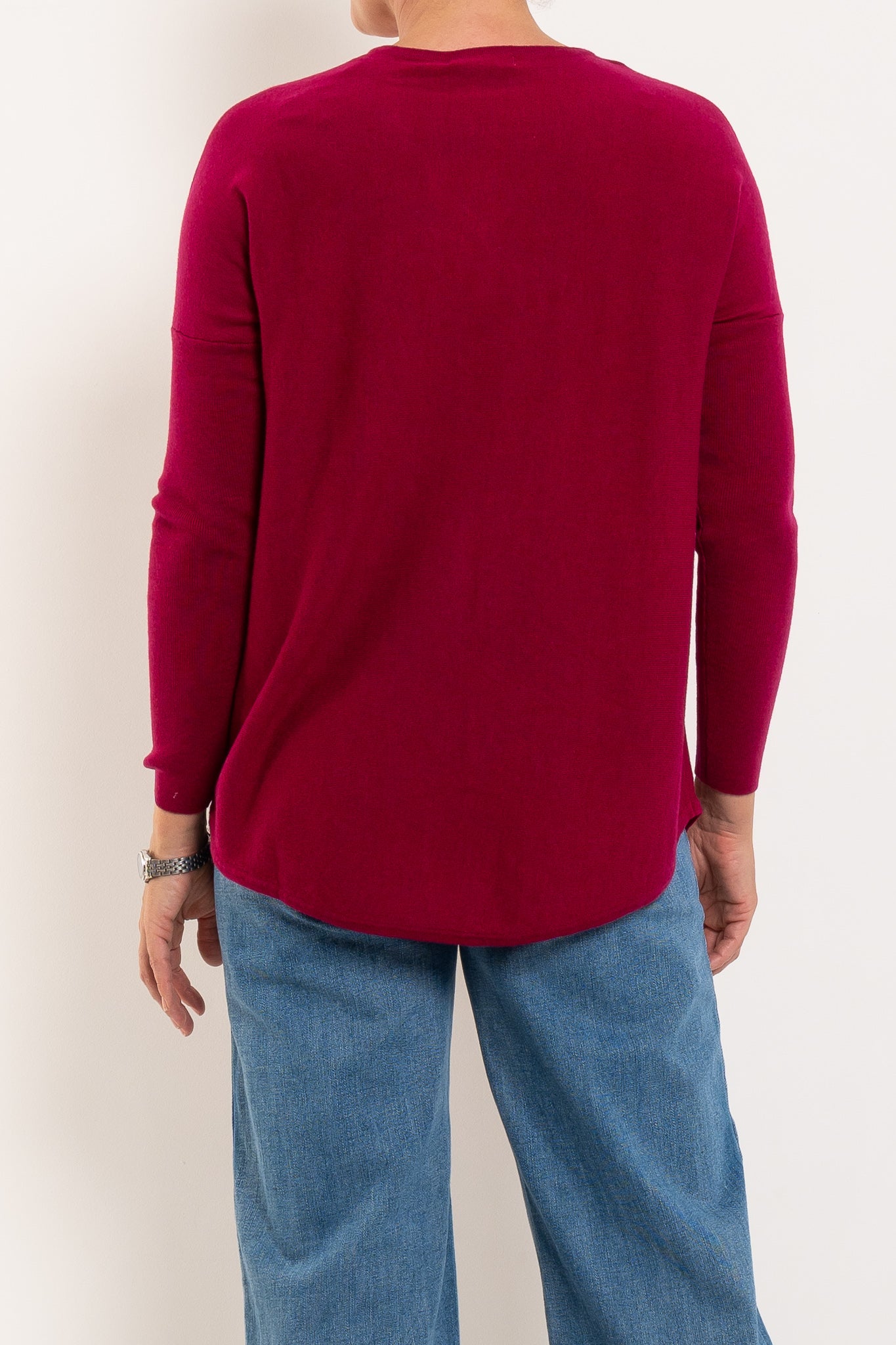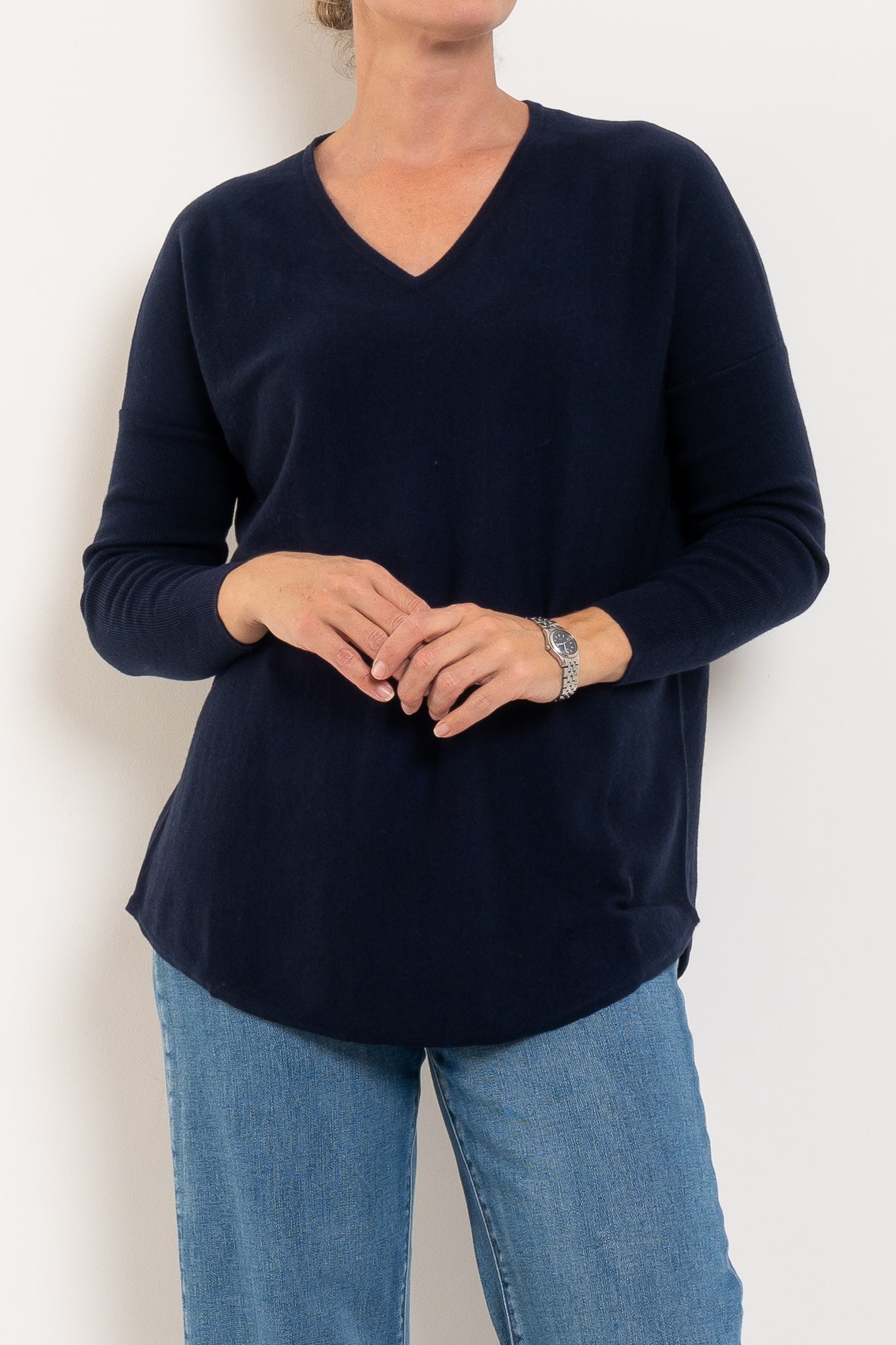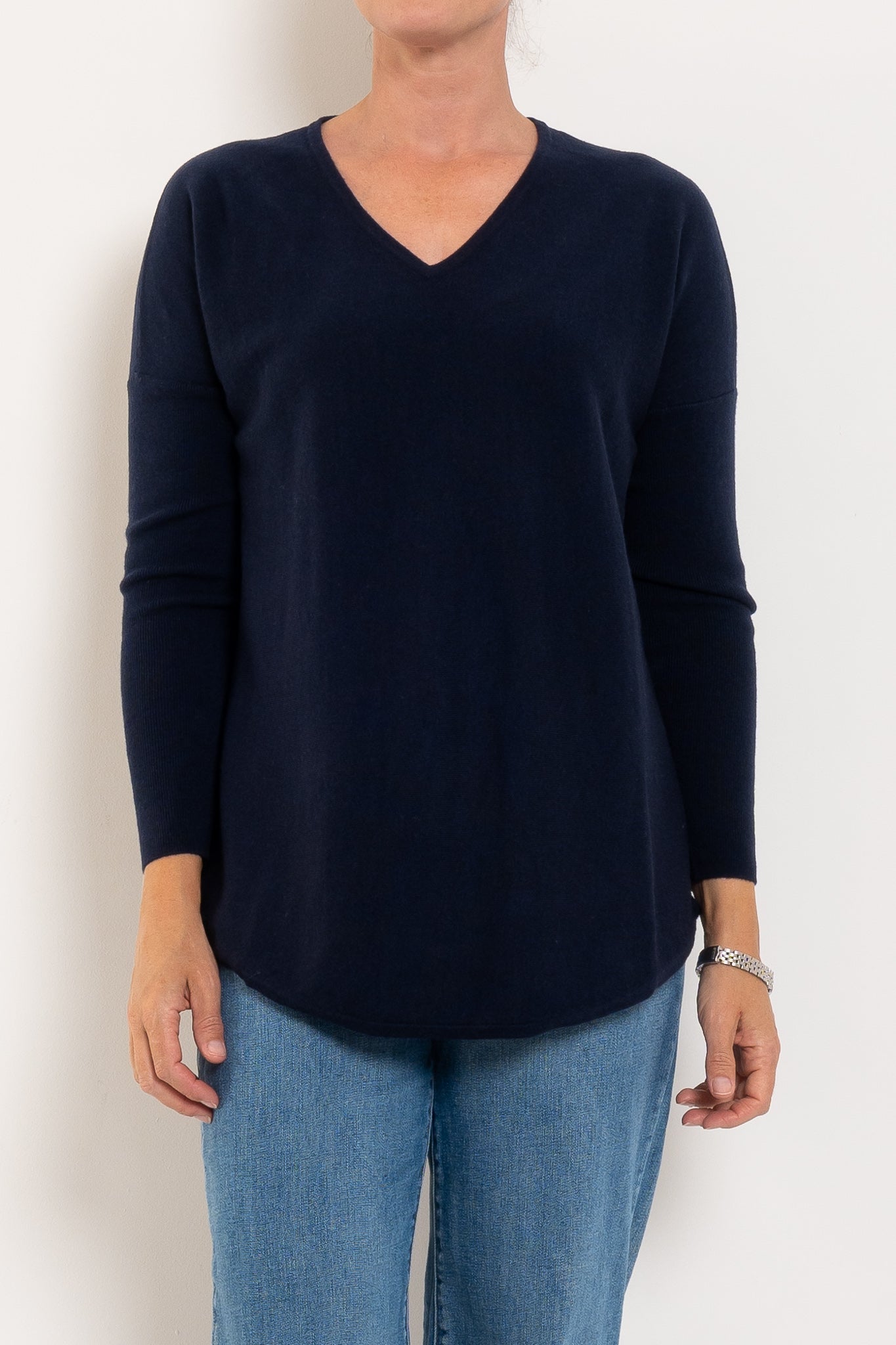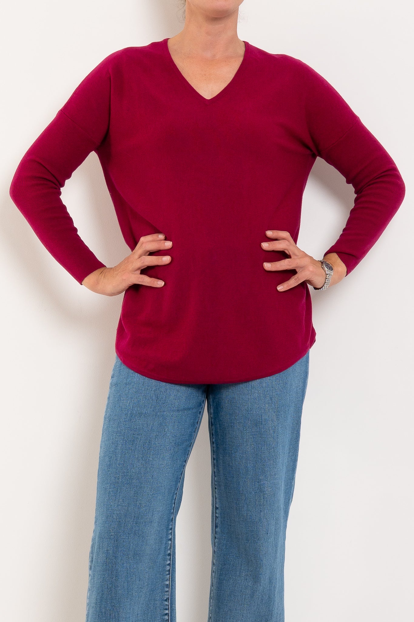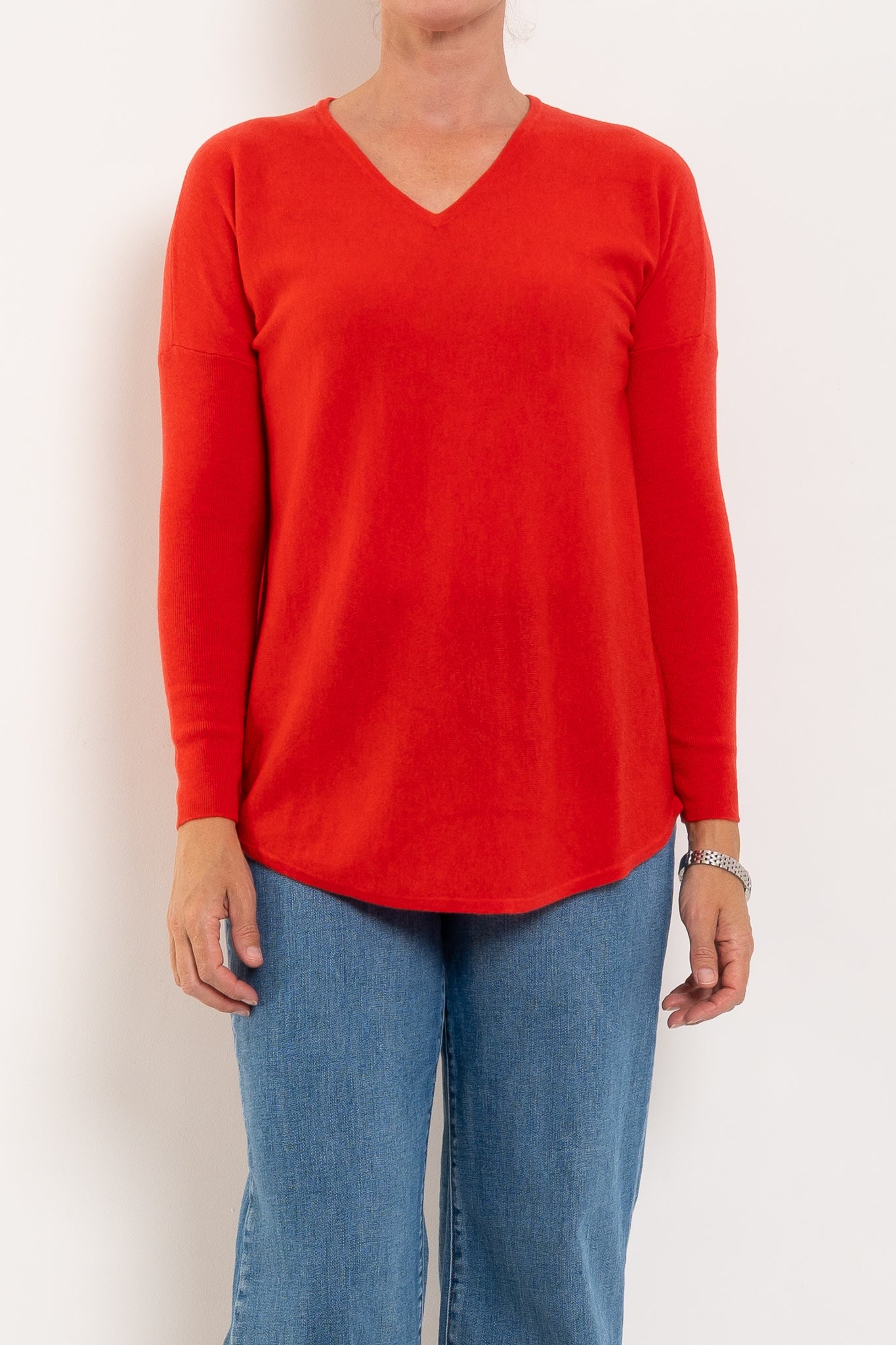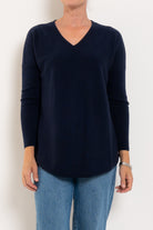 A much-loved best seller, the Queen V returns year after year in fresh new colours — and for good reason. Designed in a beautifully soft merino wool blend, it offers cosy warmth without feeling heavy, making it perfect for layering or wearing on its own. The longline silhouette with a curved hem creates a flattering drape through the body, while the relaxed drop shoulder and ribbed sleeves add a modern, easy-to-wear feel. Finished with a classic V-neckline, it’s the ultimate everyday knit you’ll reach for on repeat.