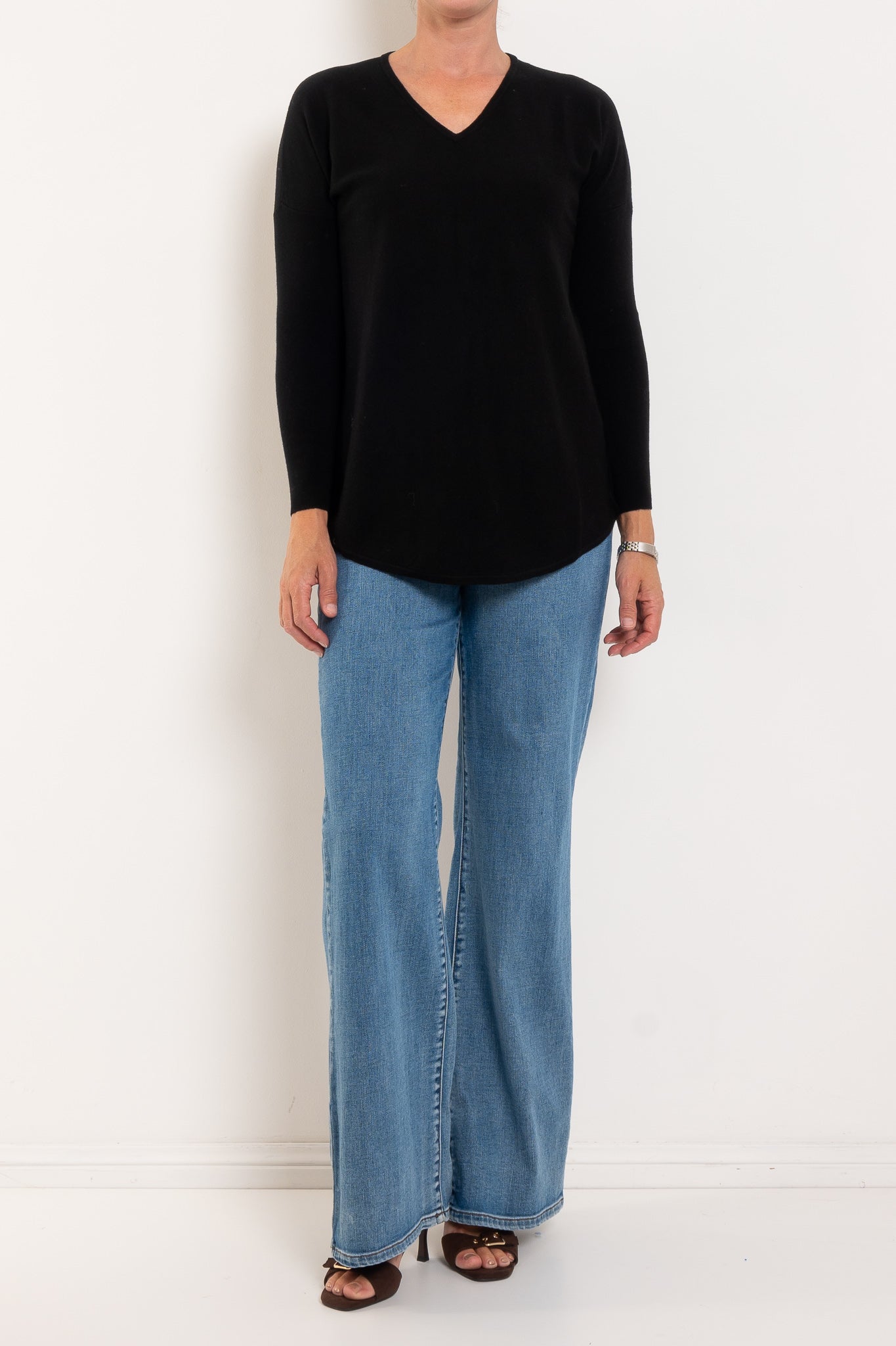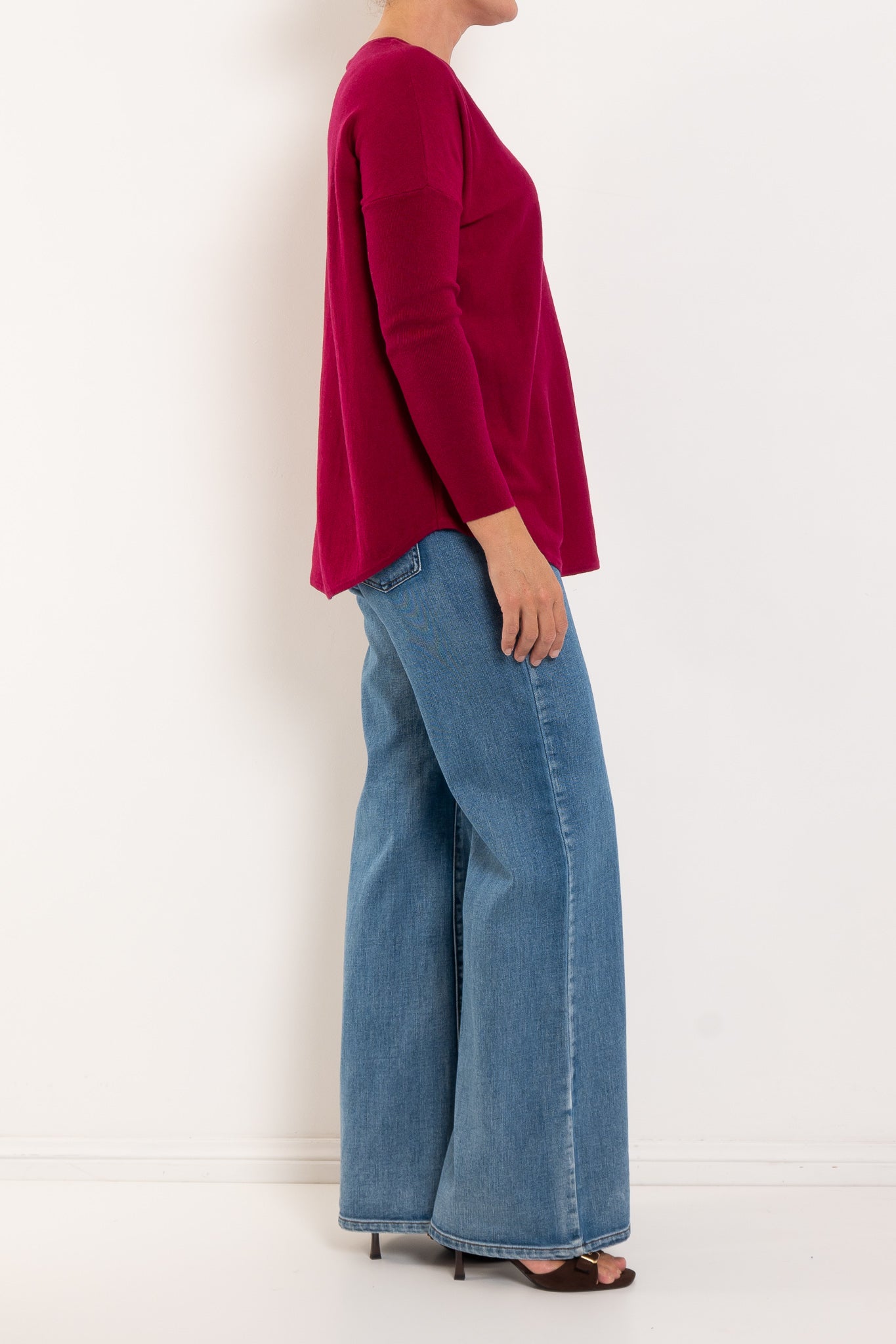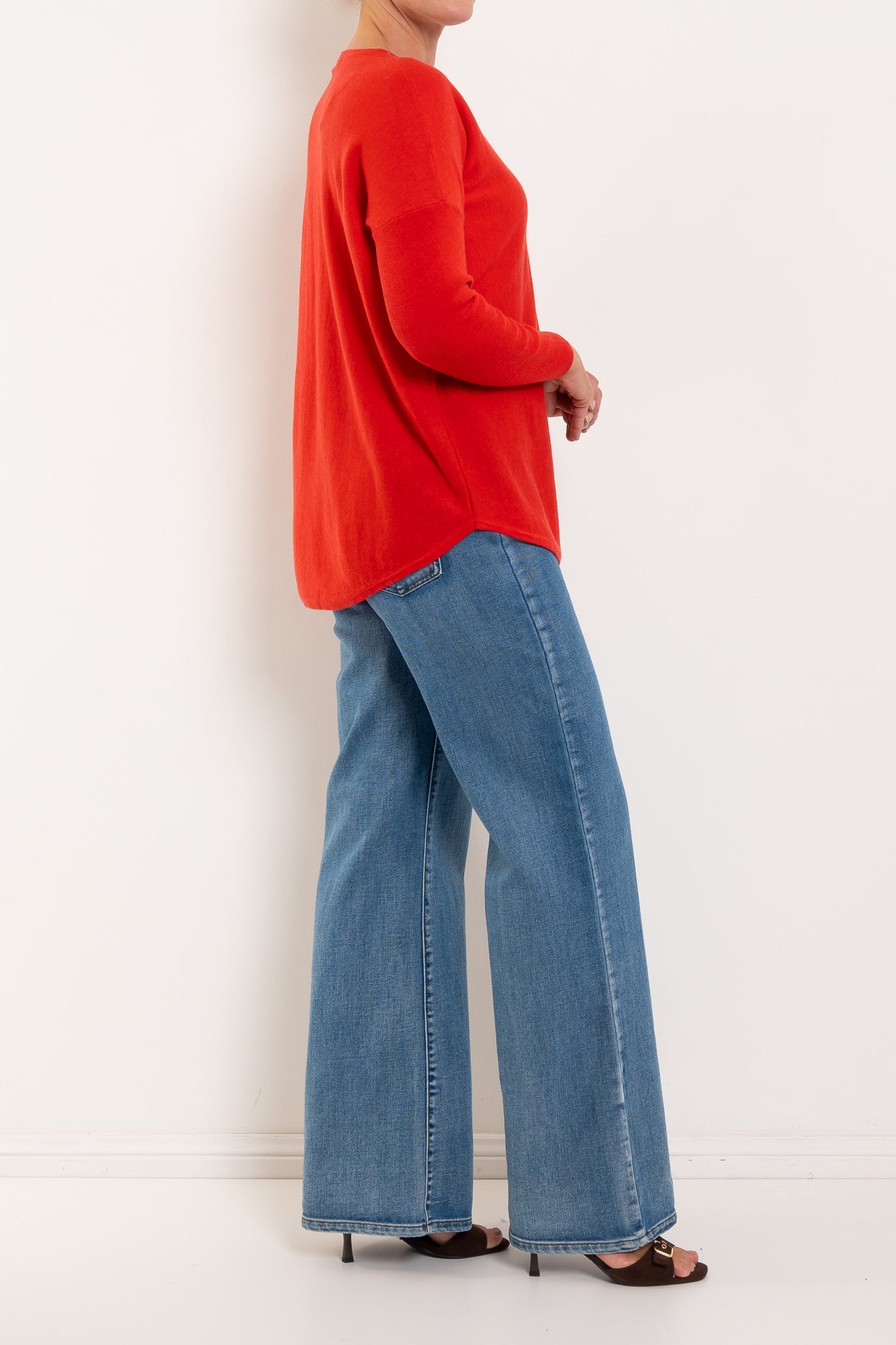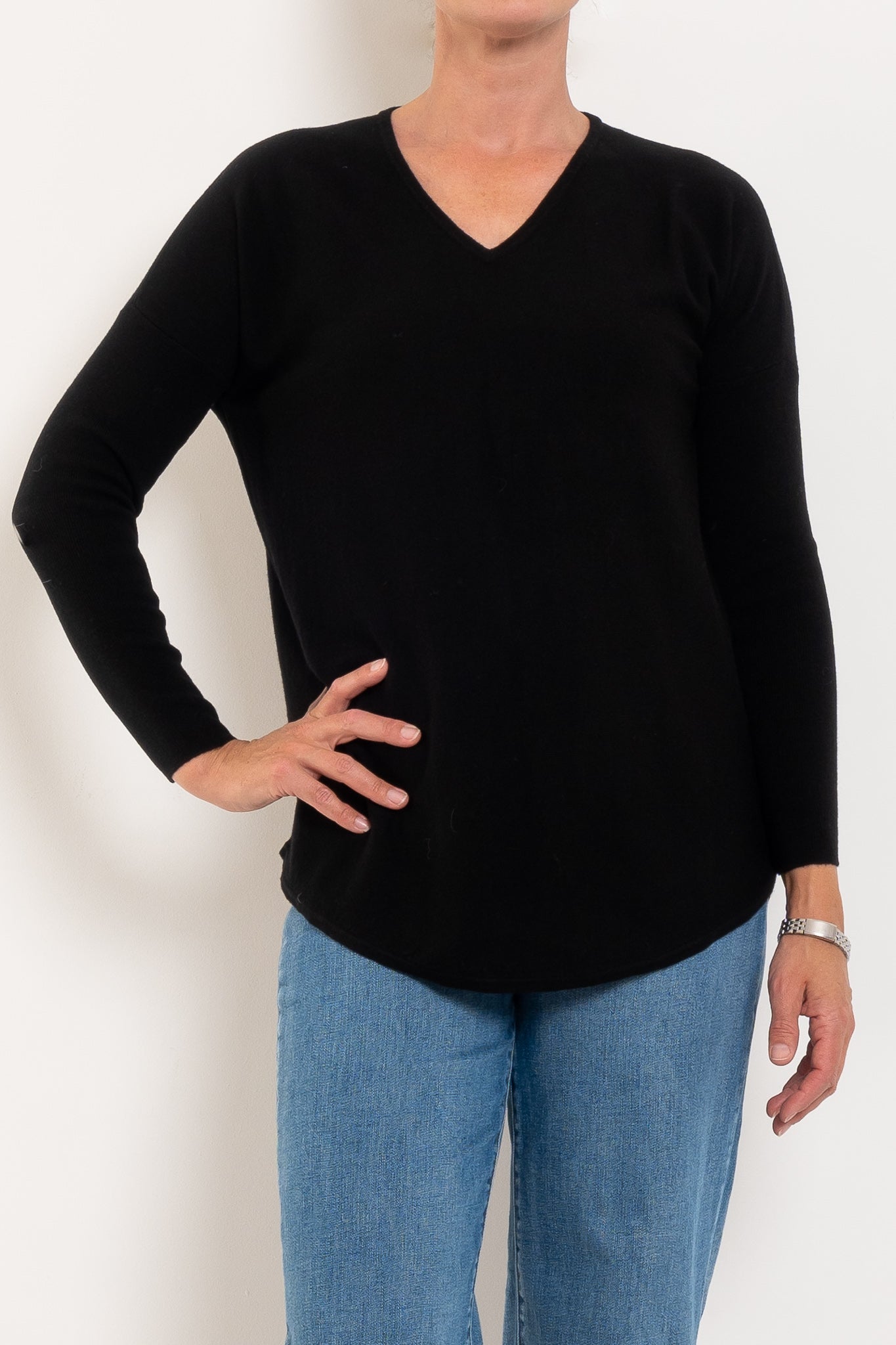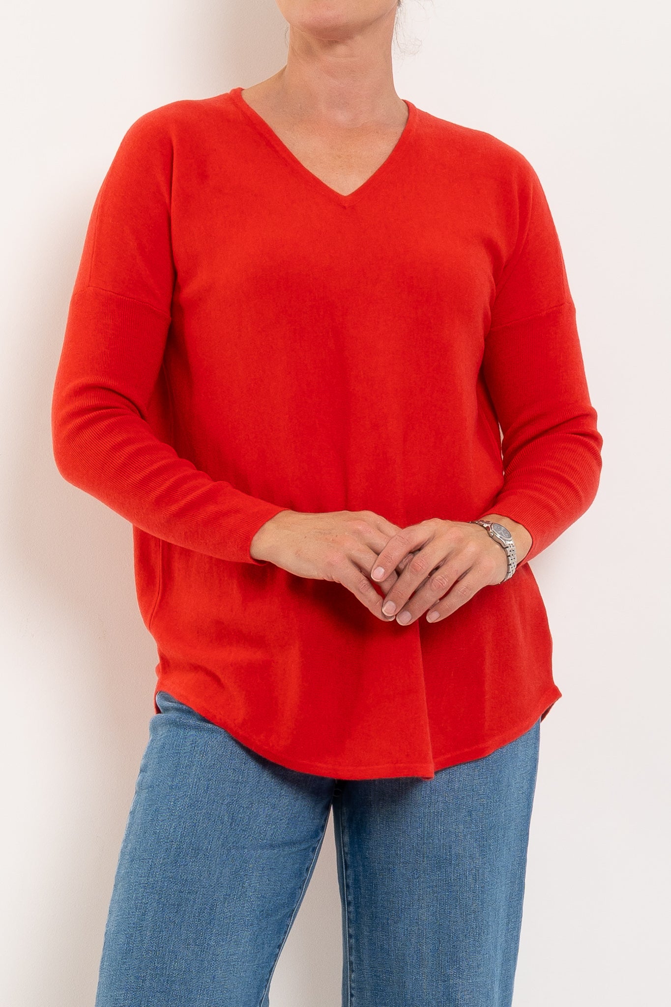 A much-loved best seller, the Queen V returns year after year in fresh new colours — and for good reason. Designed in a beautifully soft merino wool blend, it offers cosy warmth without feeling heavy, making it perfect for layering or wearing on its own. The longline silhouette with a curved hem creates a flattering drape through the body, while the relaxed drop shoulder and ribbed sleeves add a modern, easy-to-wear feel. Finished with a classic V-neckline, it’s the ultimate everyday knit you’ll reach for on repeat.