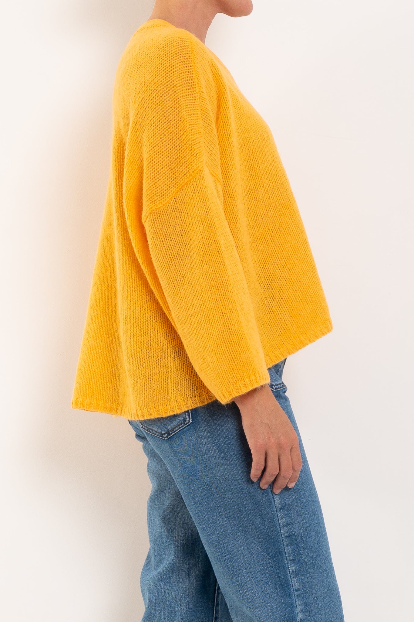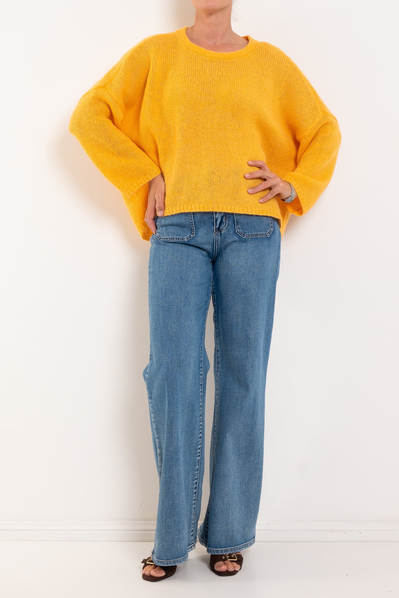 The Agna Sweater is a boxy cut, and is a relaxed-oversized fit all over, with dropped shoulders and a wide sleeve opening.