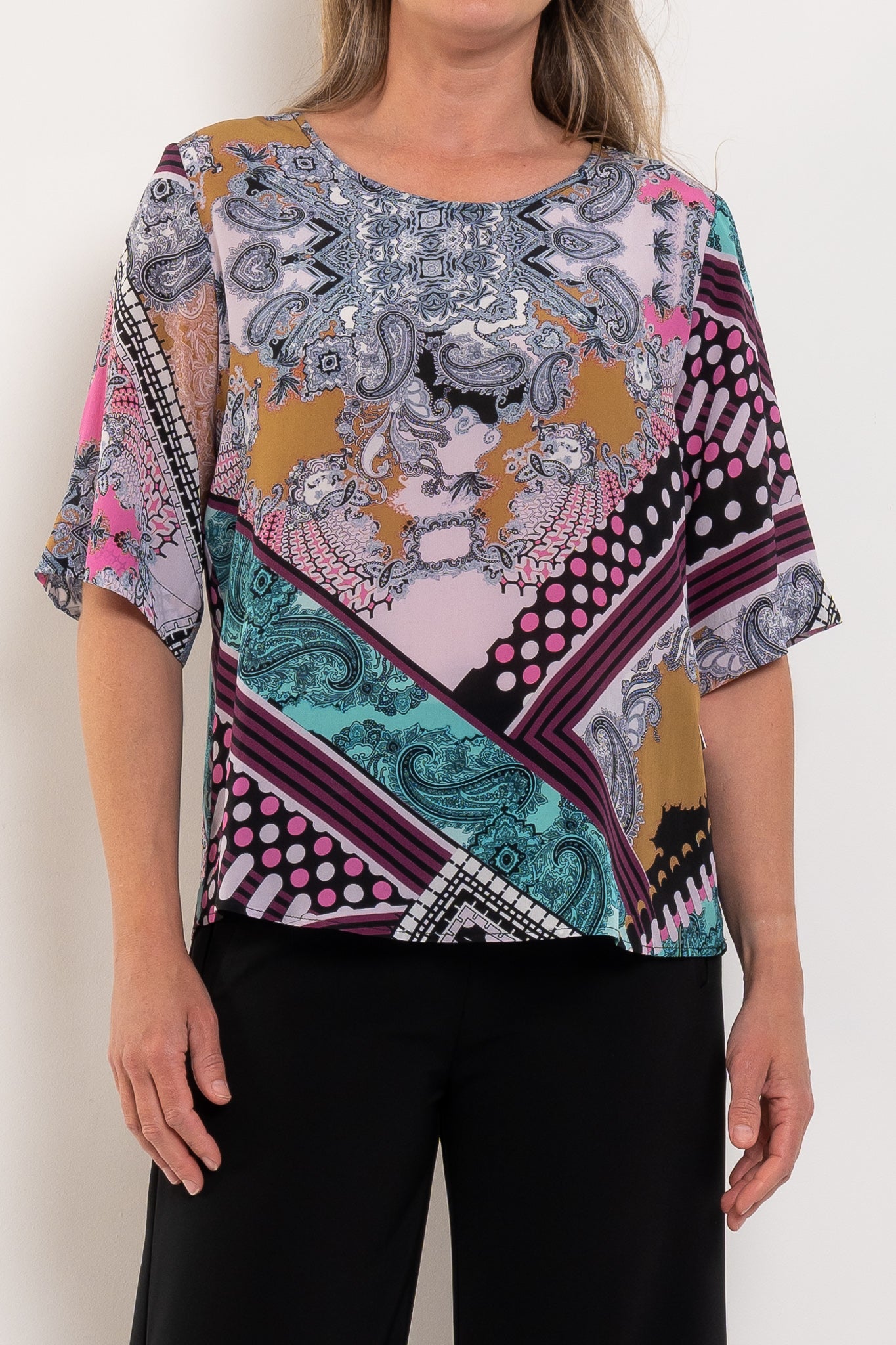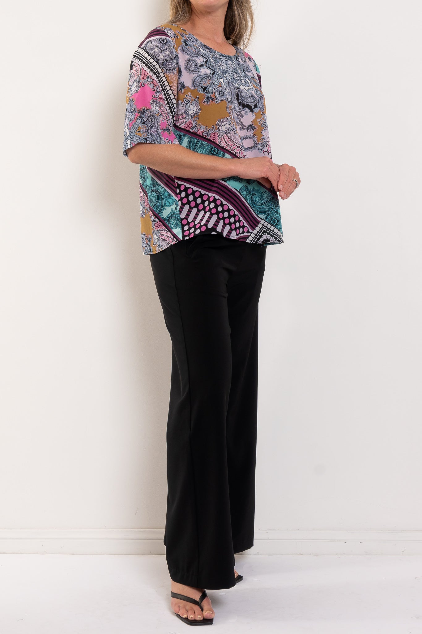 Meet your effortless statement piece. The Plaza T in Bandana Silk Print brings instant polish with zero effort — light, floaty and beautifully luxe against the skin. It’s the kind of top that does all the talking, whether you’re dressing up simple pants or adding interest to everyday layers. See full product description below for fabric and fit info.