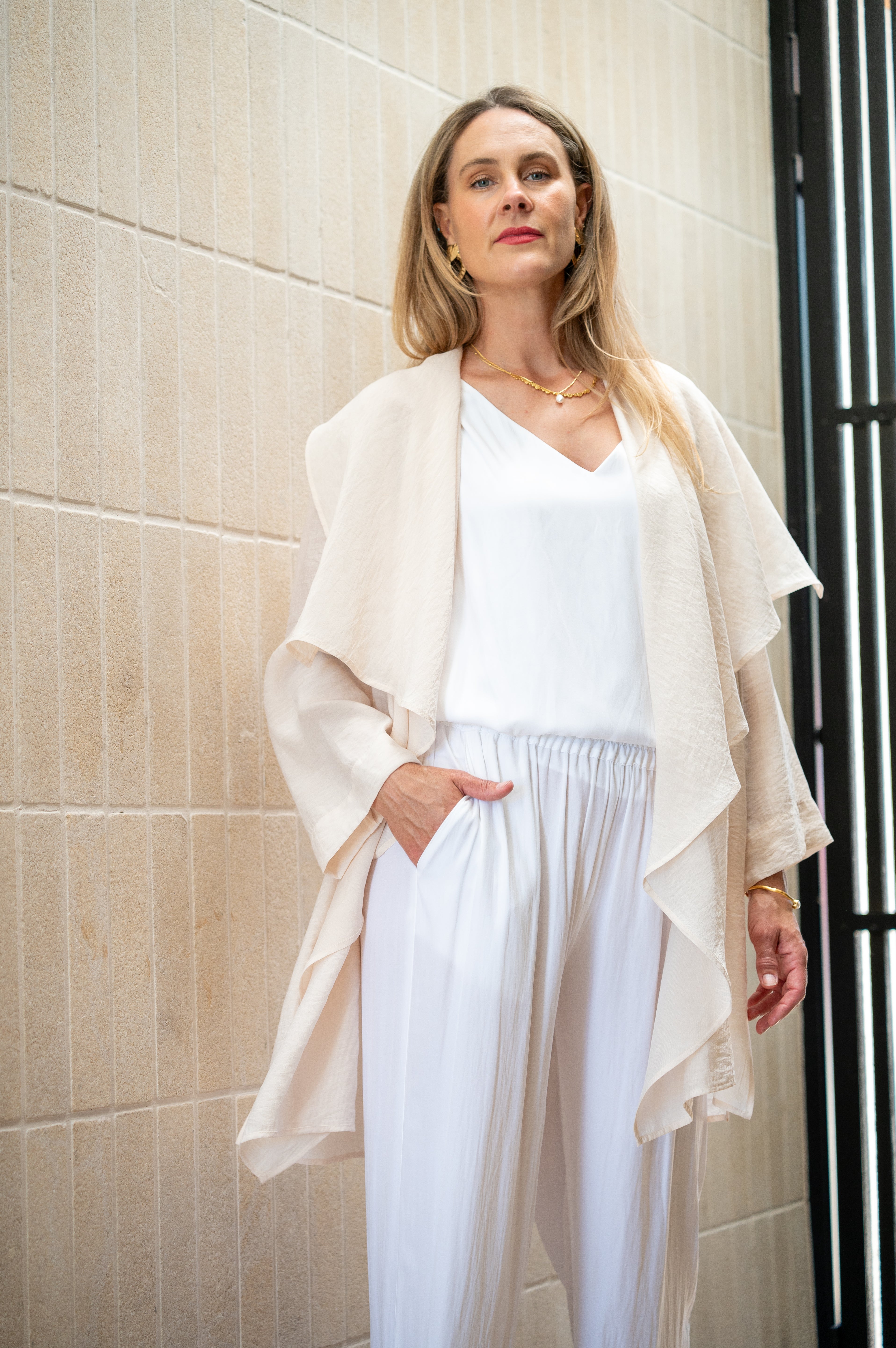 Mache fabric feels like a heavy silk but has all the easy care properties of polyester. Finished with "air flow" technology, Mache floats and billows around the wearer ethereally and drapes beautifully. Crease resistant and quick drying, it’s perfect for travel. |