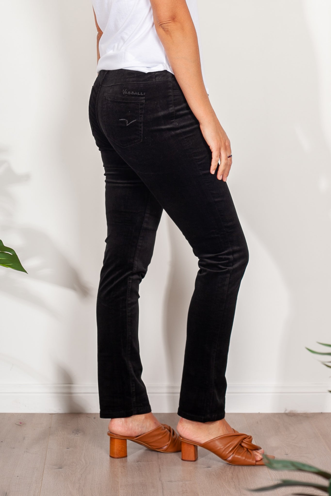 Vassalli make "Jeans that Fit"! One of our most popular pant designs at Impulse are Vassalli's pull on slim-straight pants. This style is a fine velvet corduroy and features a pull on waist with flat front and rear jean pockets, full length and slim leg.