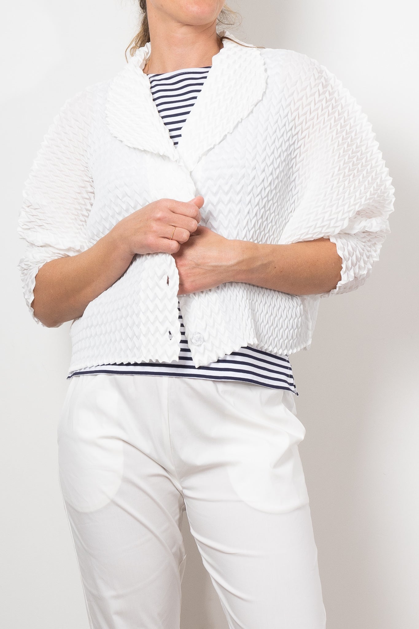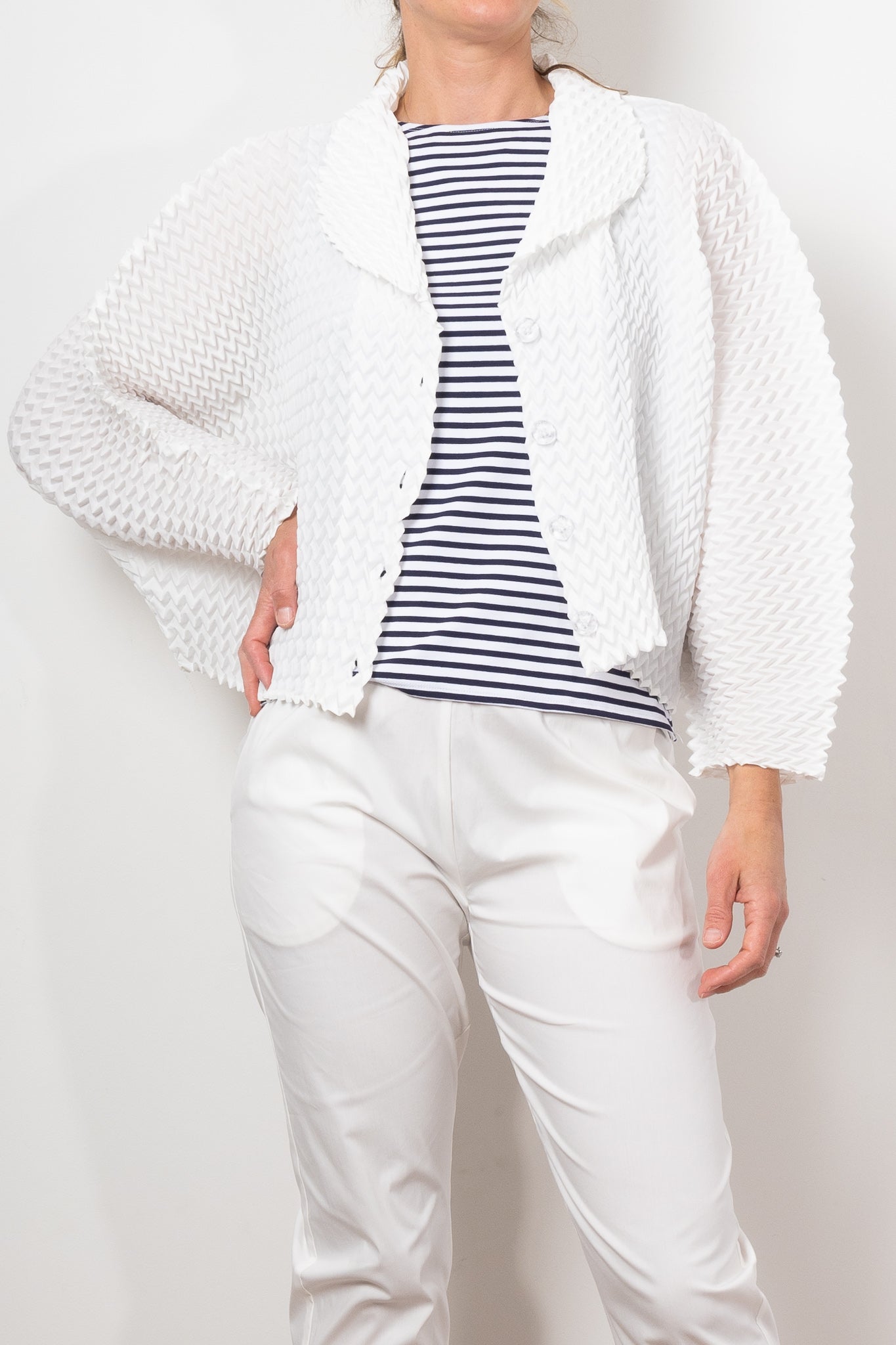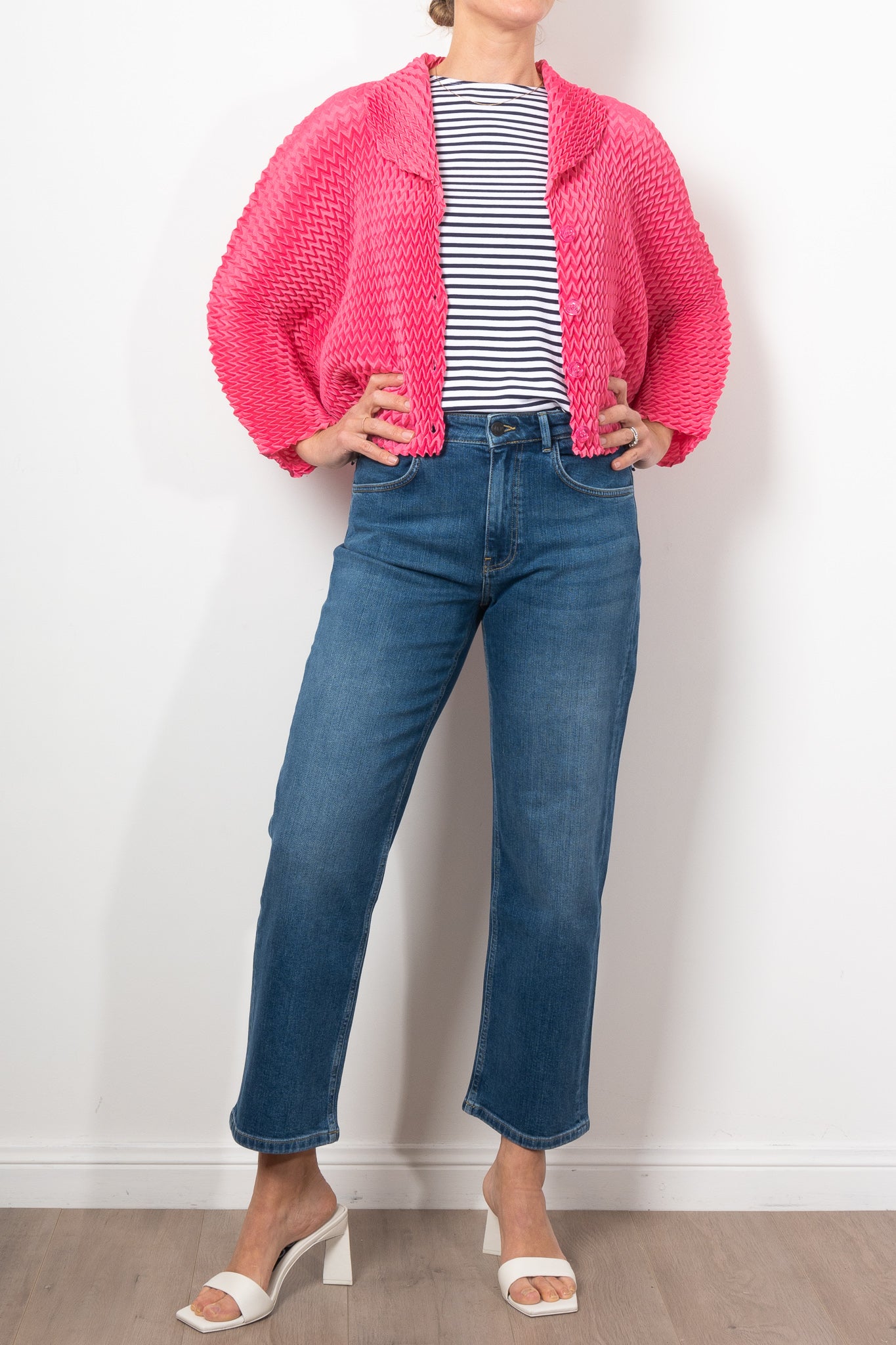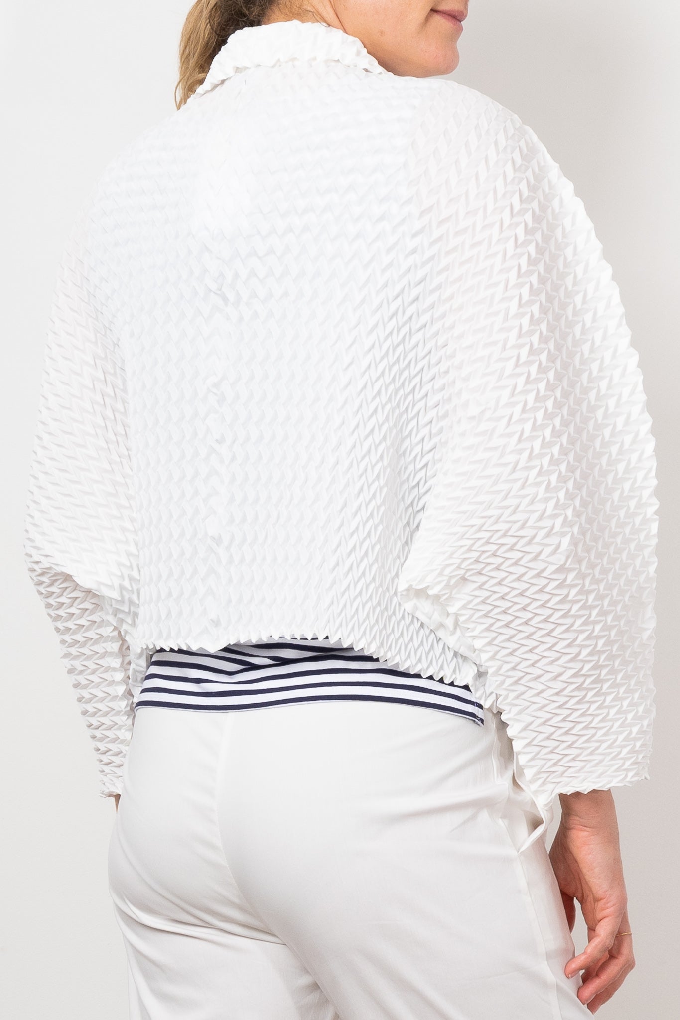 Add a bold touch to any outfit with Alquema's Nightstar Bolero. The hand pleated design adds shape and the collar frames the face beautifully. Made from soft and slinky fabric, this lightweight one size bolero is a statement piece in vibrant pink. Elevate your style with a pop of colour!
