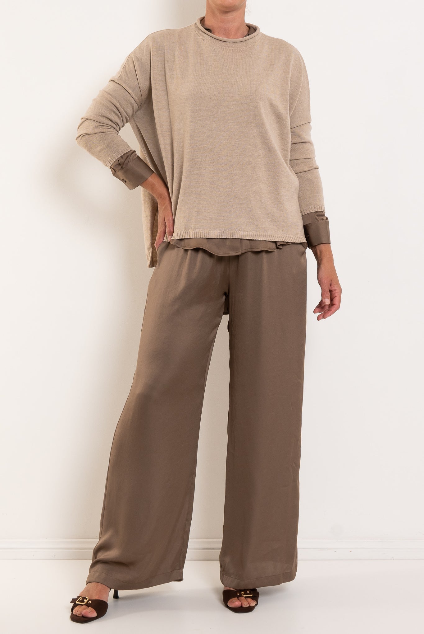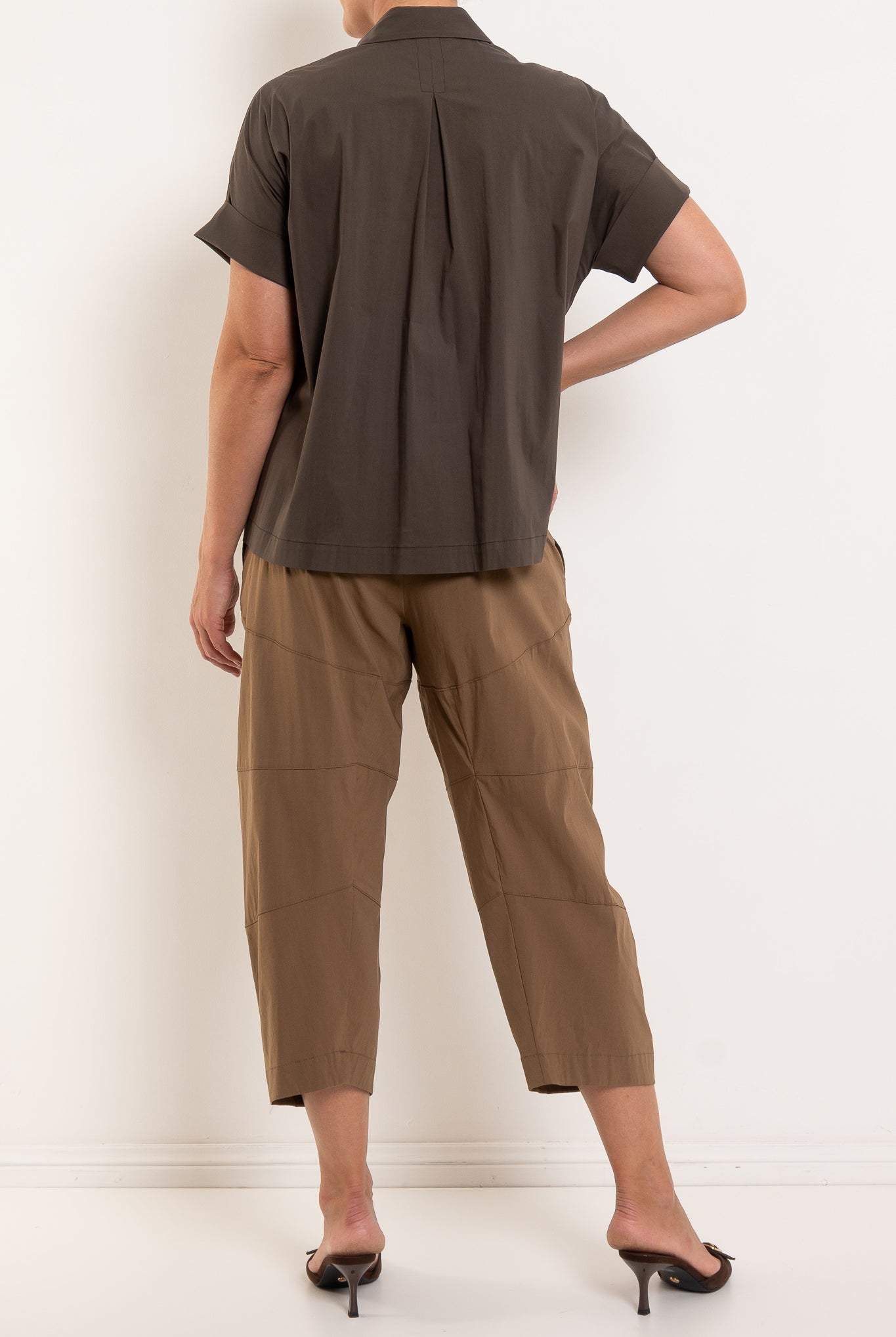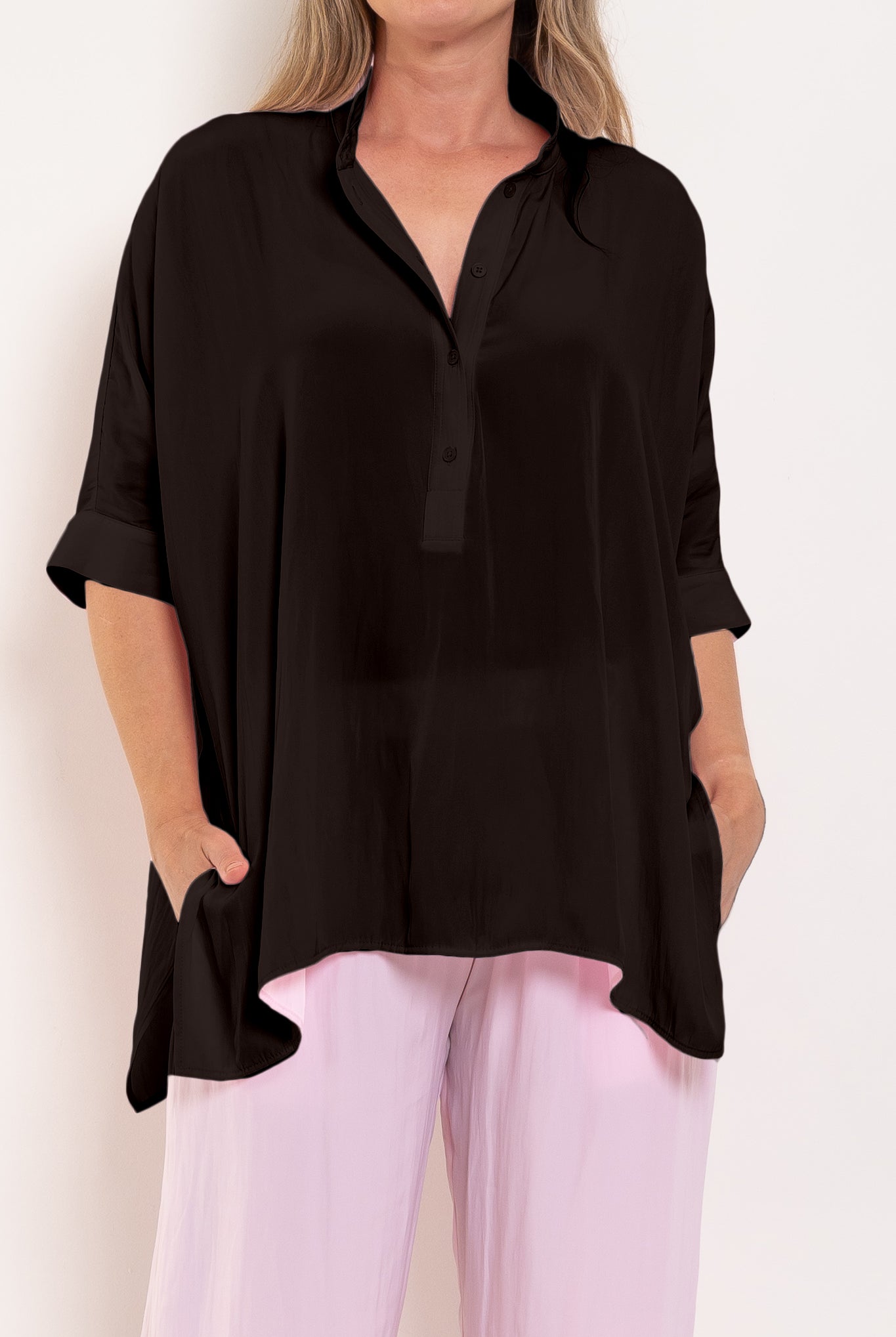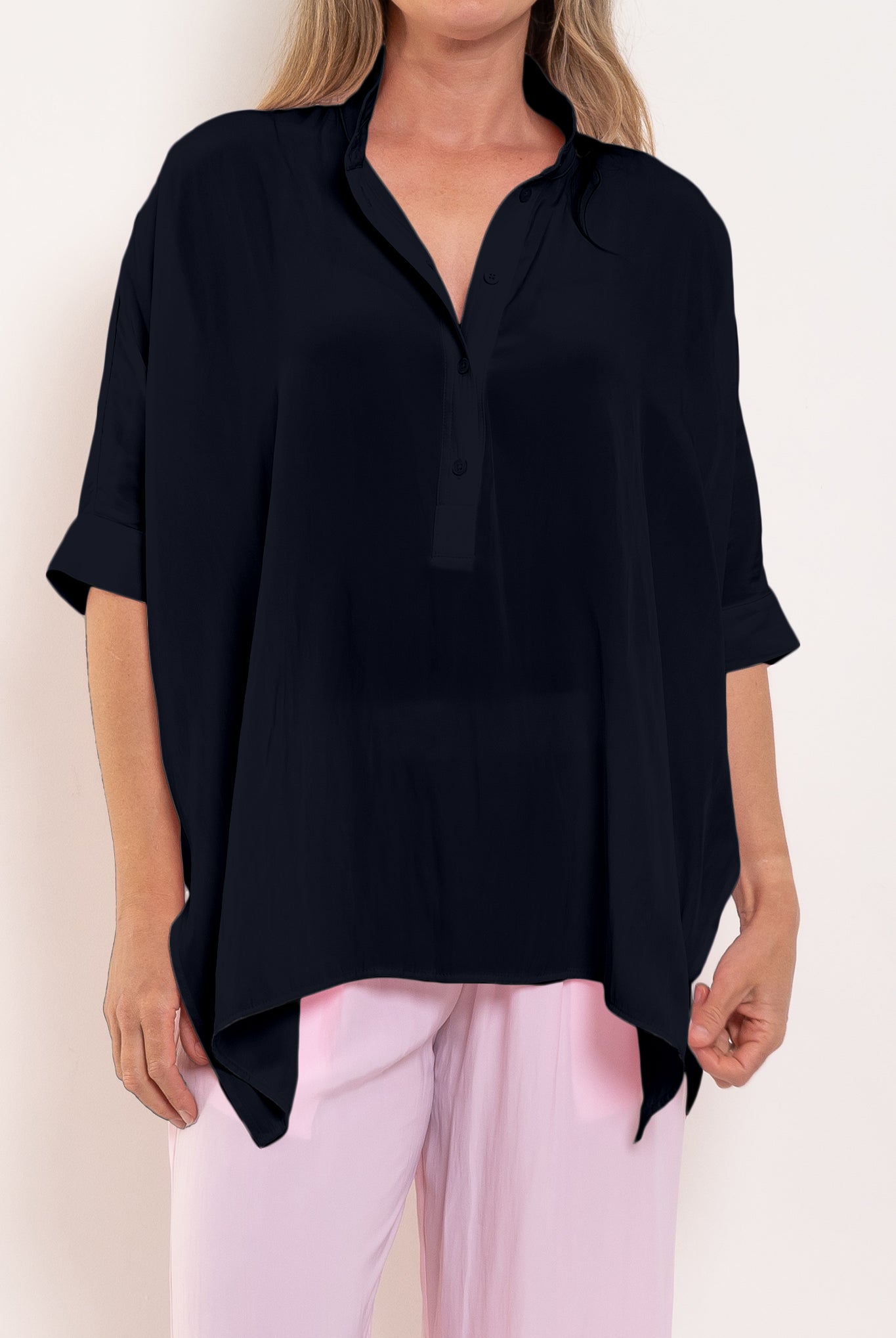 The Frill Neck tank cleverly combines a simple utlitarian shape (a button through tank) with delicate ruffles and soft gathering at the shoulders for laid back elegance. Combined with the track pant shape of the silky, harem style Morroccan pant it's got the vibe of a casual look but the details of something much more luxe.