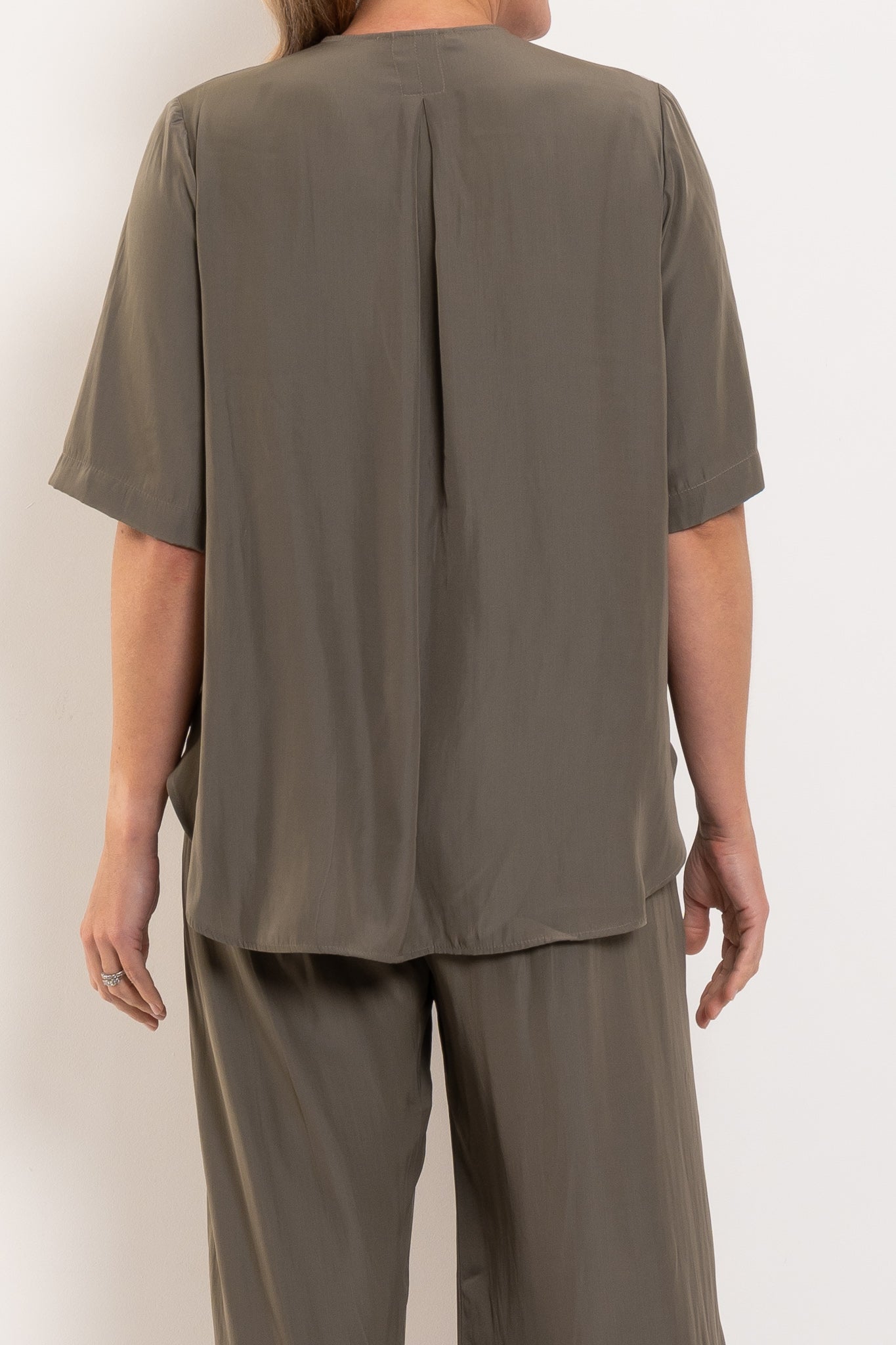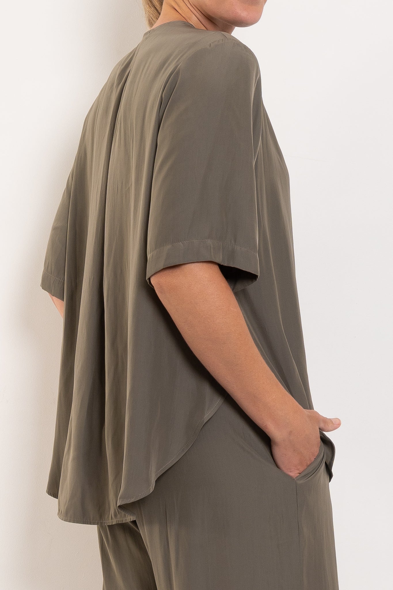 Some pieces earn their place in your wardrobe the moment you slip them on — the Swish Plaza Top is one of them. Cut from Mela Purdie’s signature Mache, this Japanese-crafted technical fabric feels like heavy silk but has the resilience of polyester. Finished with airy “air flow” technology, it floats and billows around you with every step, refusing to crease or crumple.