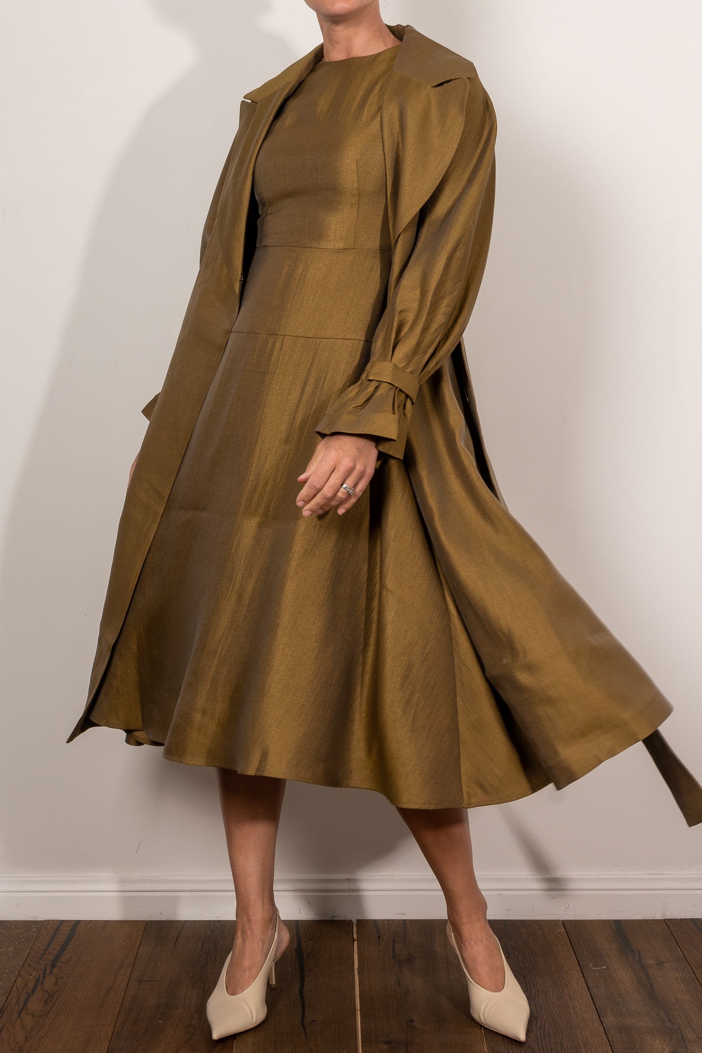 Fall in love with the striking bronze and petrol colourways of the Mosey Dress from M.A. Dainty! This classic fit and flare dress is perfect for any event, with its fitted bodice and full skirt. Timeless and elegant, you'll surely turn heads. Pair with the matching Opera Jacket for a luxurious ensemble.  See full product description below for fabric and fit info.