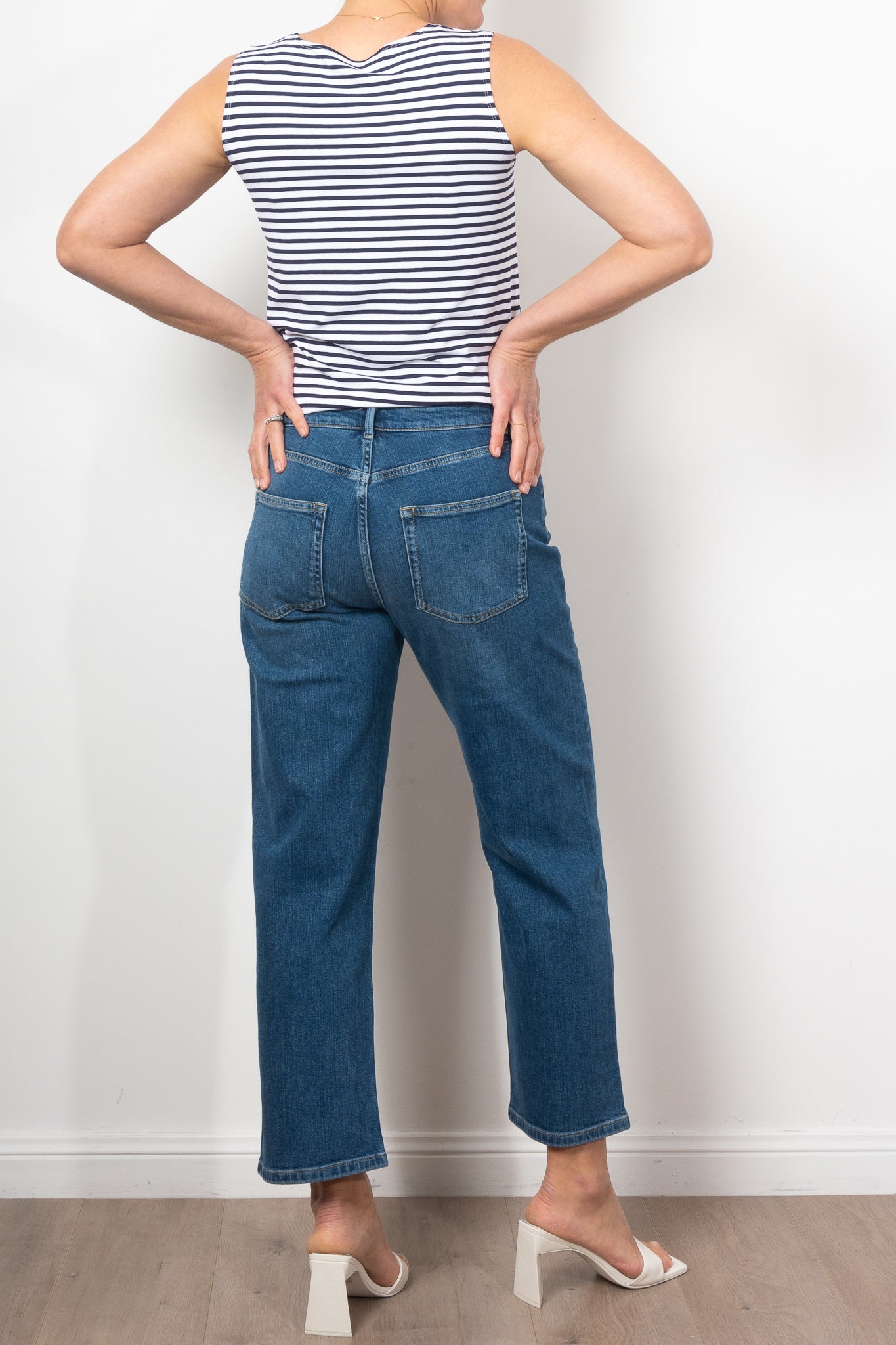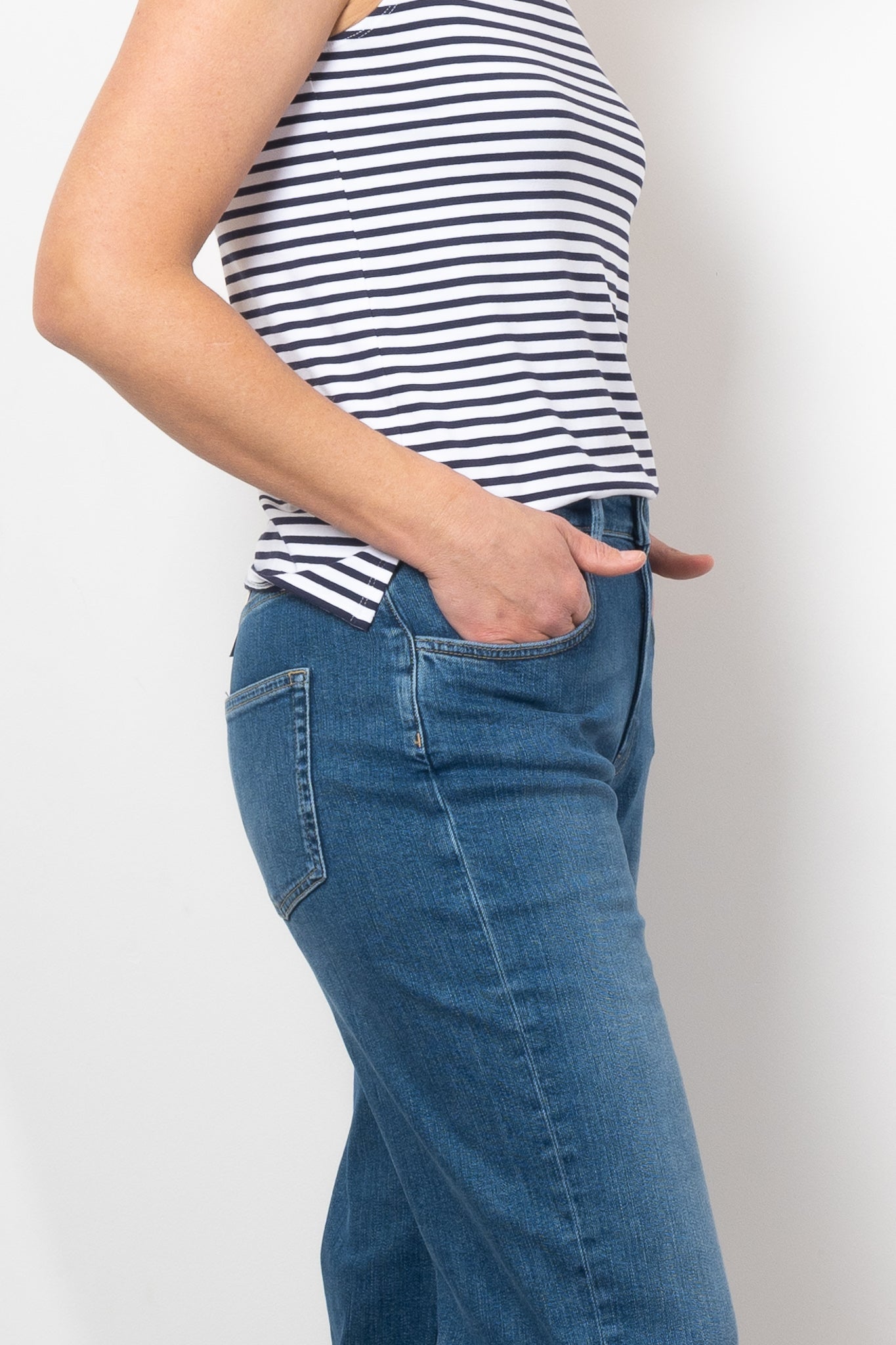Designed to fit your usual size around the waist with a slightly lower crotch to create an easy fit. The leg has been designed to hit just on the ankle bone. The key fit points to check for size are the waist, hip, front/back rise and the leg length.