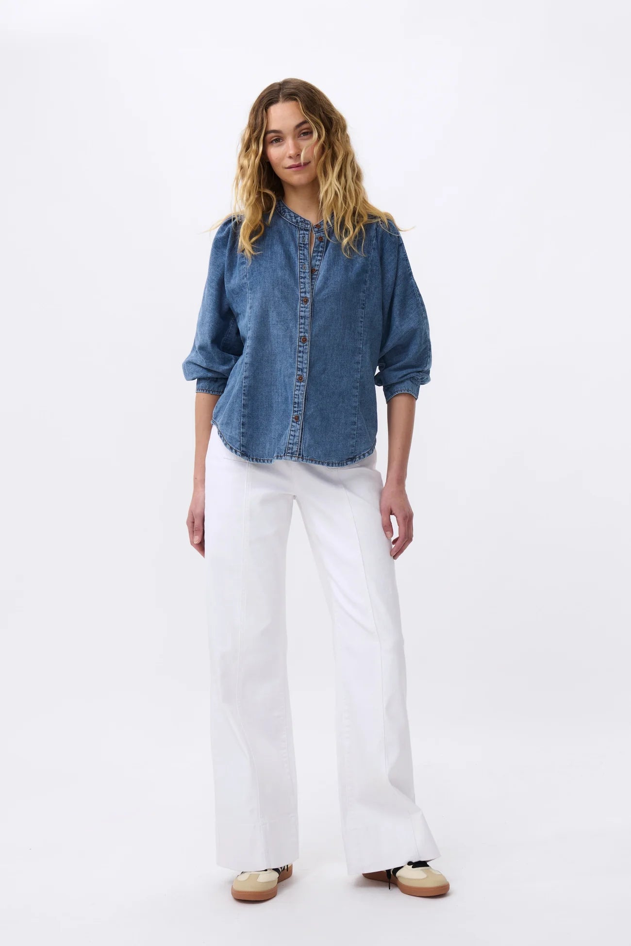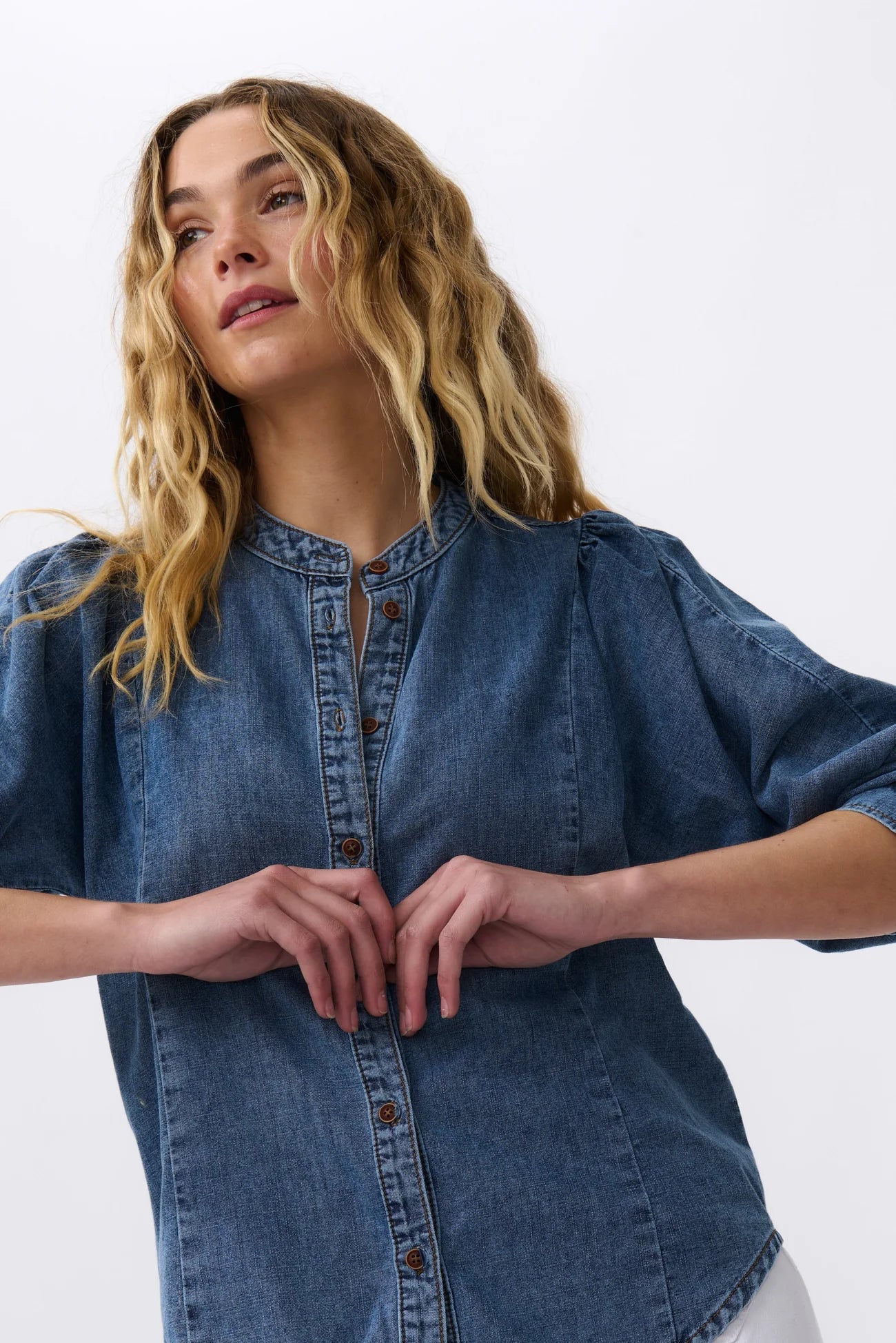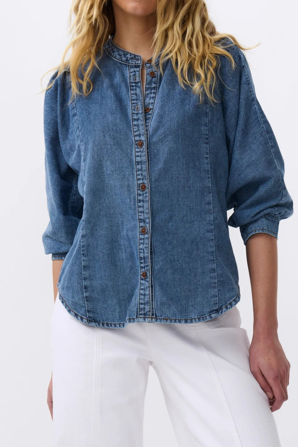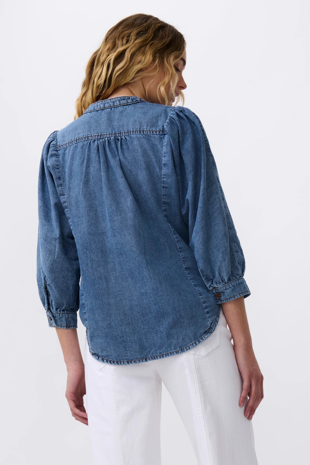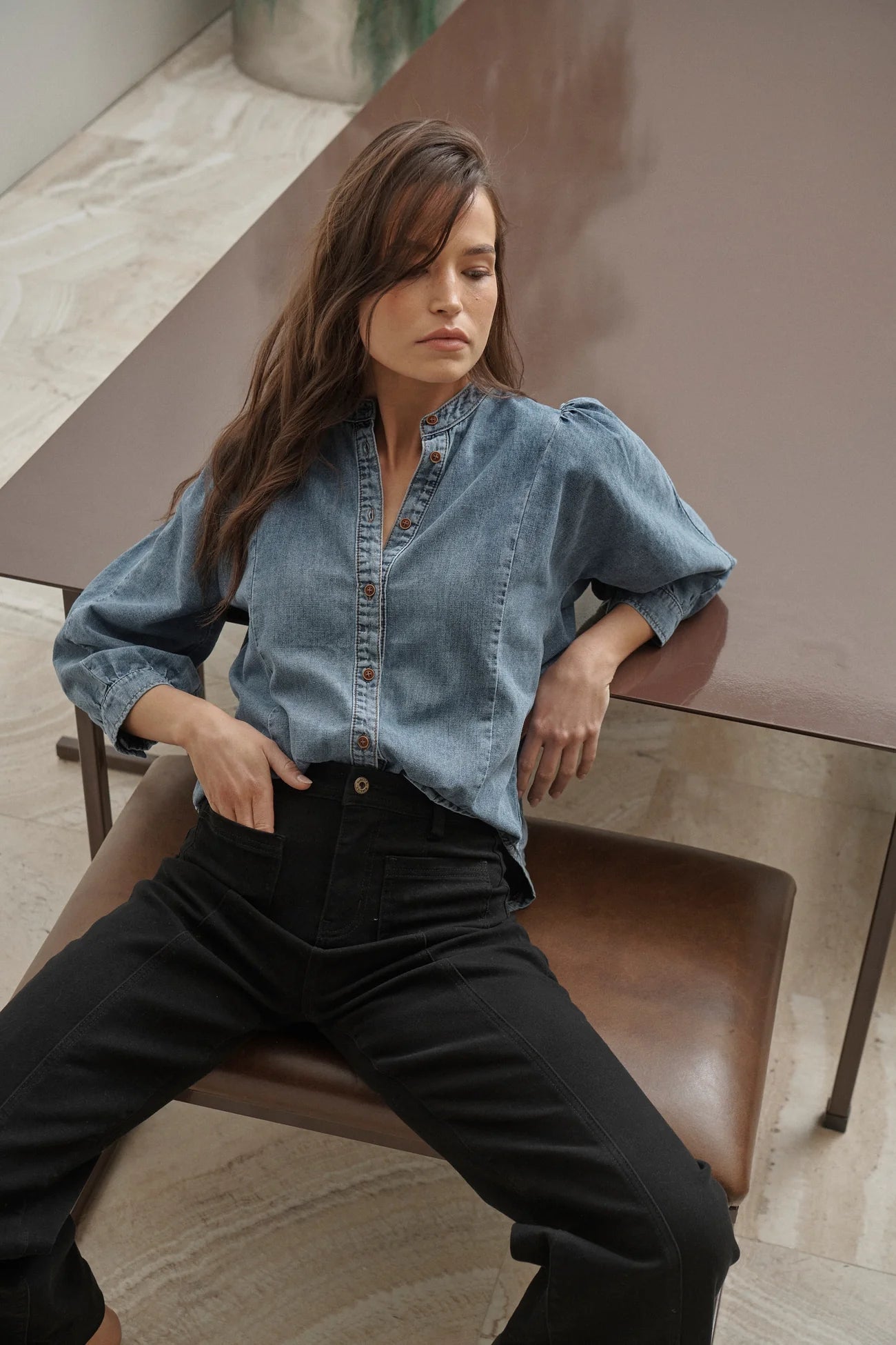 Indulge in comfort and style with the Kireina Isla Shirt in Baja Blue Denim. Featuring a structured silhouette, puffed shoulders, and 3/4 sleeves, this shirt is perfect for everyday wear. Made of soft cotton chambray, you'll never want to take it off!