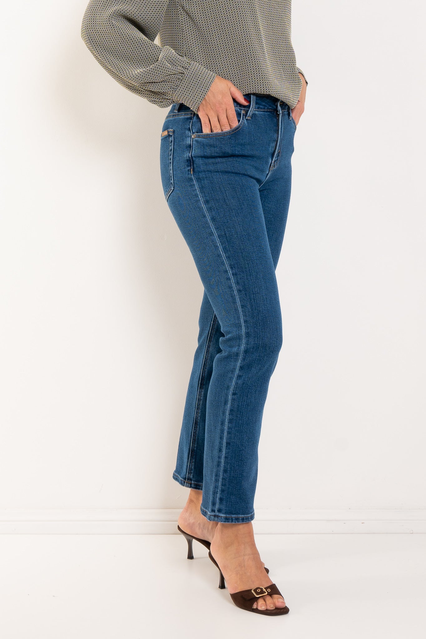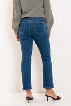 The Vacay Jean embodies laid-back elegance with its straight-leg cut and subtle kick flare. Rendered in the signature Brentwood Blue wash, this piece strikes the perfect balance between relaxed and refined. Ankle-length hemming creates a lengthening effect that works seamlessly with any footwear, while the understated design delivers effortless versatility for both holiday escapes and everyday wear.