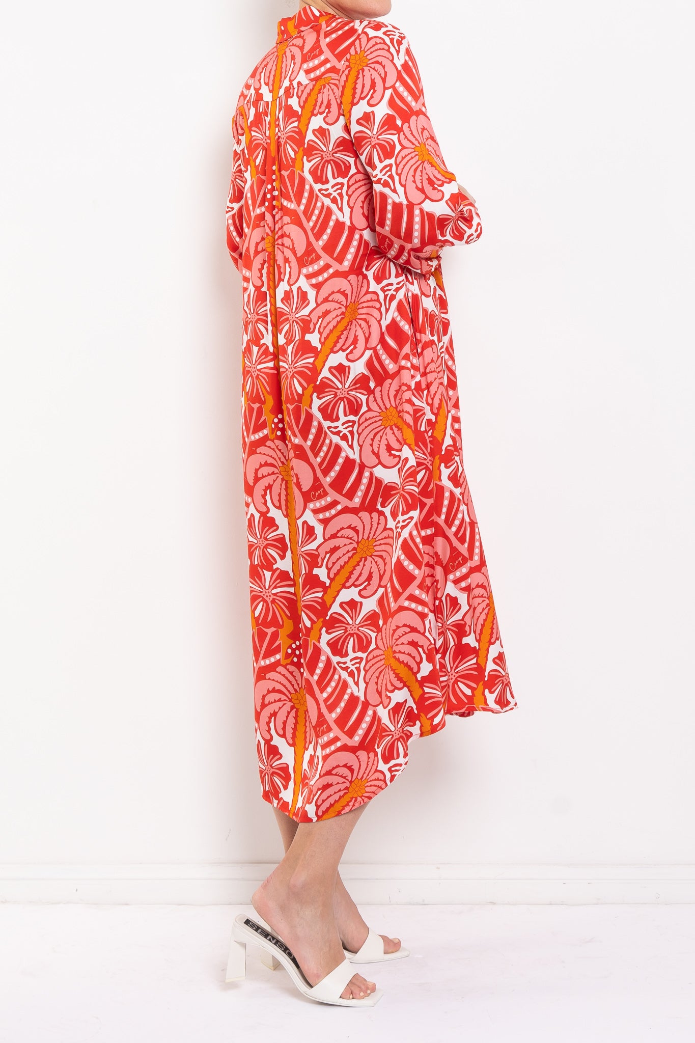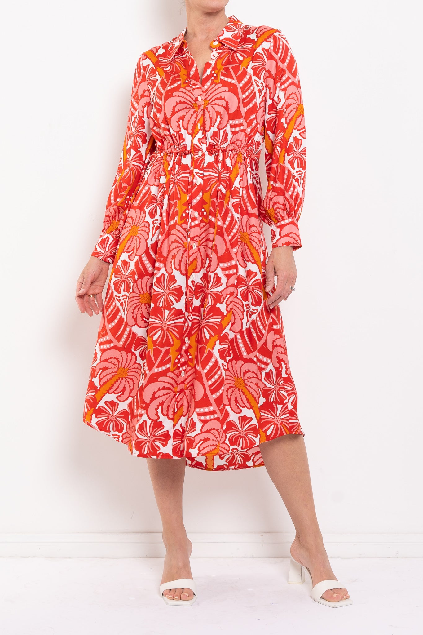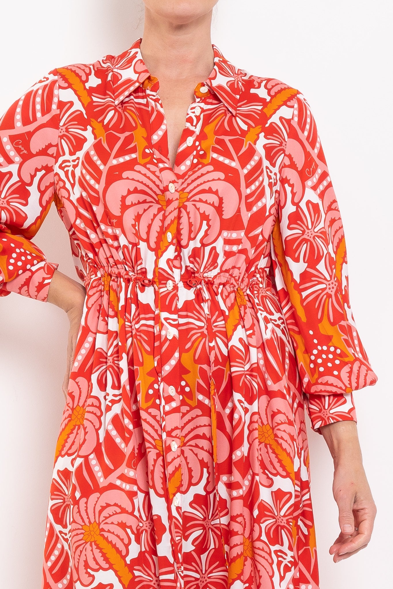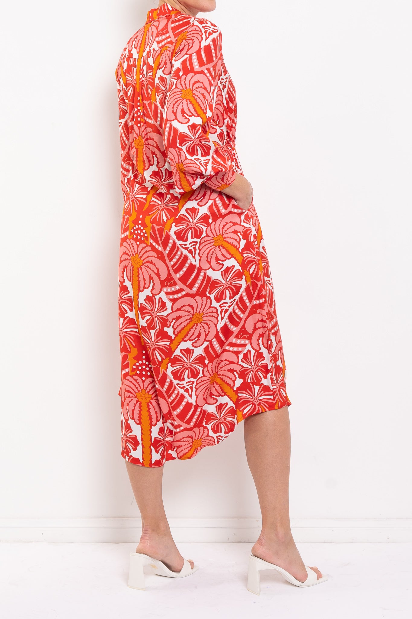 Flaunt vibrant colours and bold patterns this season with the showstopping ‘Tropical Punch’ fabrication, in the ‘Draw Me Near’ dress. Showcasing a button through design, with full sleeves and cuffs, the dress features a draw cord at the front that can be used to cinch in the waist for added shape. A perfect throw on dress for when you can't decide on what to wear.