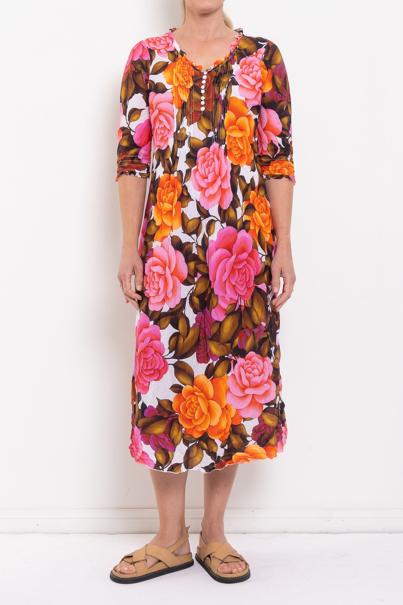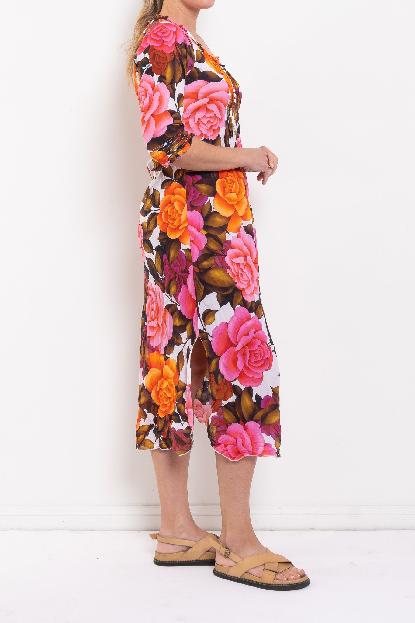 The Long Poppy Dress is a One Season favourite, reimagined in the vibrant Deia Roses print. Designed with a flattering v-neckline and button-through front, it offers a relaxed yet polished silhouette that skims the figure without clinging. The maxi length creates a sense of easy drama, while the lightweight cotton fabric ensures cool comfort, whether you’re strolling through the city or holidaying by the sea. It’s an endlessly versatile piece you’ll wear on repeat all season long.