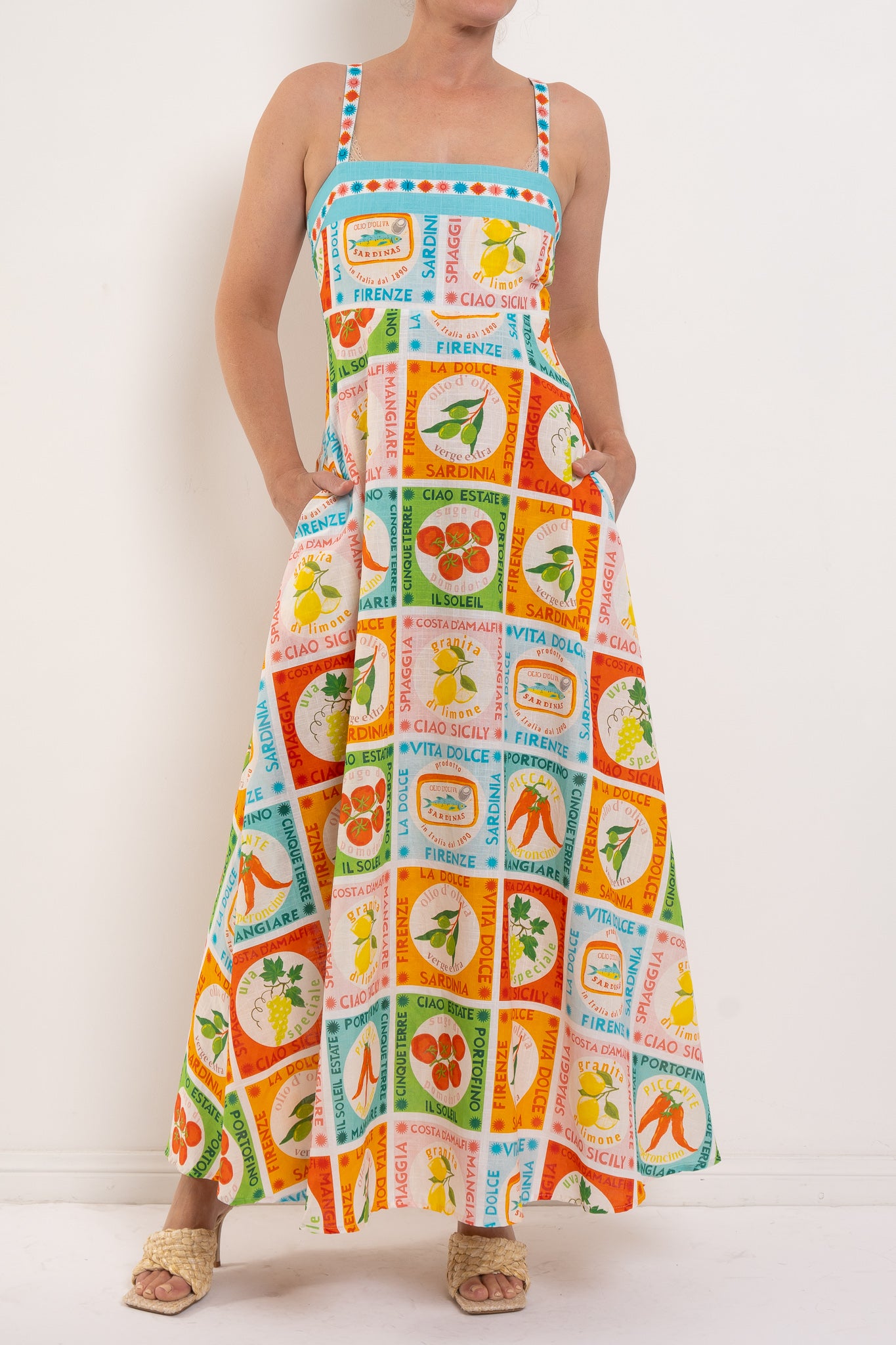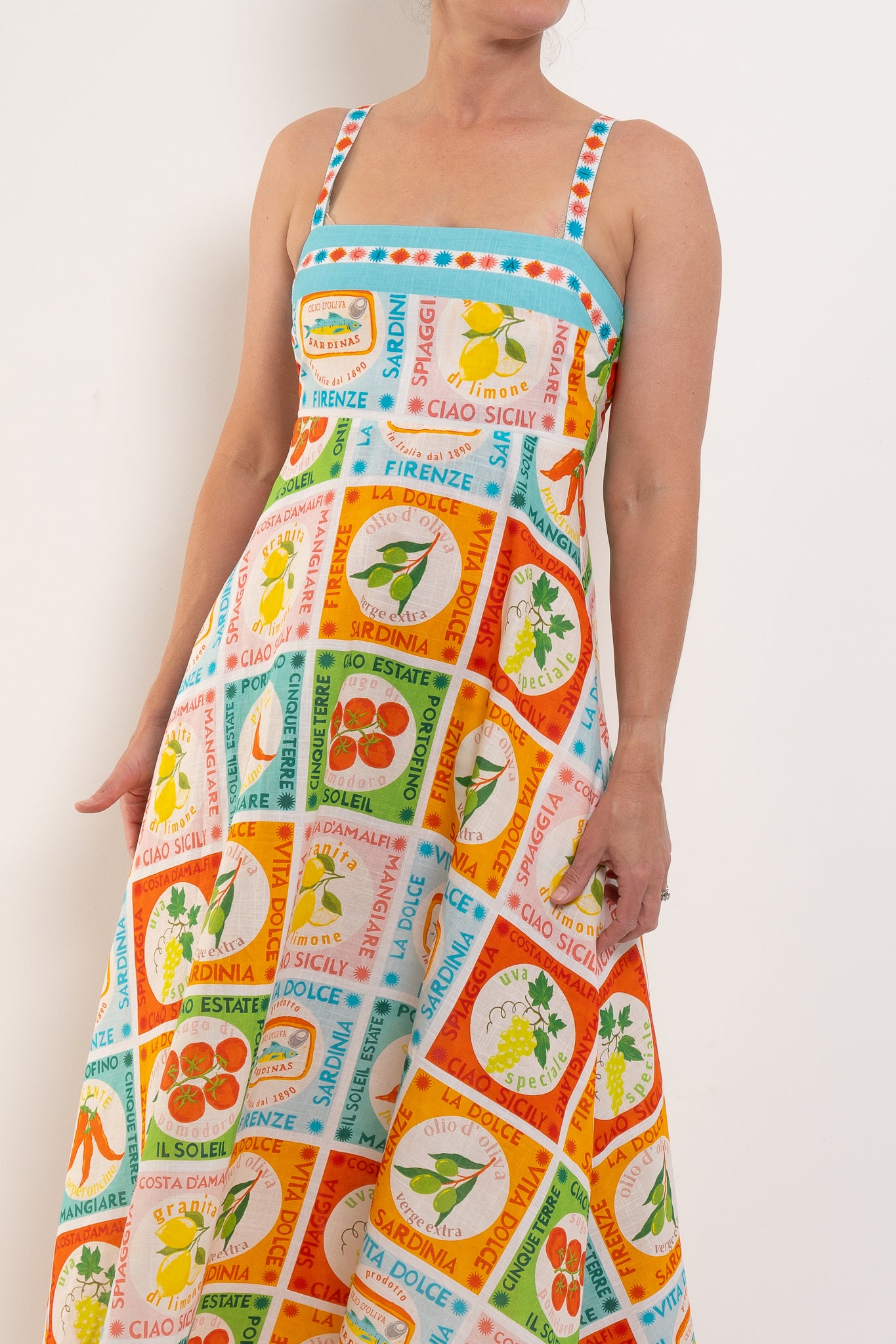 A sunny-day statement in full technicolour. The Milan Dress is crafted in lightweight cotton and cut to a flattering fit-and-flare silhouette. It features a square neckline, adjustable straps, and smocking through the back for comfort. The vibrant ‘Ciao Sicily’ print brings a nostalgic nod to European summer adventures, perfect for day-to-dinner dressing.