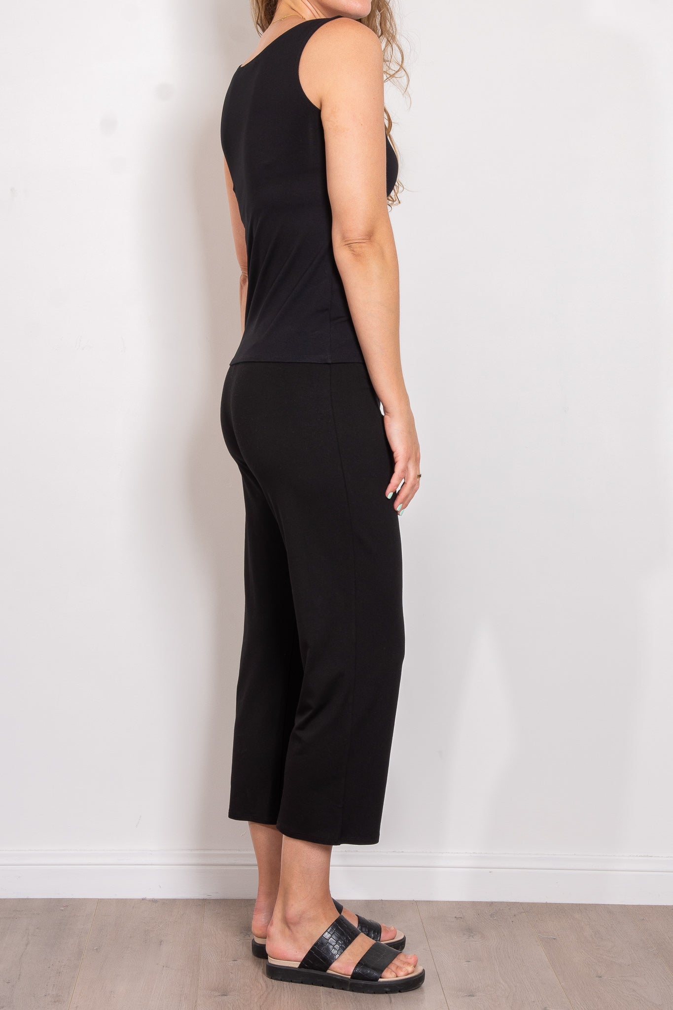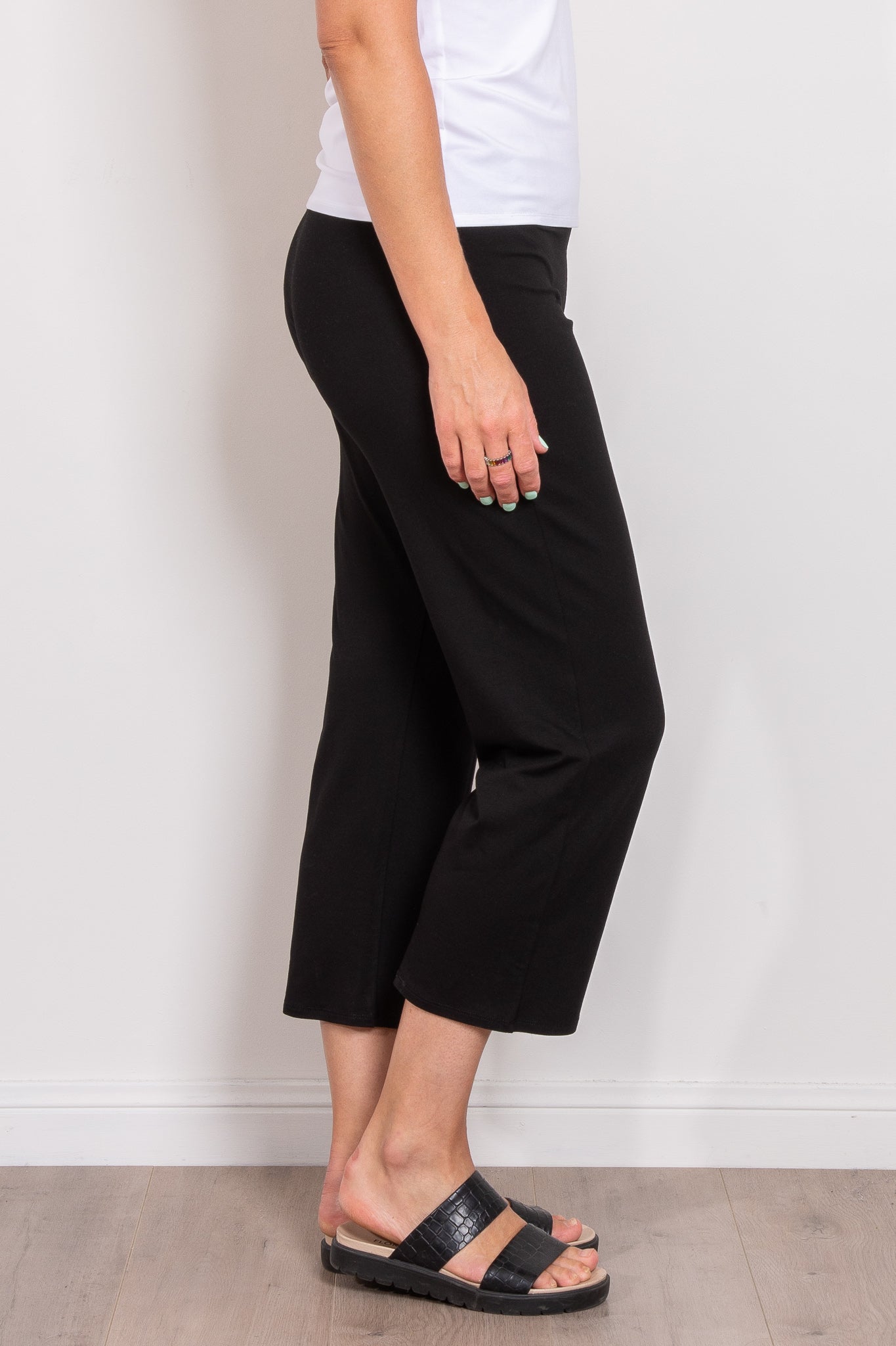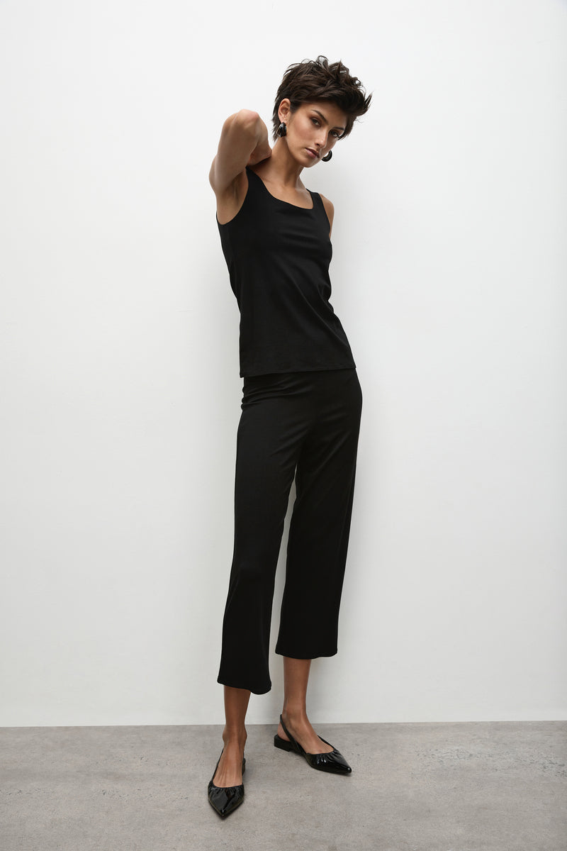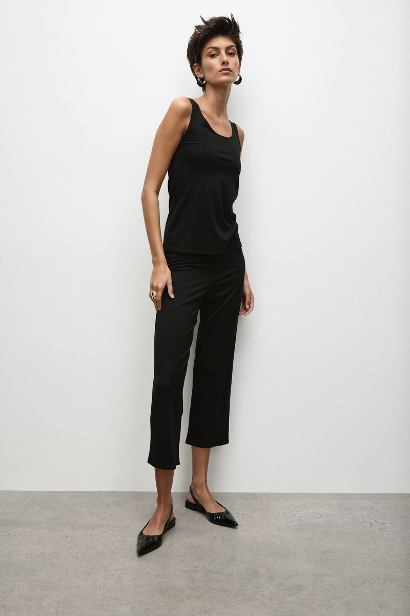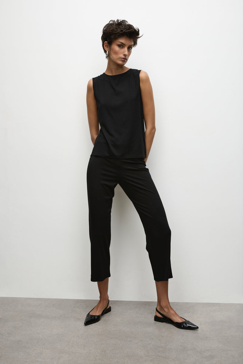 A classic in the Mela Purdie range, the stretch jersey 3/4 pant features a 1cm elasticated waist in a pull on style with cropped straight leg. These are possibly the most comfortable pants on earth, amazing for plane travel or situations involving a lot of sitting, they pair well with a longer top and sandals or sneakers for a relaxed summer day time look.