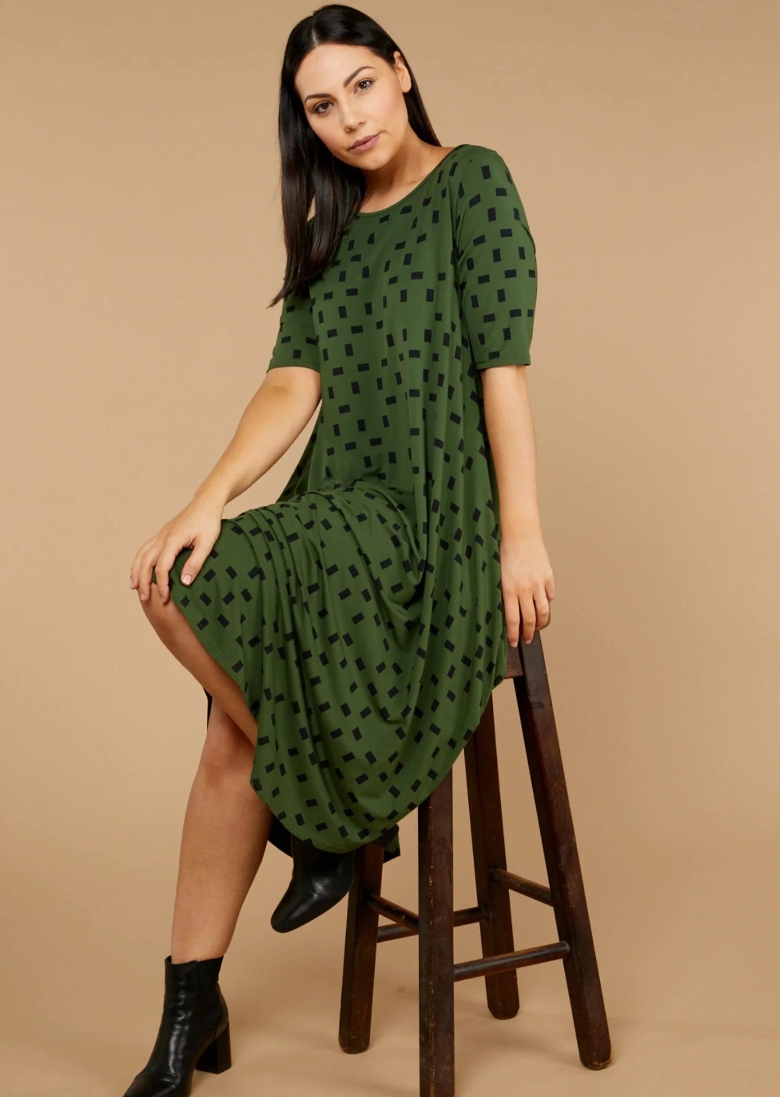 Introducing the Tani Original Tri Dress Print, also known as the "Magic Dress"! This versatile dress flatters all body shapes and can be styled belted or loose for any occasion. Available in a variety of colours and prints, it's a customer favourite. Elevate your style game with this must-have dress!