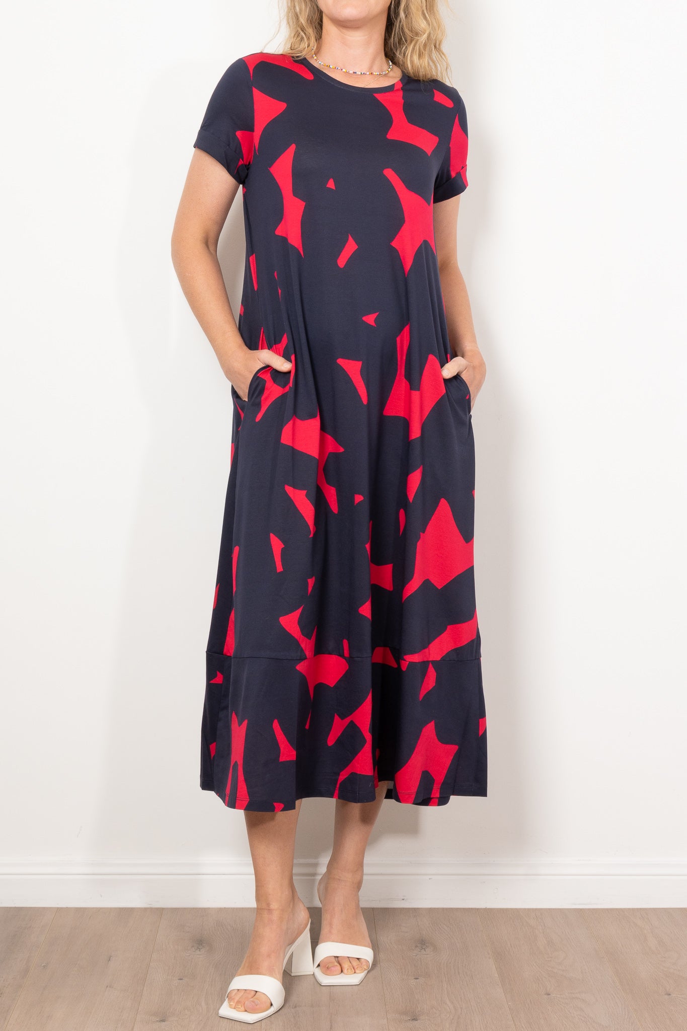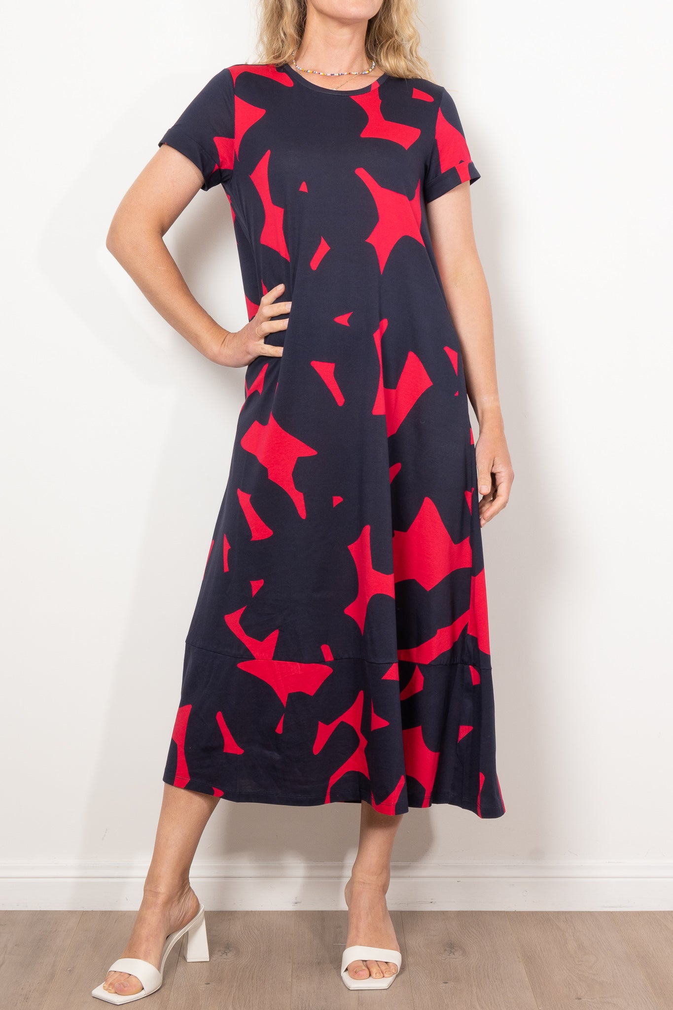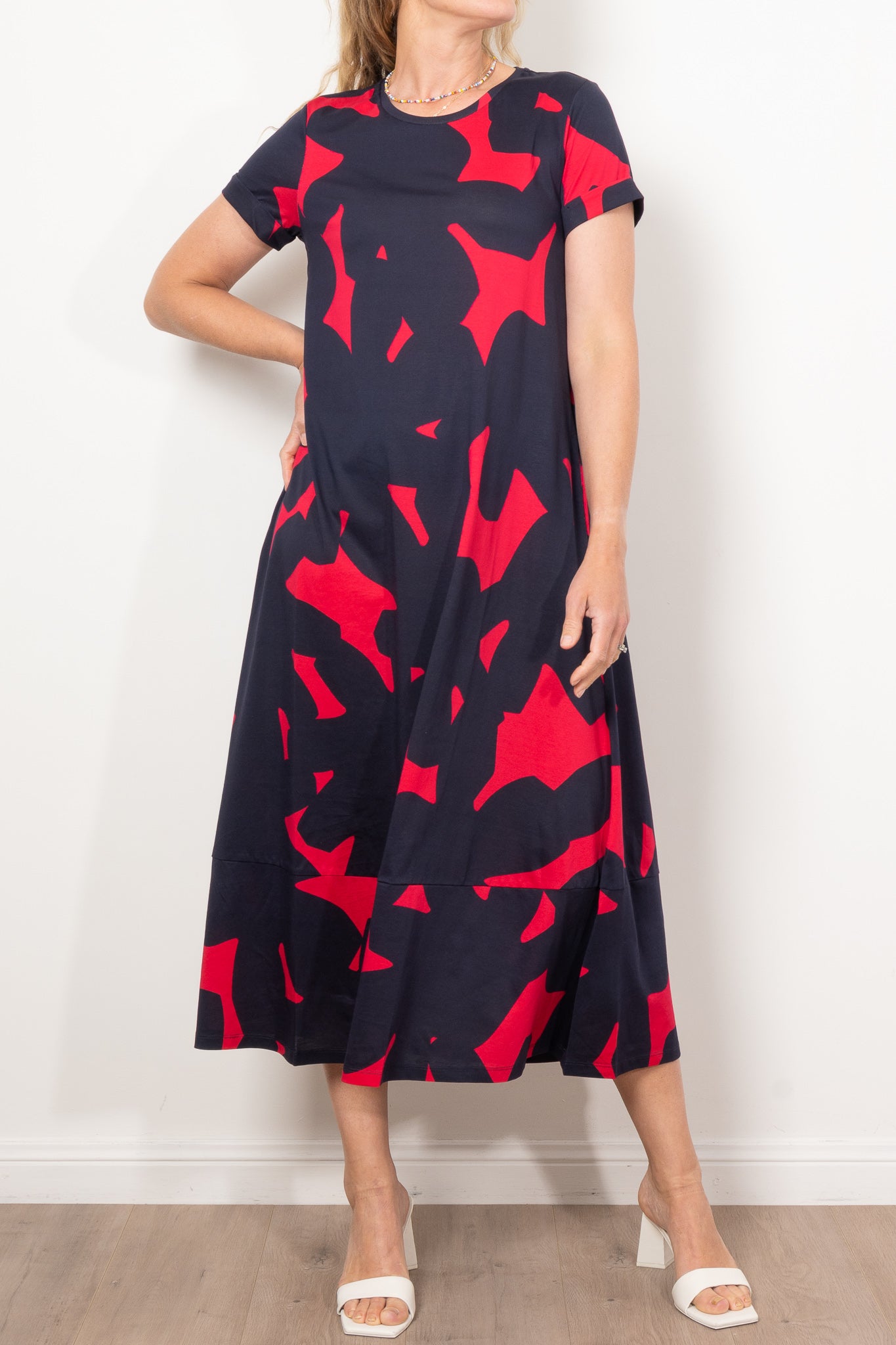 The ELK Haki Dress combines the ease and comfort of a t-shirt with the bold style of a seasonal print. Crafted from buttery organic cotton, this A-line dress features a swing shape, fixed rolled cuffs, and an inverted box pleat at the back for added flair. Perfect for all-day wear and versatile enough to pair with denim jackets or summer tailoring. Each dress features a unique print placement, making it a one-of-a-kind statement piece.
