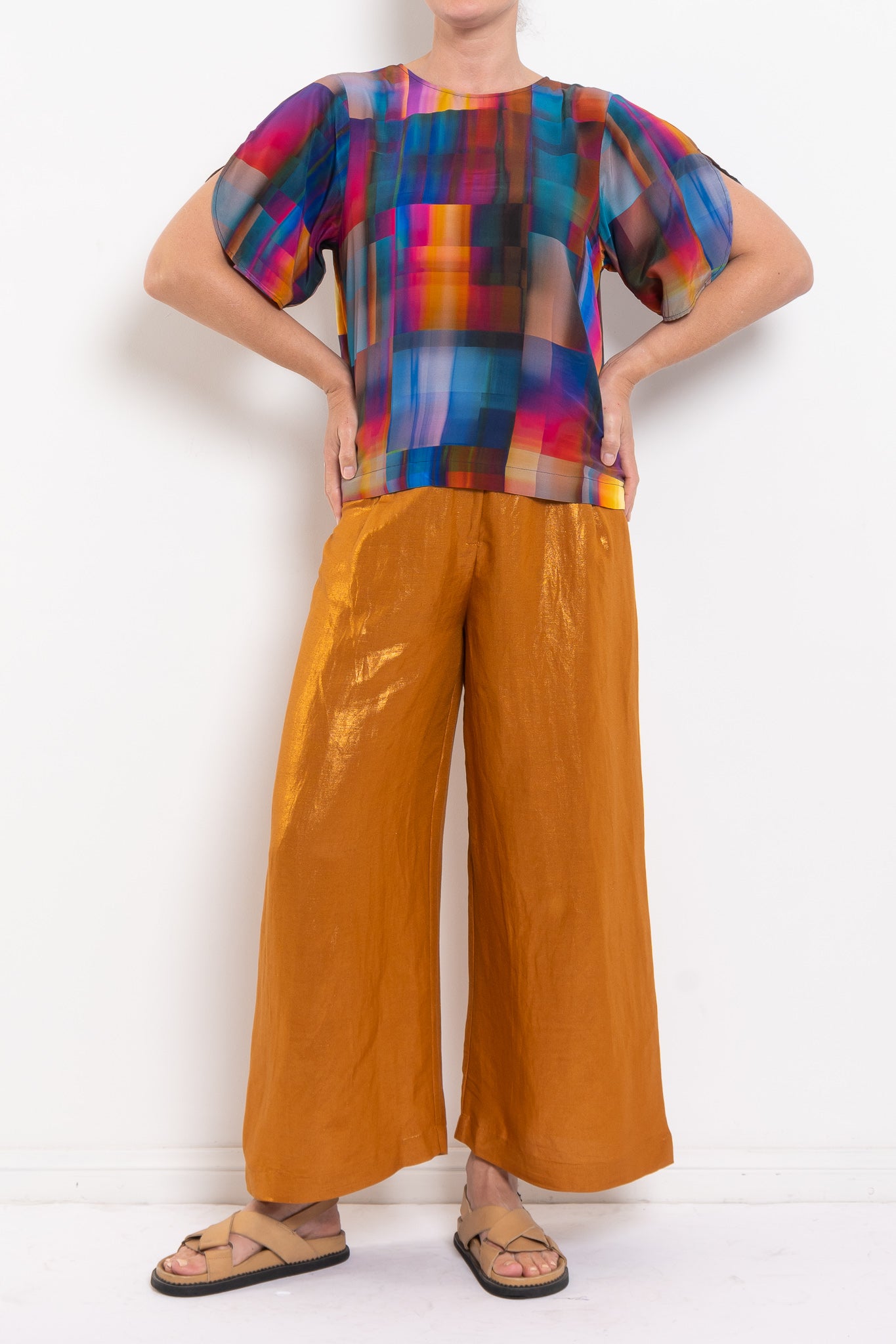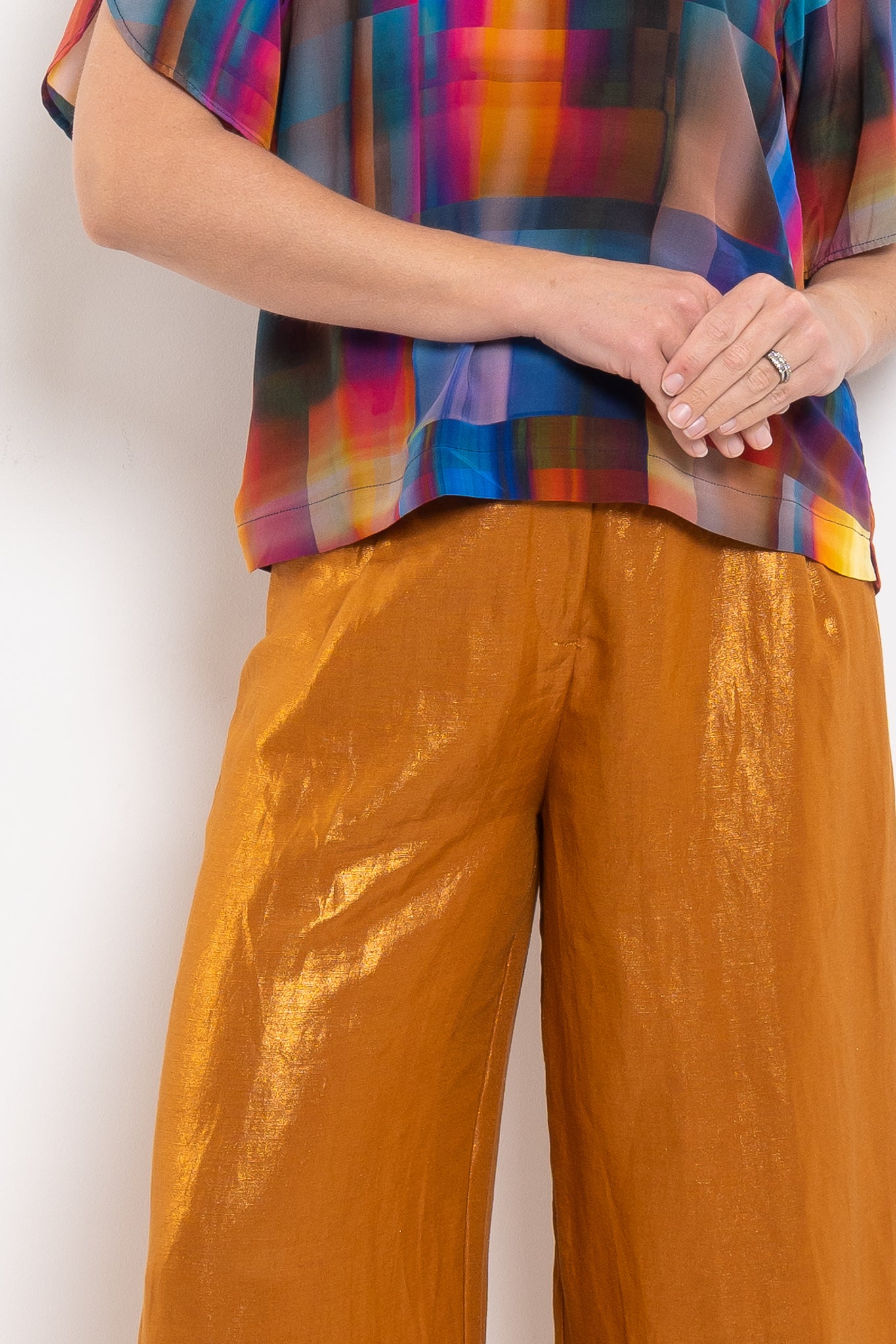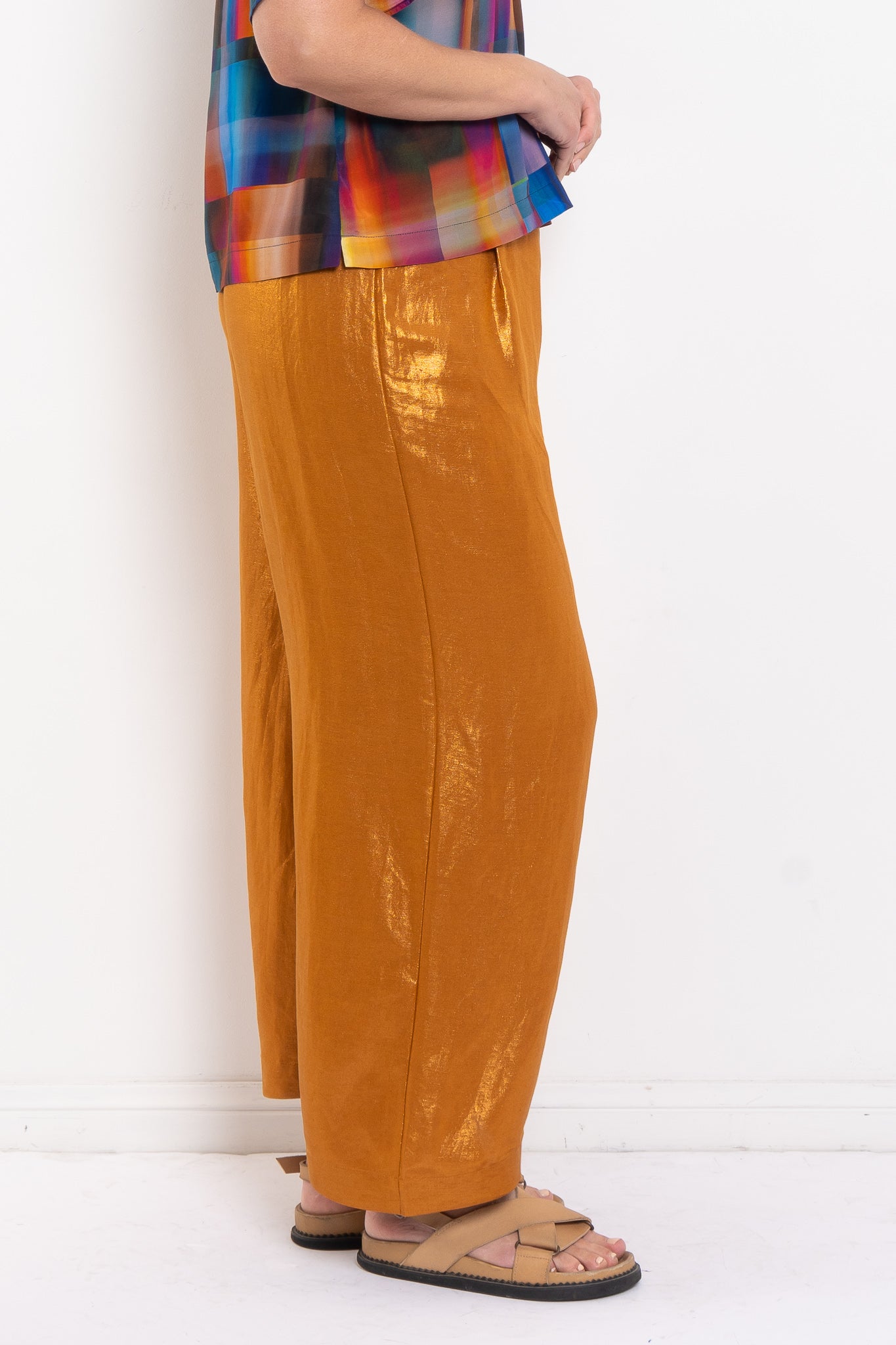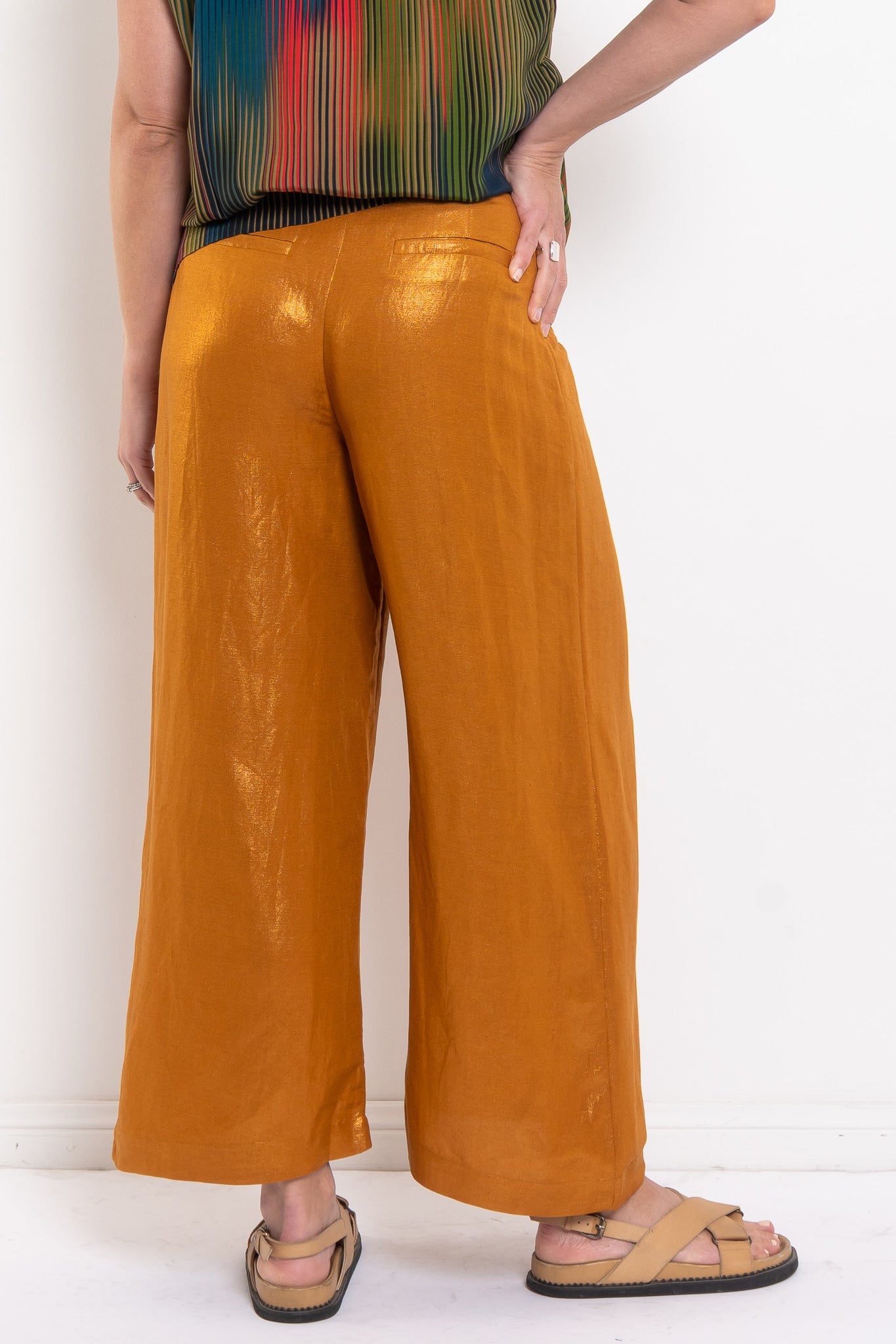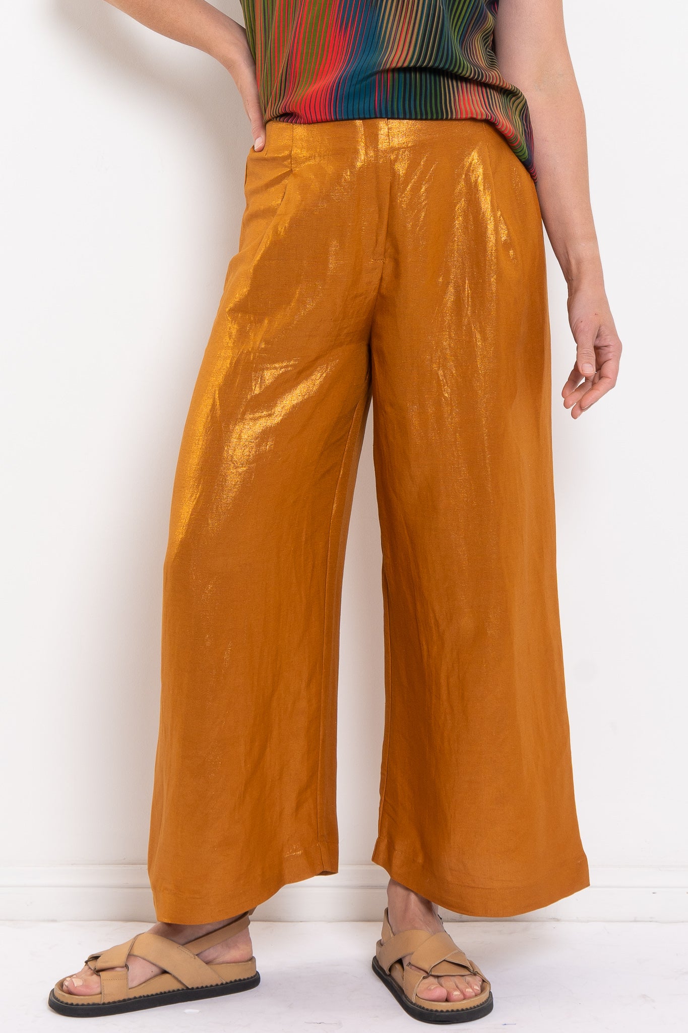 Crafted from a lightweight linen-viscose blend, the Jopa Pant has a fluid drape and subtle shimmer that catches the light beautifully. The high-rise waist and cropped wide leg create a flattering, elongating silhouette, finished with front darts for a streamlined fit. Comfortable yet polished, these pants work effortlessly for evenings out styled with the matching Jopa Tank, or pared back with a simple fitted top for everyday sophistication.