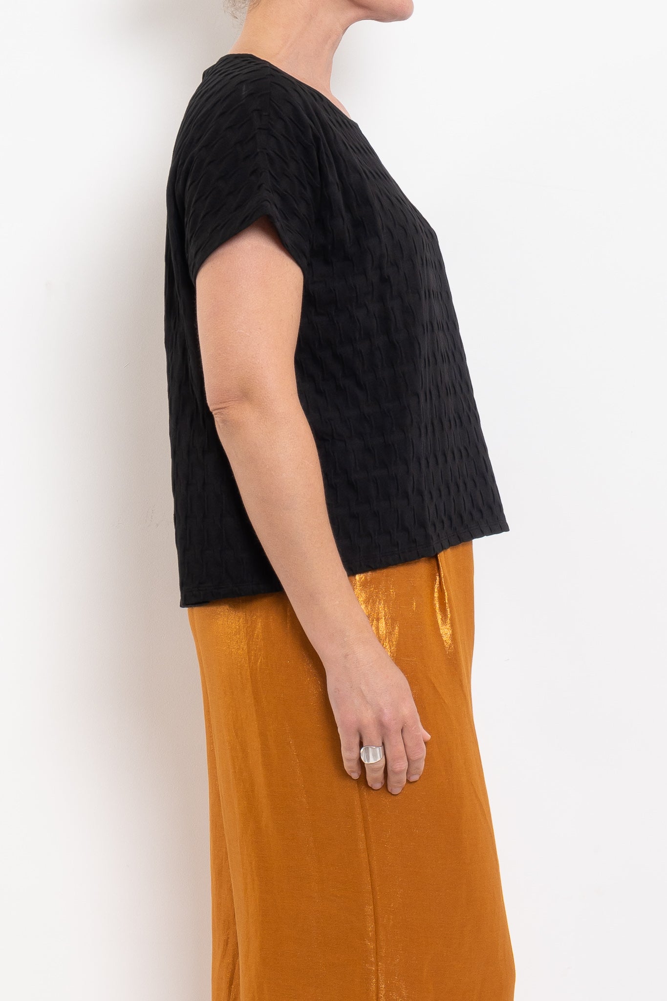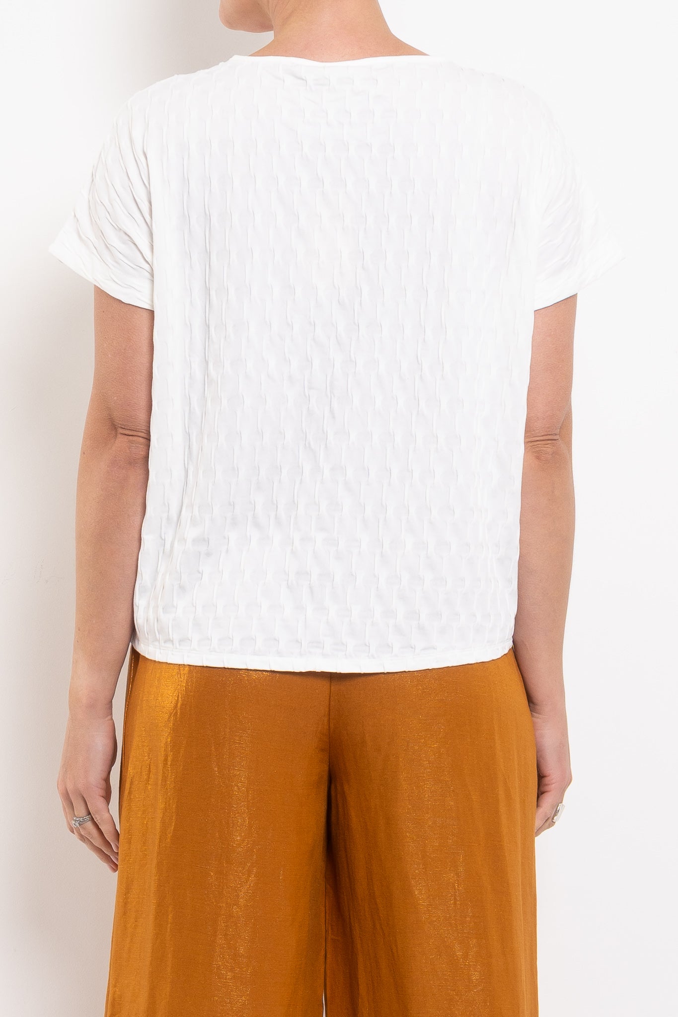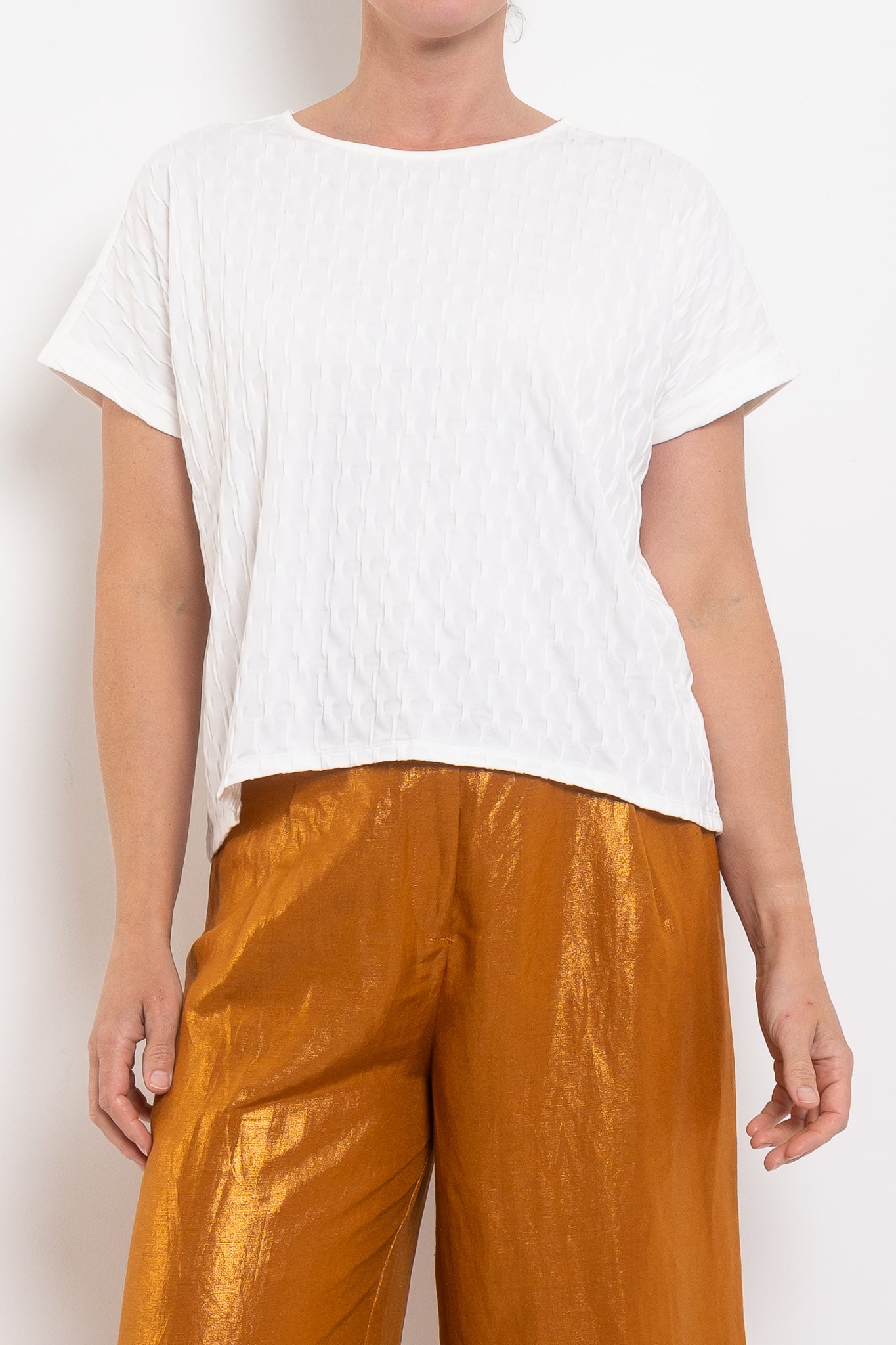 Crafted from organic cotton with a touch of stretch, the Orta Boxy T-Shirt is designed for comfort that lasts all day. Its relaxed silhouette makes it an easy go-to, while the raised bubble knit stripe adds subtle texture and interest. Soft, breathable and endlessly versatile, it’s the kind of tee you’ll throw on with denim for weekends, or dress up with tailored pants and playful accessories for an effortless desk-to-dinner look.