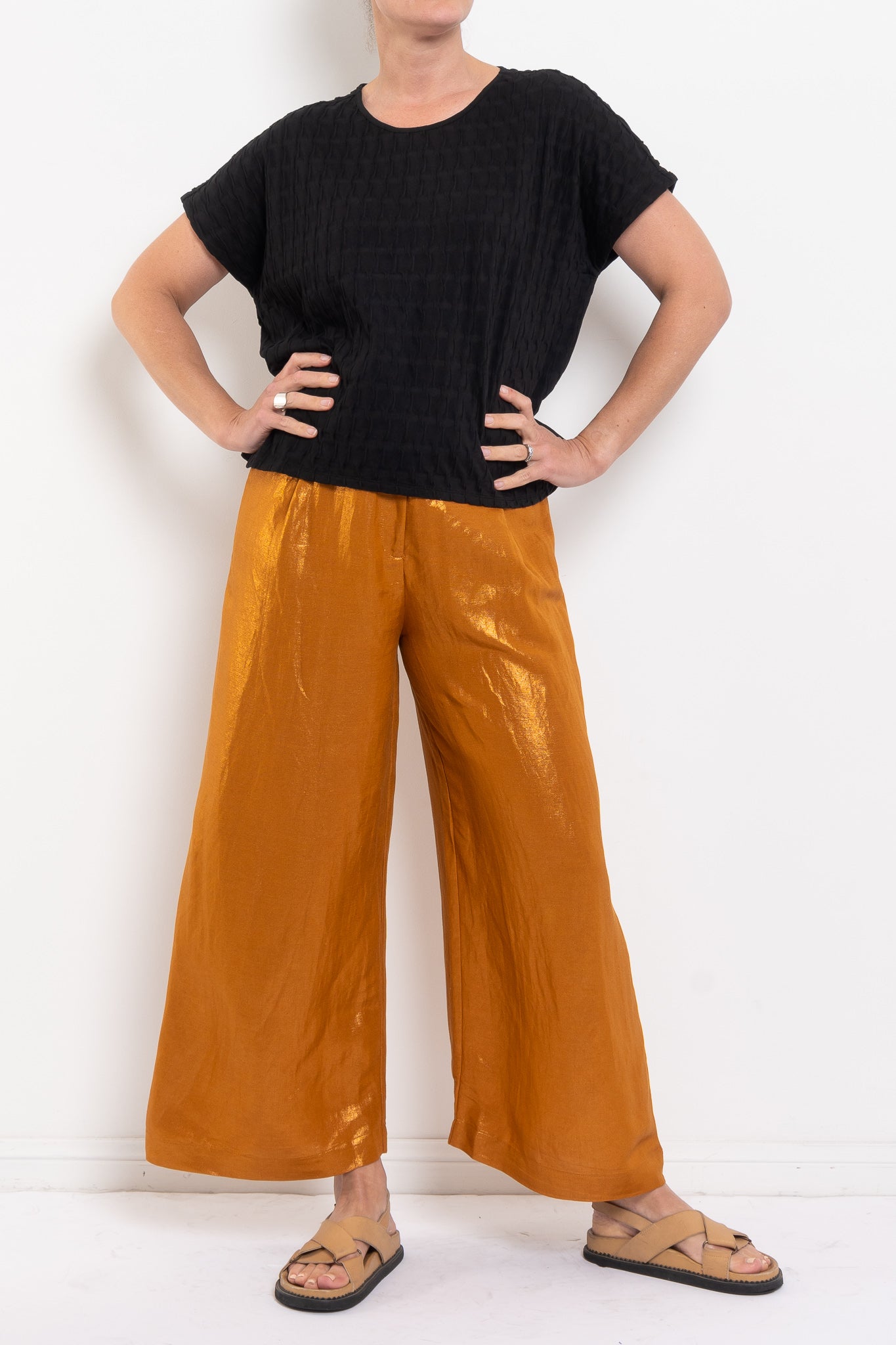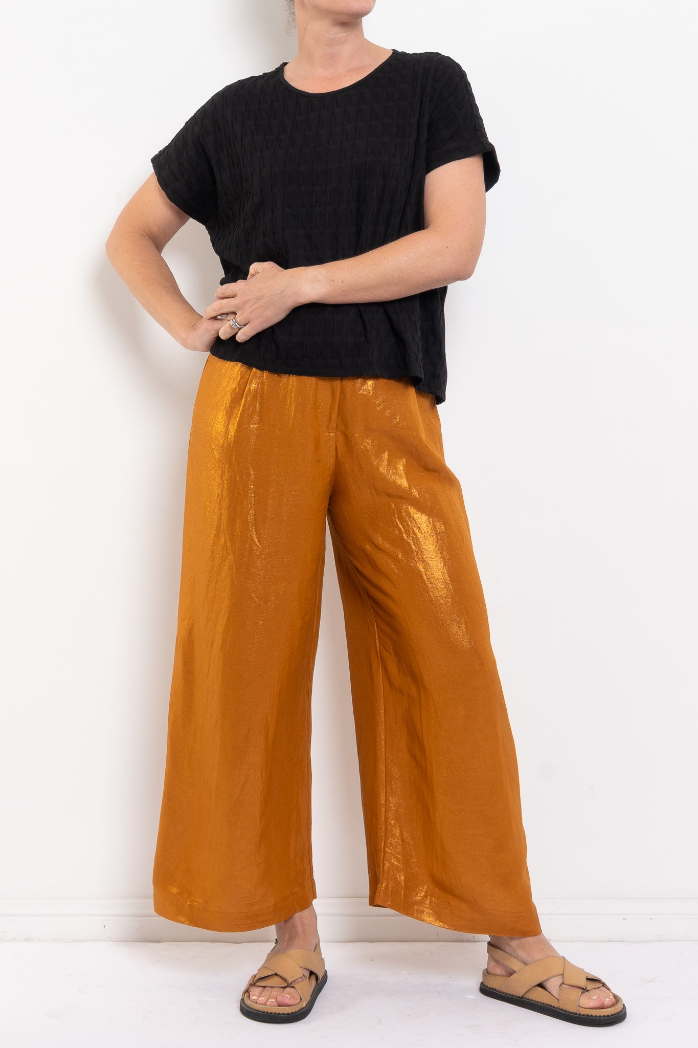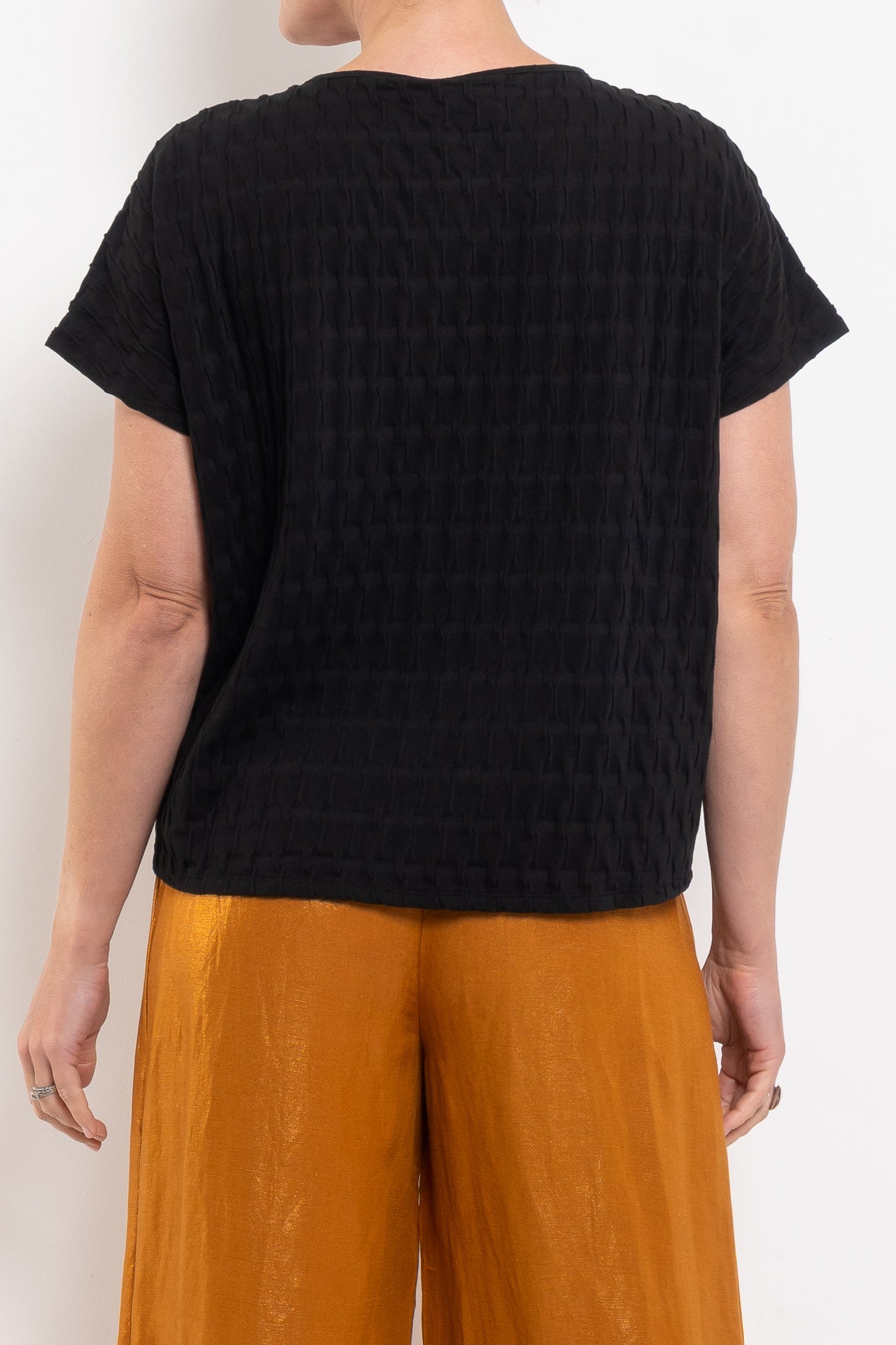 Crafted from organic cotton with a touch of stretch, the Orta Boxy T-Shirt is designed for comfort that lasts all day. Its relaxed silhouette makes it an easy go-to, while the raised bubble knit stripe adds subtle texture and interest. Soft, breathable and endlessly versatile, it’s the kind of tee you’ll throw on with denim for weekends, or dress up with tailored pants and playful accessories for an effortless desk-to-dinner look.
