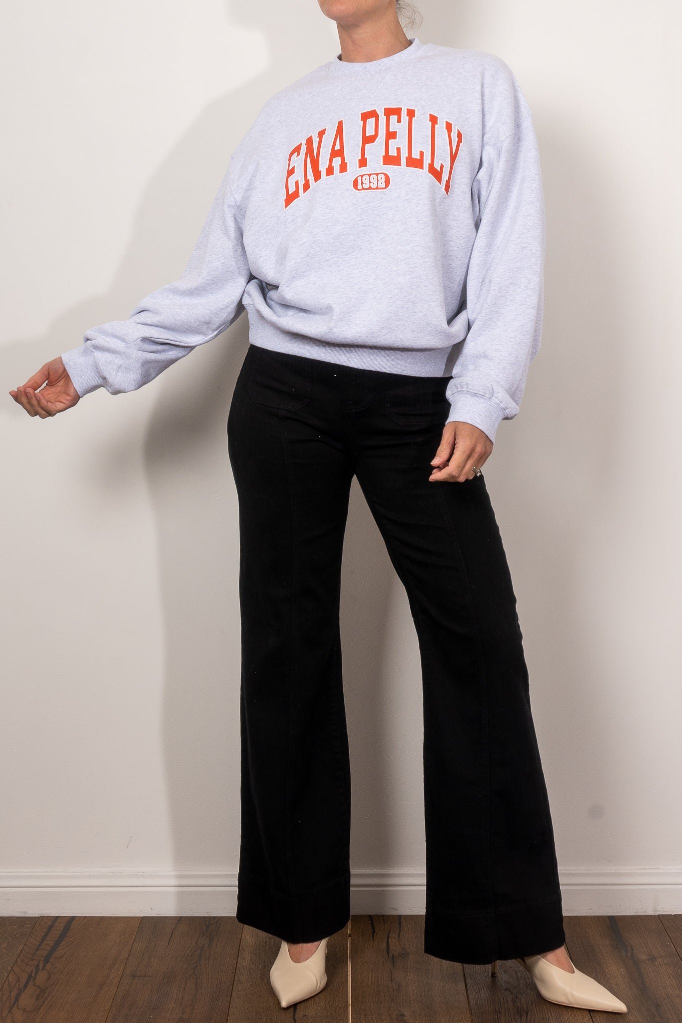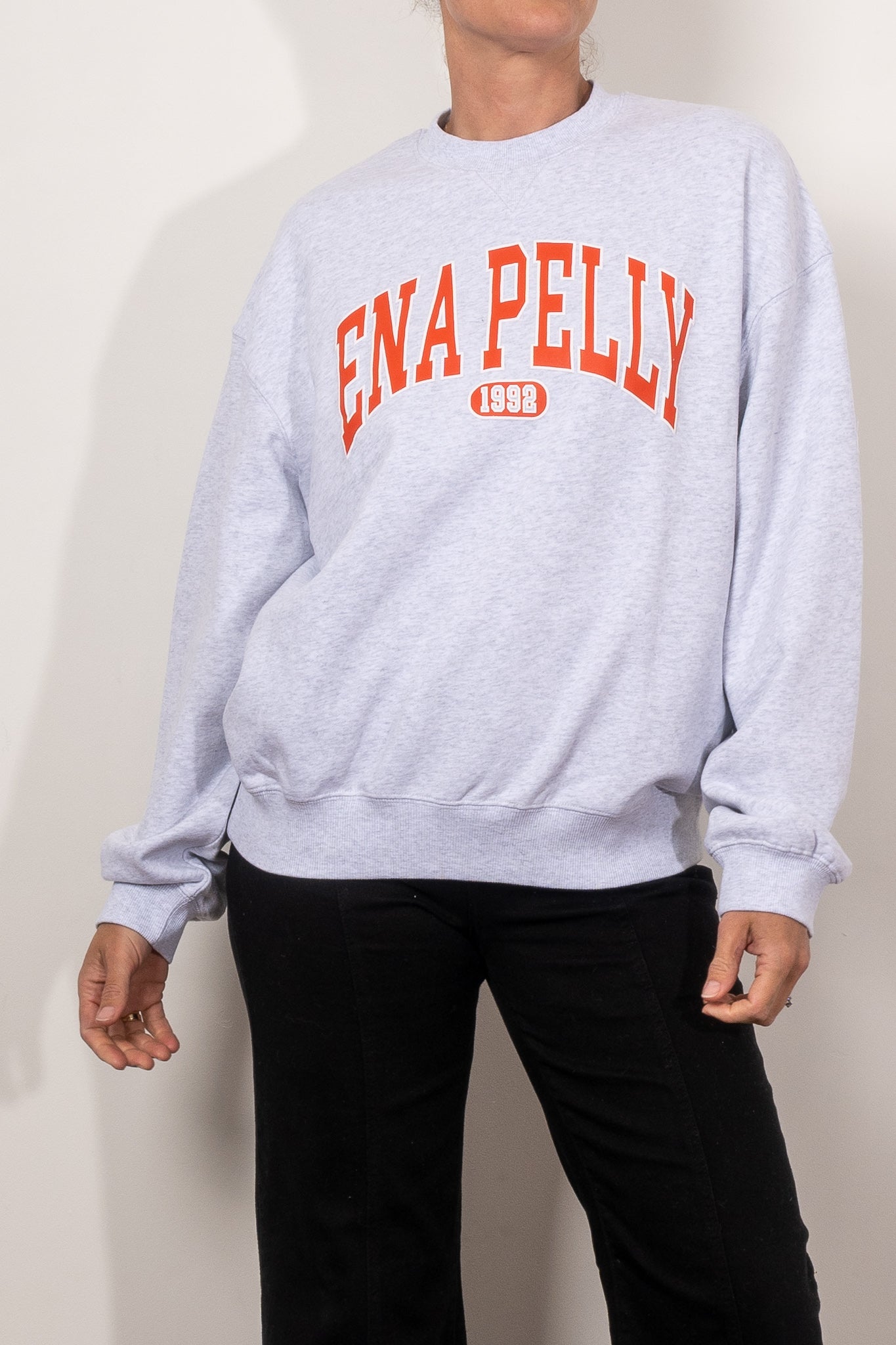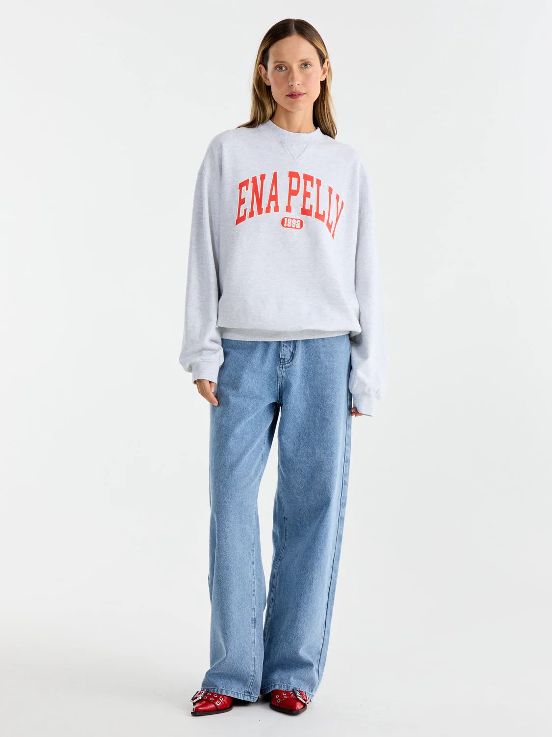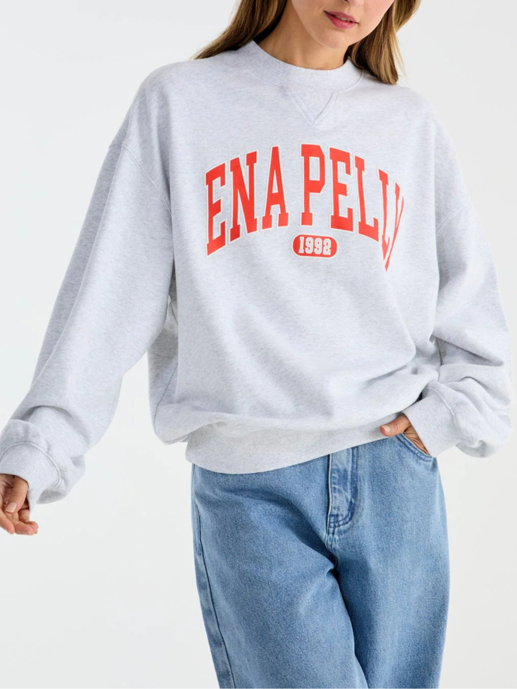 Elevate your everyday look with the Ena Pelly Collegiate Sweatshirt. Crafted from soft cotton terry with a washed finish, this sweatshirt offers an oversized fit and ribbed trims for comfort. Perfect for any occasion.