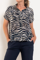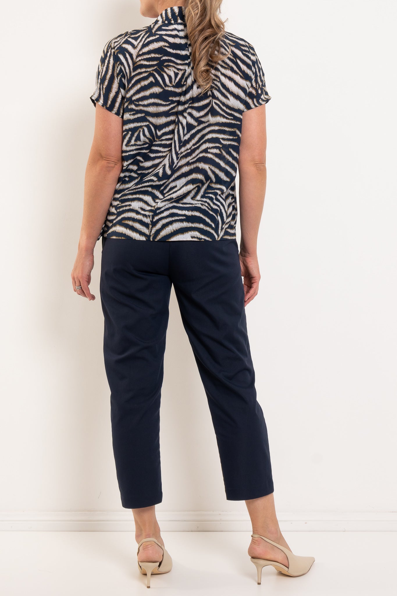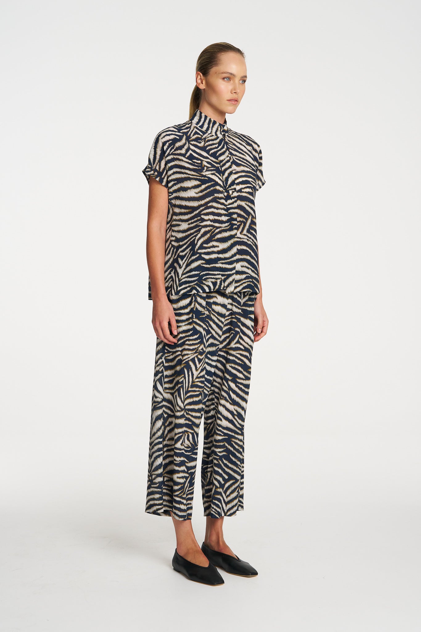Effortless silk with modern refinement. The Funnel Shell in Brush Print Silk is a sophisticated statement piece designed to elevate everyday dressing. See full product description below for fabric and fit info.