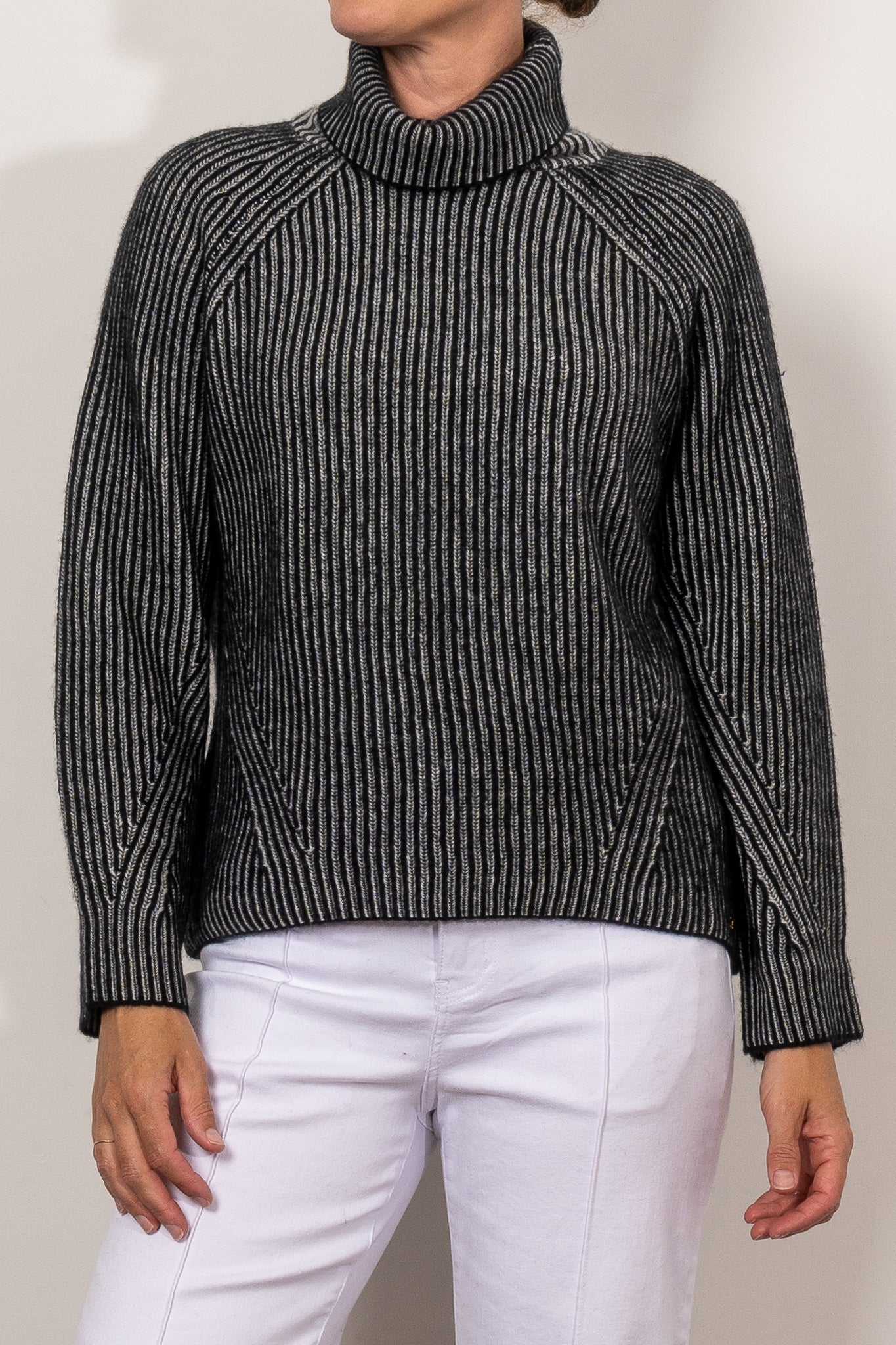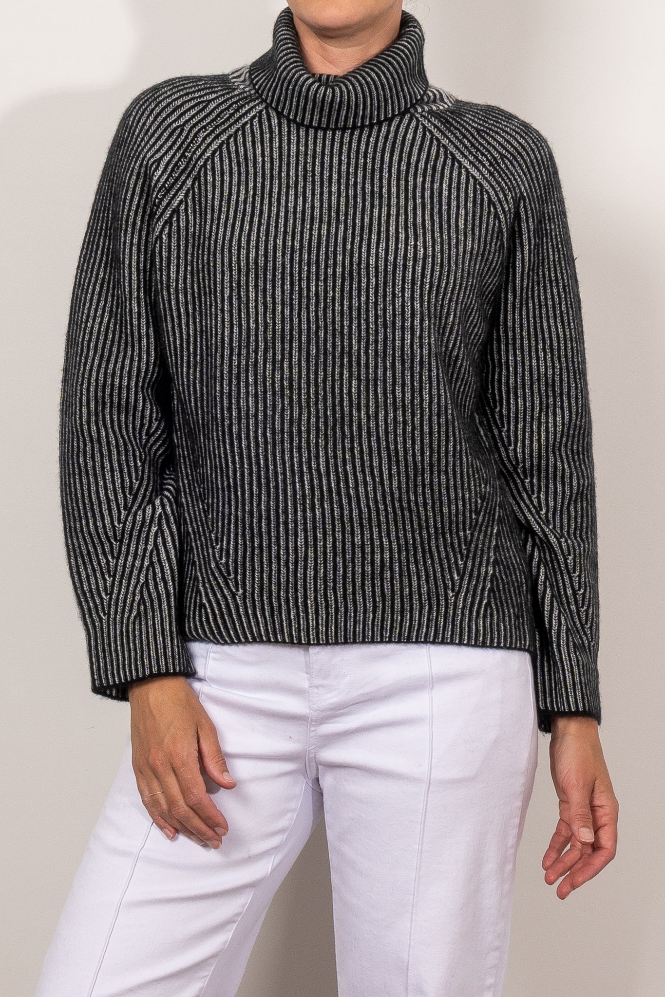 Stay cosy and stylish with the Mia Fratino Ren Rollneck. Made from a luxurious cashmere blend, this oversized sweater features unique contrasting knit detail and a cosy roll neck. Its slouchy, raglan sleeve design ensures a comfortable fit.  See full product description below for fabric and fit info.