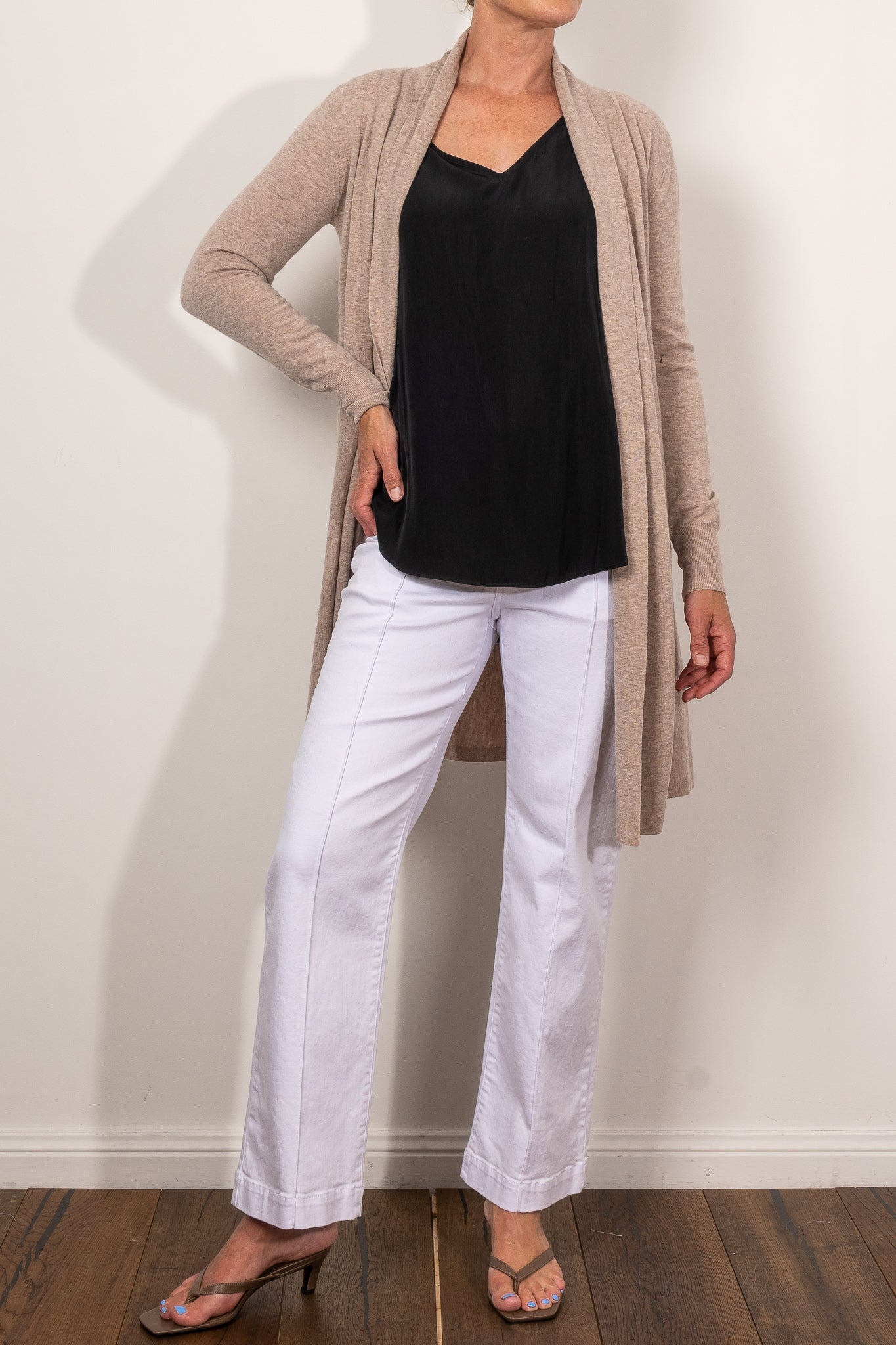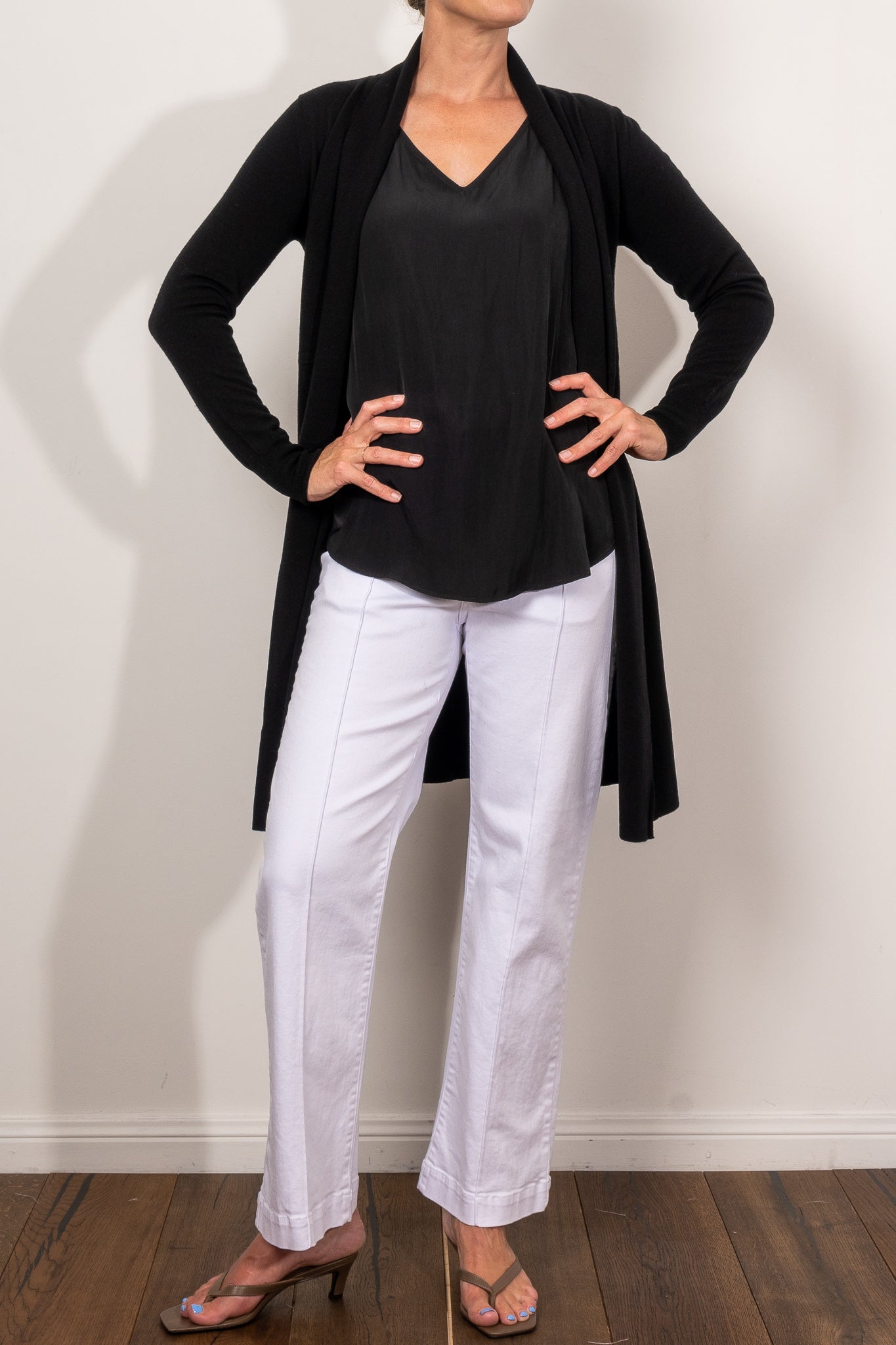 Stay cosy and stylish with the Bridge & Lord Emily Edge To Edge Cardi. This pull on, merino blend cardi is effortless to wear and features a waist seam for a flattering fit. See full product description below for fabric and fit info.