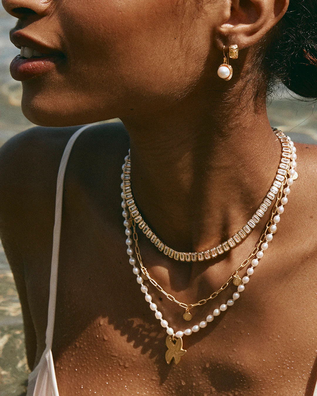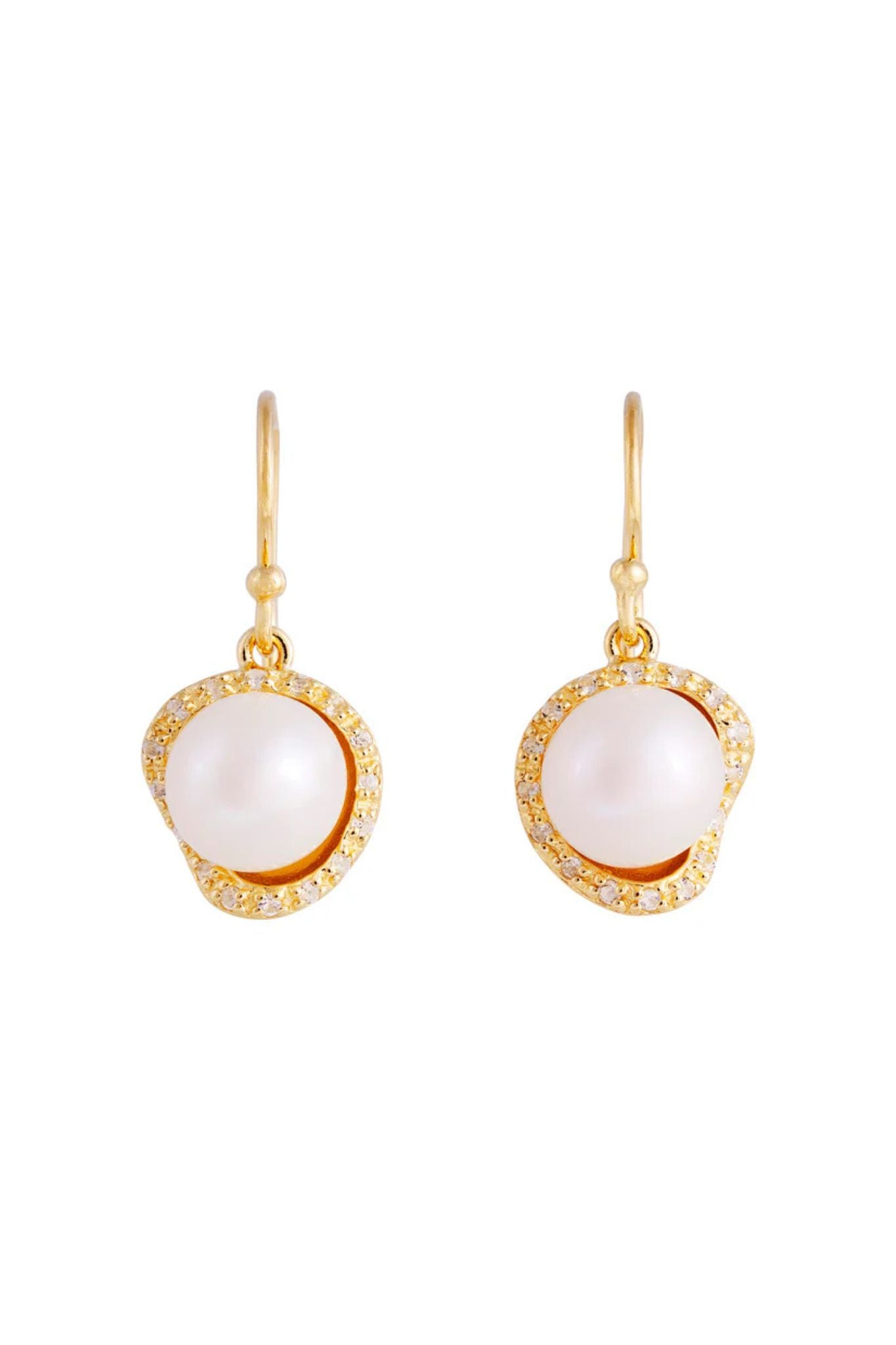 Add a refined touch of sparkle with the Freshwater Crystal Hooks. Featuring radiant freshwater pearls set inside a polished gold dish encrusted in shimmering crystals, these earrings strike the perfect balance between classic elegance and contemporary flair. Set on delicate sterling silver hooks, they’re lightweight, comfortable, and designed to catch the light with every movement.