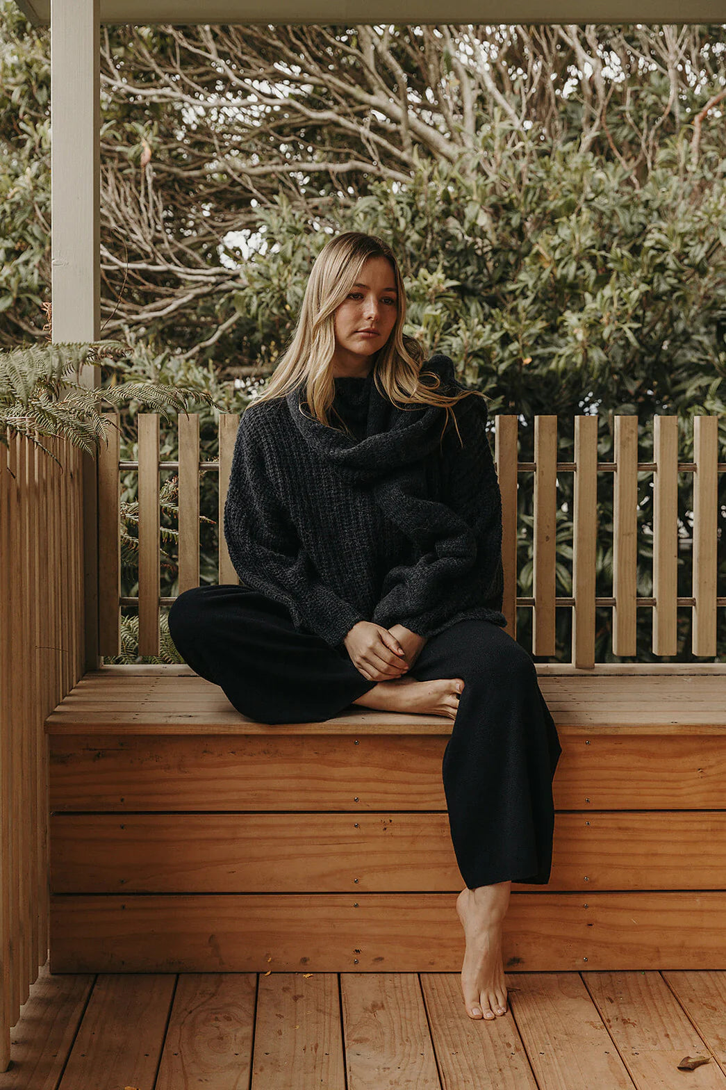 Wrap yourself up in the light and lofty, soft and so comfortable Æther scarf. This knit feels so lovely against the skin, with such a warm handle. Paired with any of Talamaya's knitted pullovers this piece completes the picture.