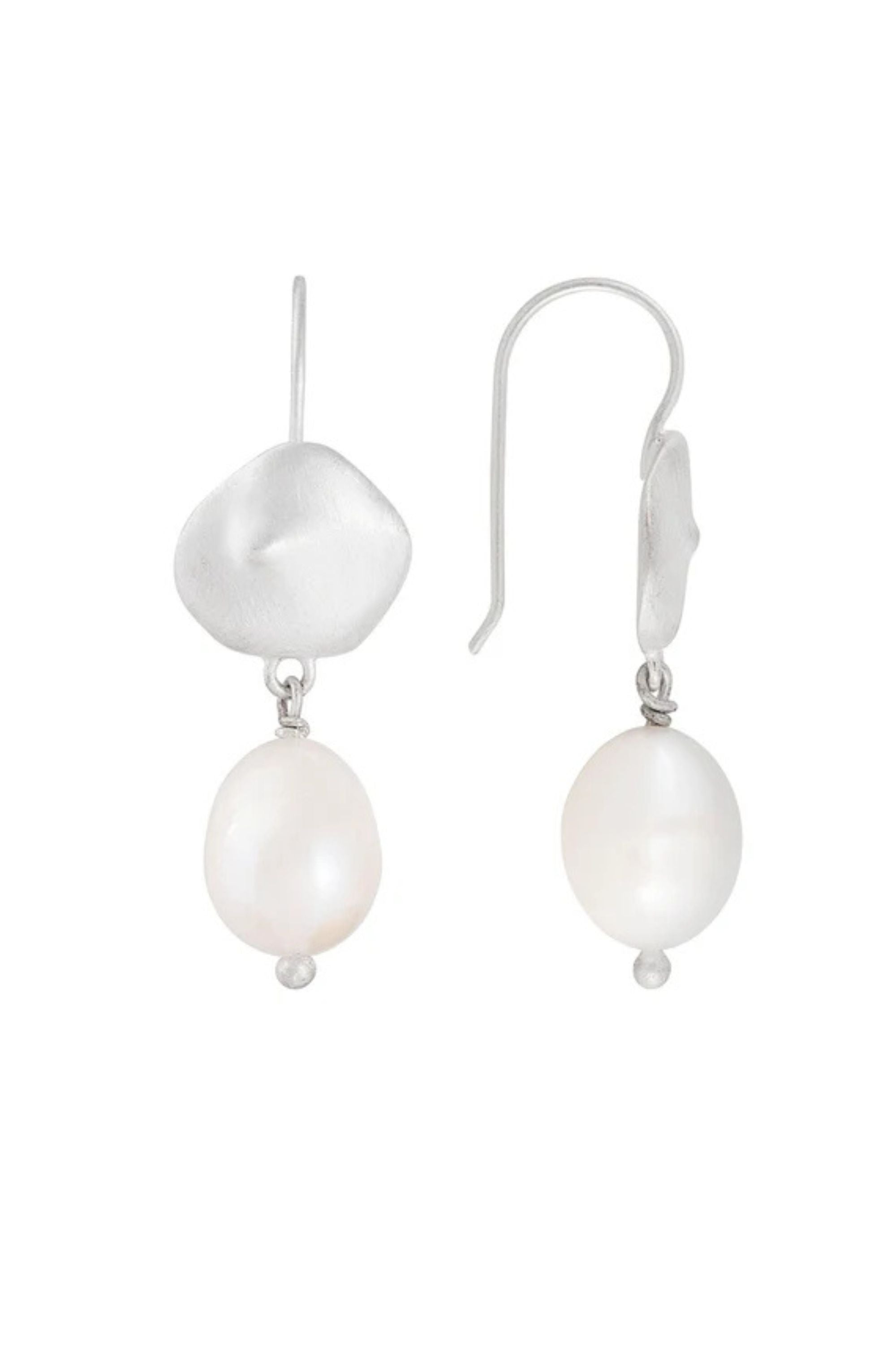 A nostalgic piece from designer Susannah Fairley who from the age of 6 began collecting shells and other trinkets from all over the world to create jewellery. These hook earrings feature a classic freshwater pearl delicately perched from a matte silver broken shell motif. Surprisingly lightweight, these earrings will add style to any outfit.