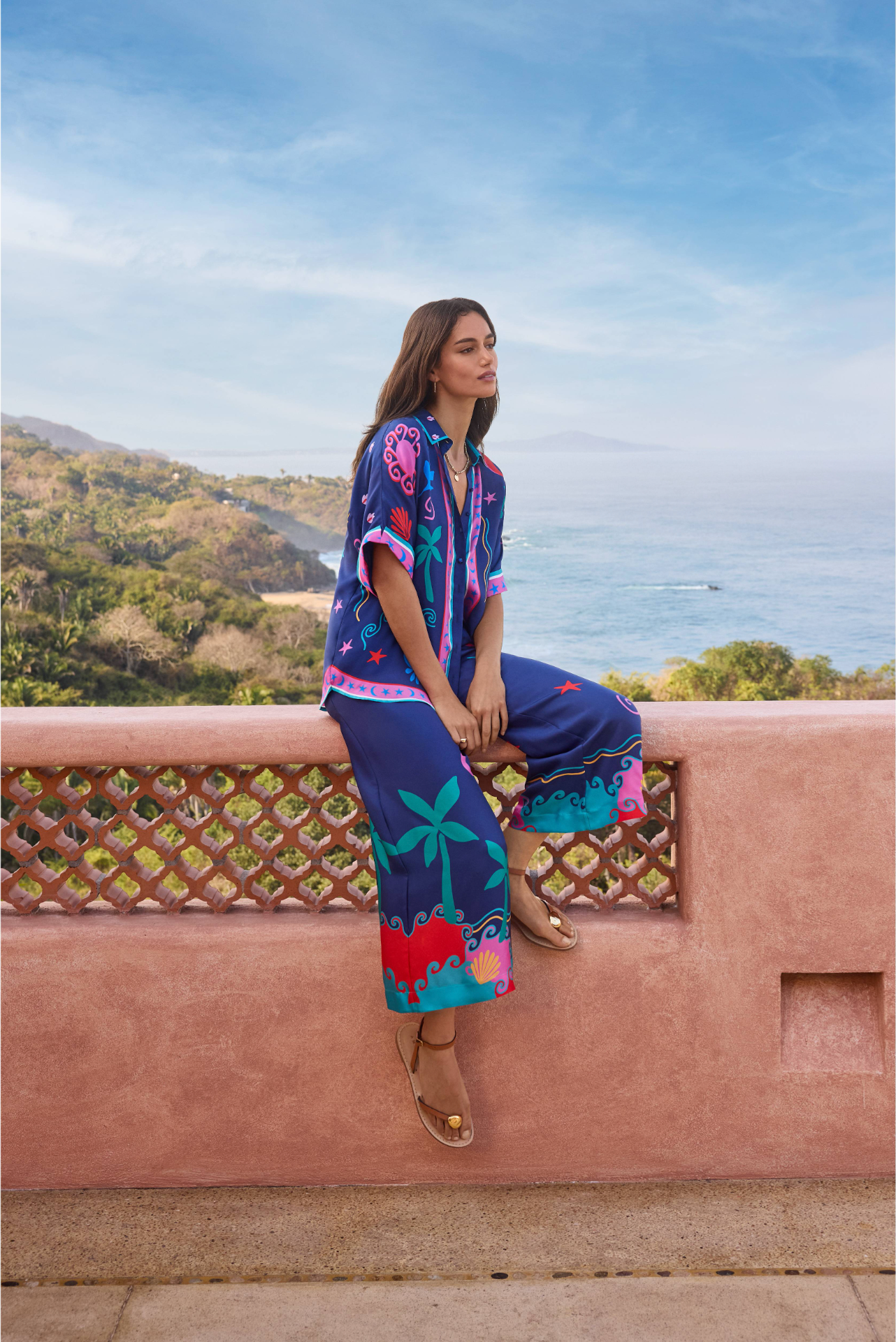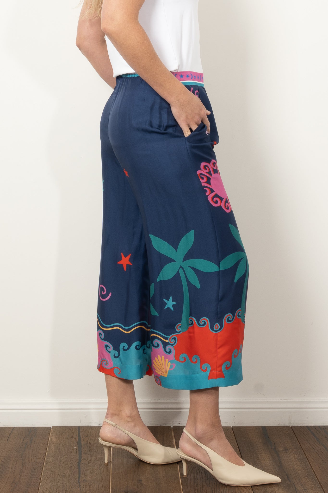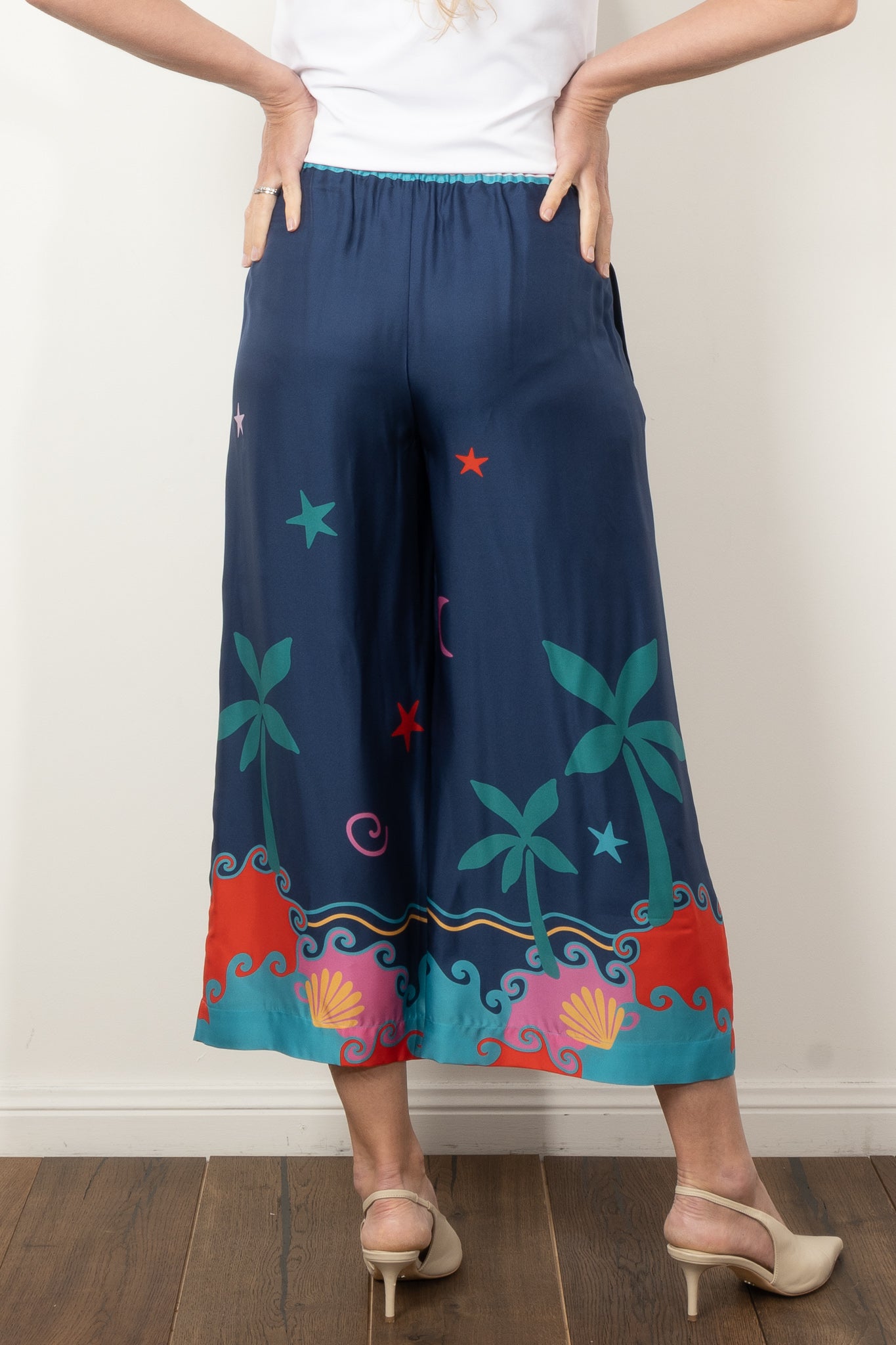 Experience effortless elegance with the Johnny Was Julissa Cropped Easy Pant. These flowing silk blend pants showcase stunning island scenes in vibrant patterns, while the elastic waist and slip pockets ensure all-day comfort. The knife pleats add a touch of sophistication to the relaxed silhouette. Perfect for vacation evenings or elevating your everyday wardrobe—these versatile cropped pants will quickly become your go-to statement piece.