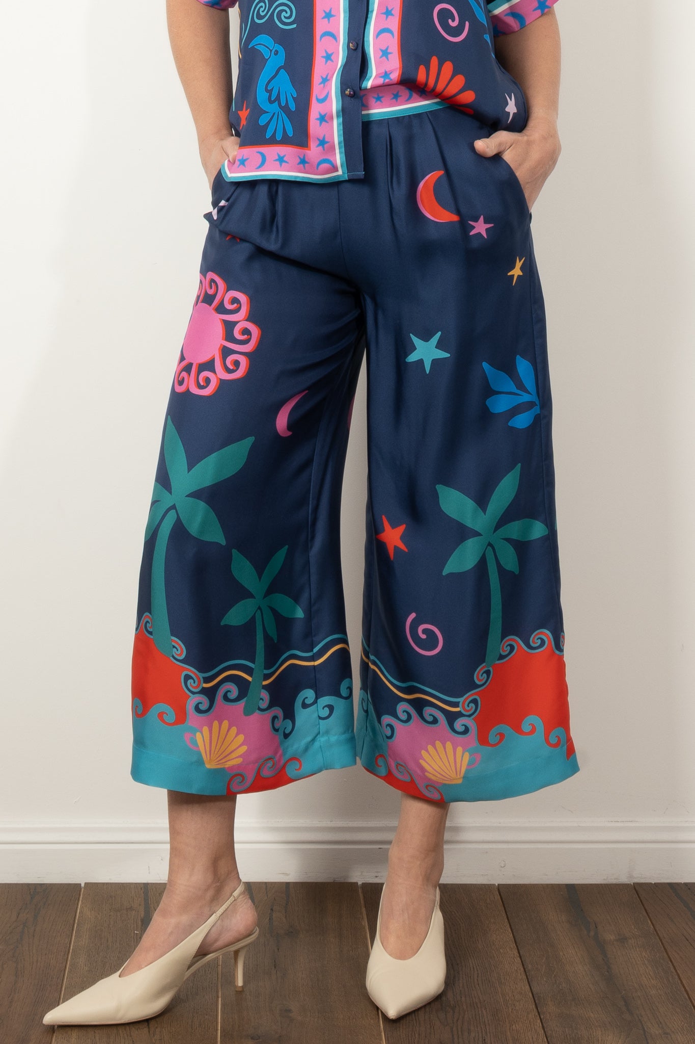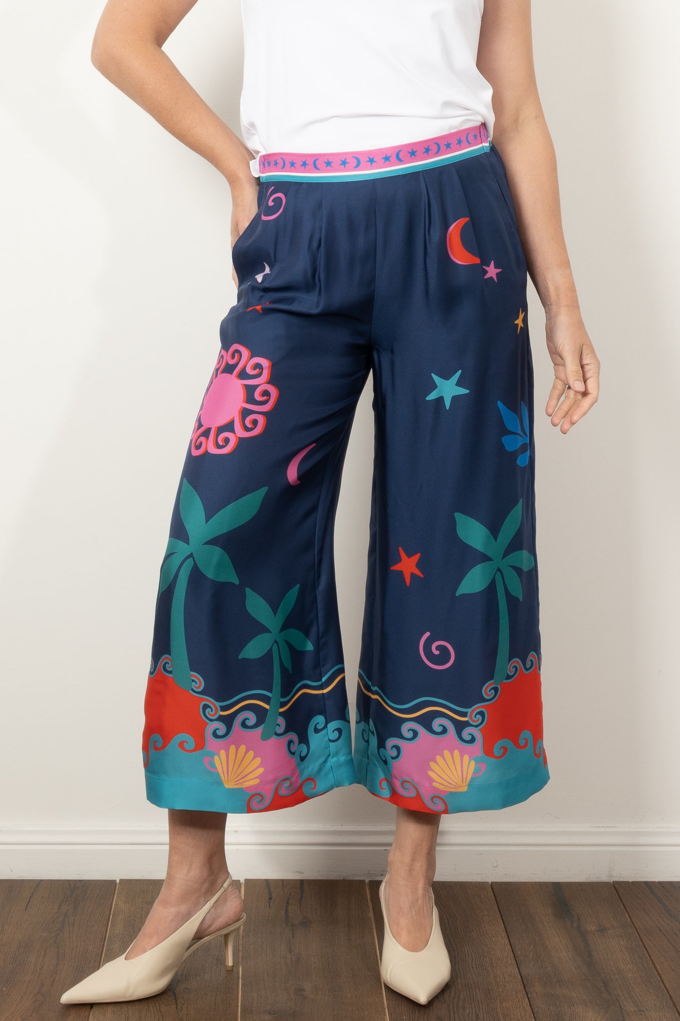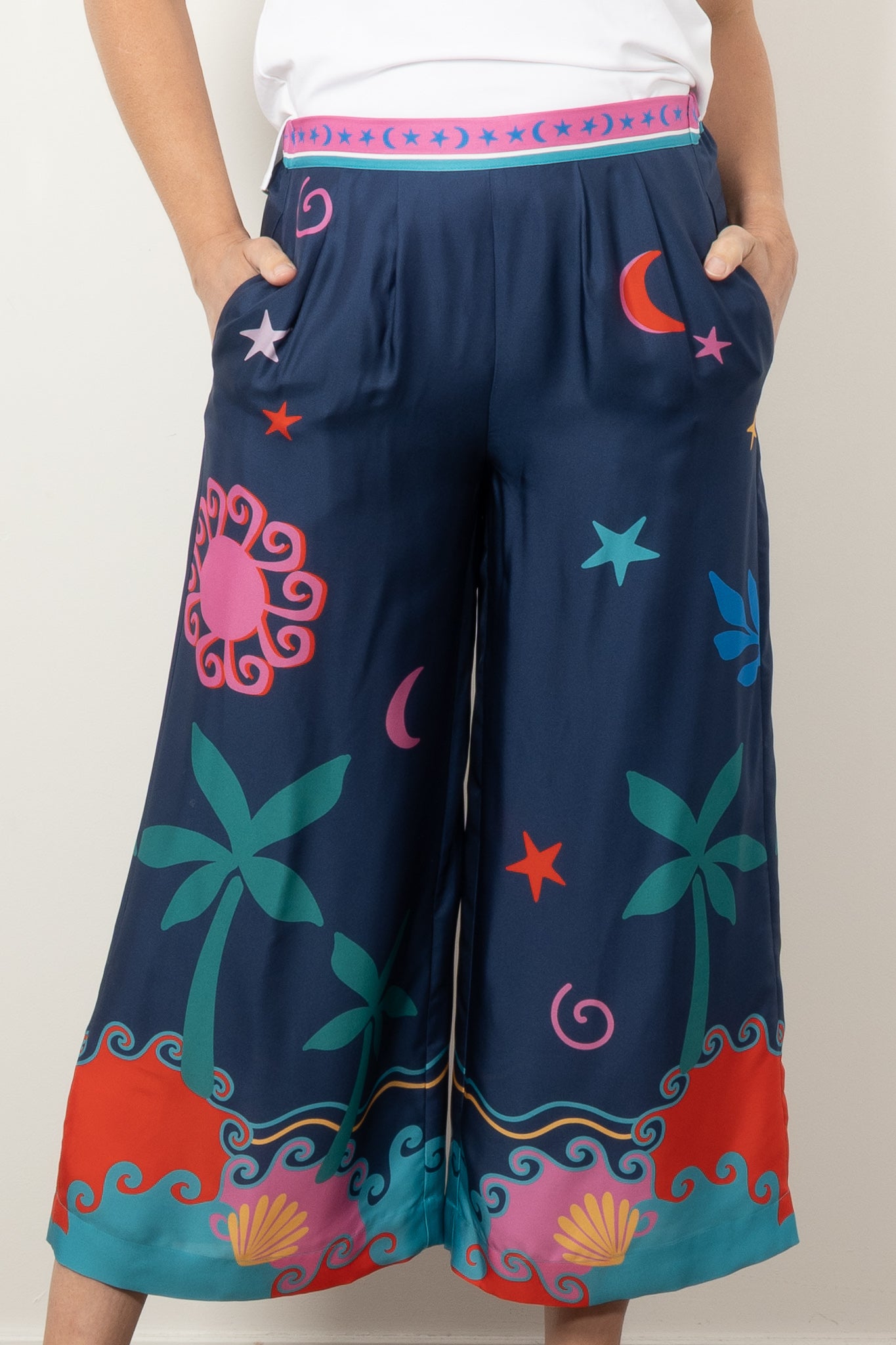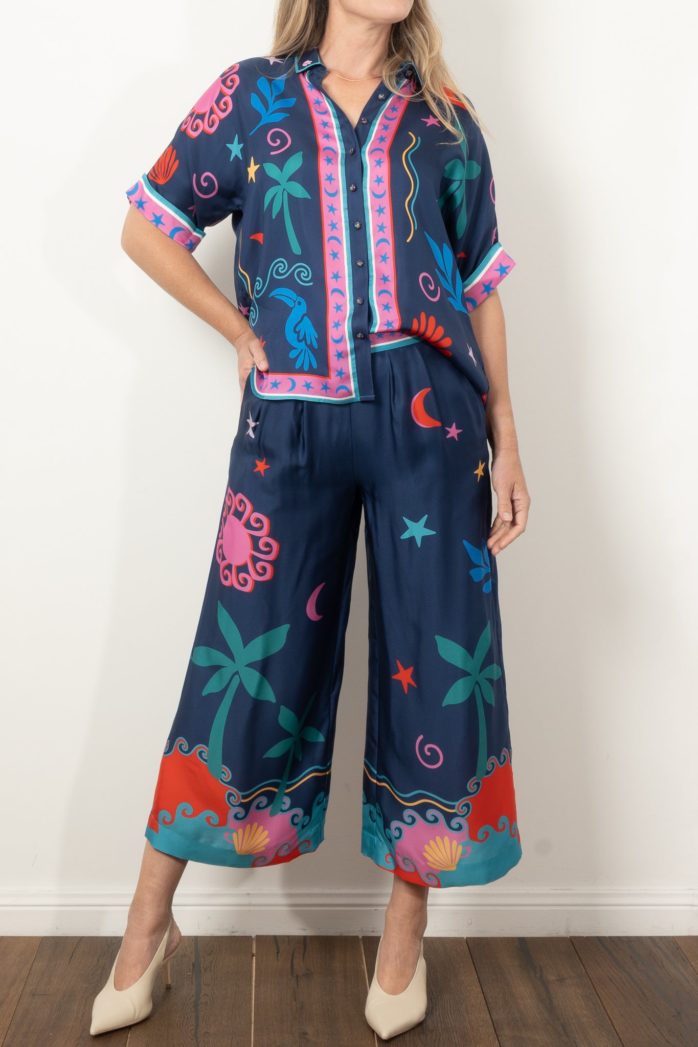 Experience effortless elegance with the Johnny Was Julissa Cropped Easy Pant. These flowing silk blend pants showcase stunning island scenes in vibrant patterns, while the elastic waist and slip pockets ensure all-day comfort. The knife pleats add a touch of sophistication to the relaxed silhouette. Perfect for vacation evenings or elevating your everyday wardrobe—these versatile cropped pants will quickly become your go-to statement piece.