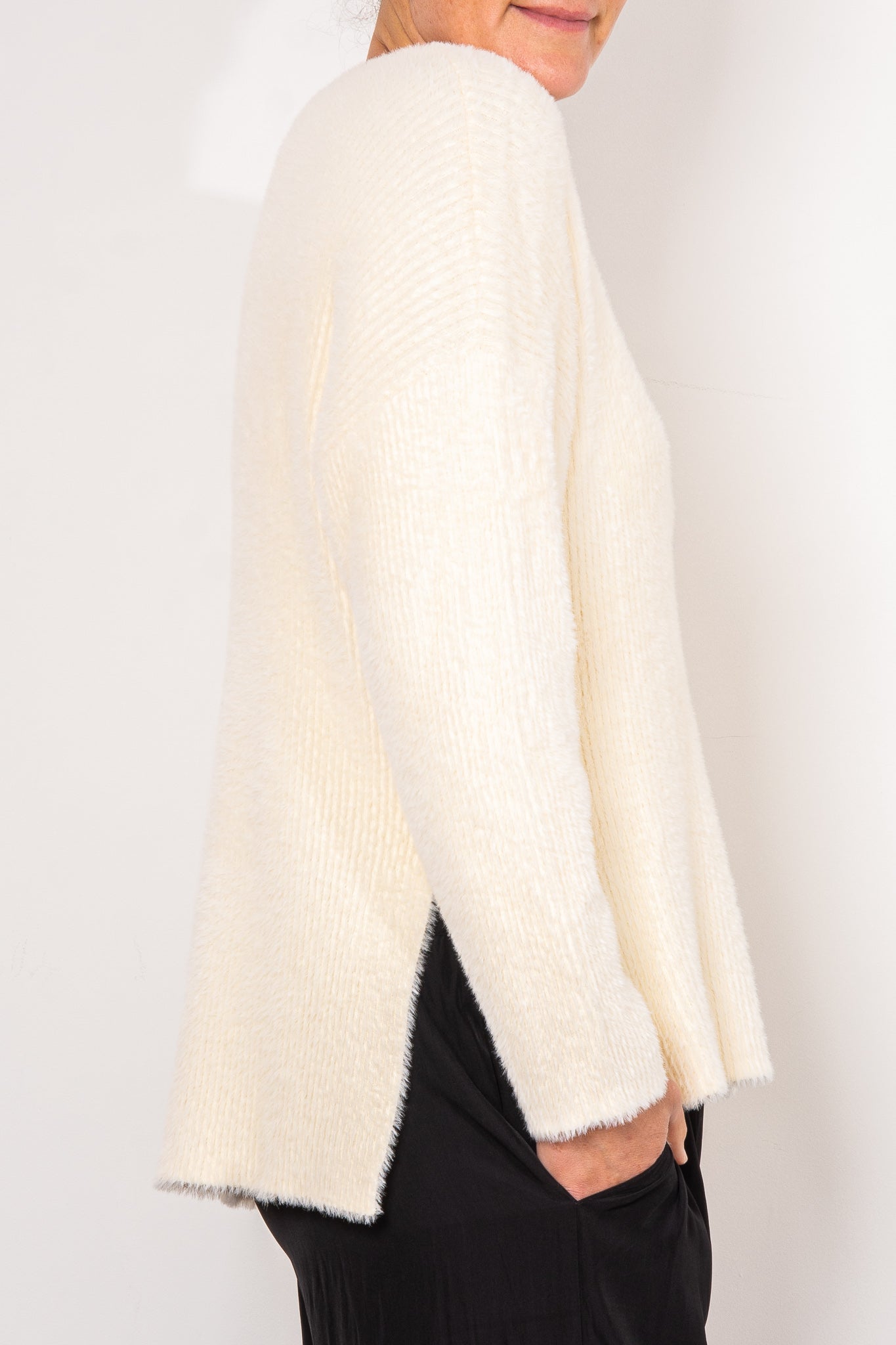 The minimal, slip-on design makes the Berlin Knit an elegant foundational wardrobe piece that can be worn season after season, year after year. The ribbed detailing and stepped hem add a touch of refinement and sophistication.
