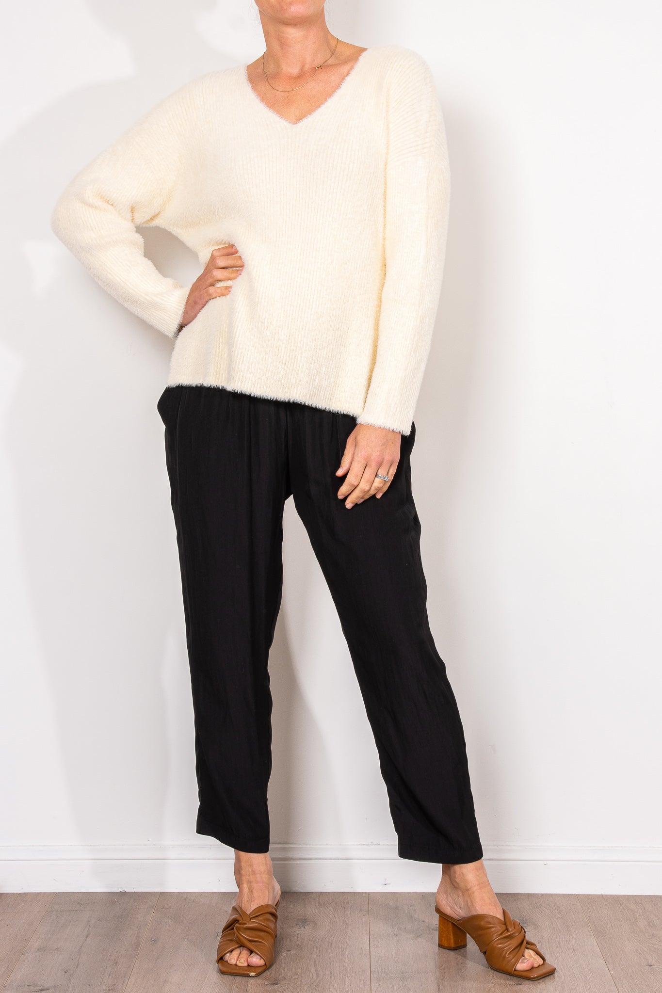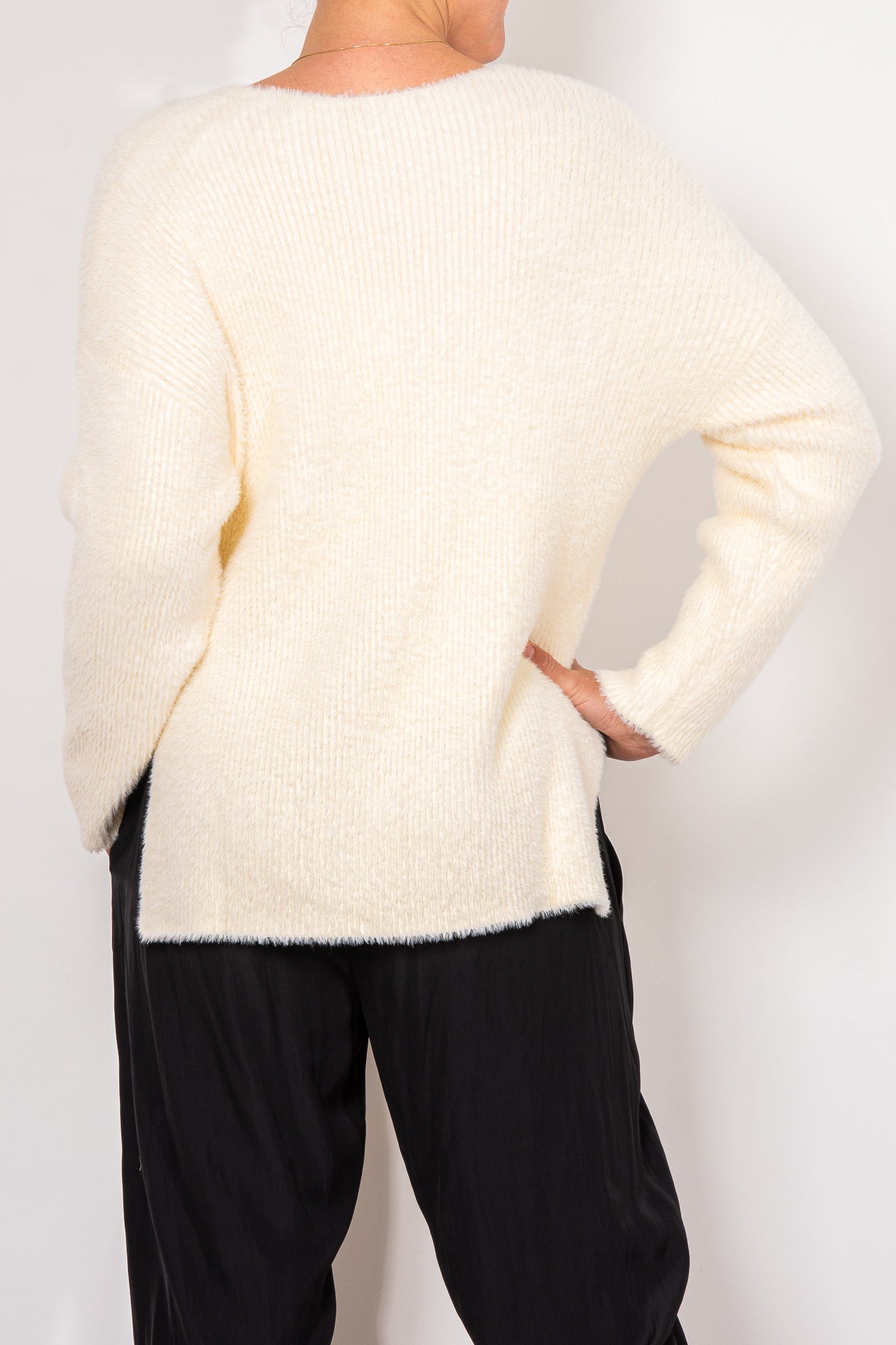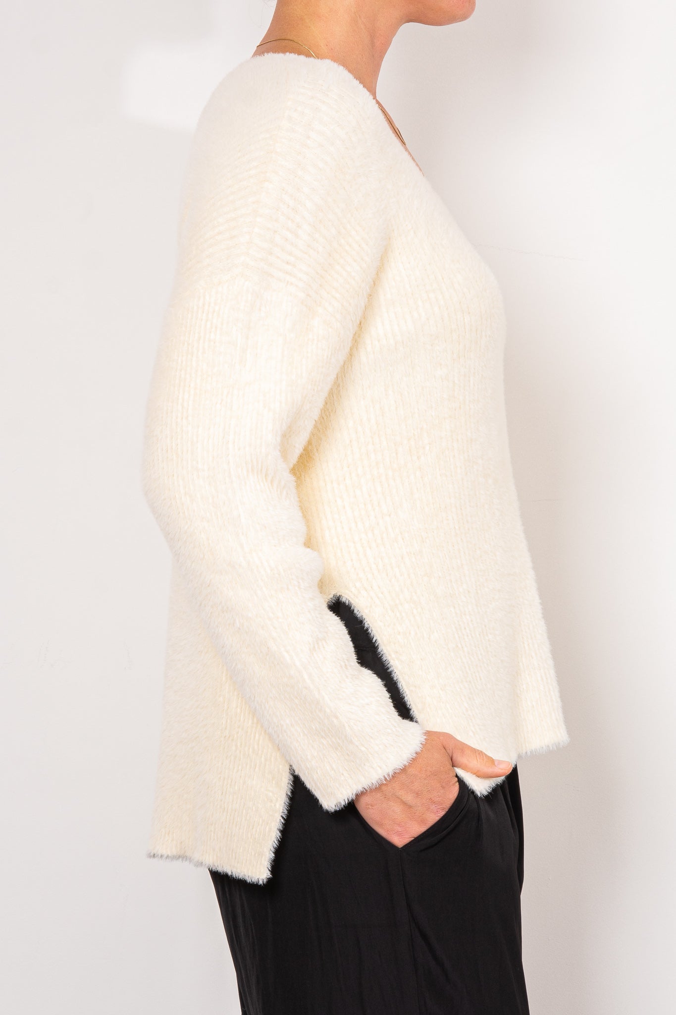 Knitted from a super soft viscose blend, the Berlin Knit features a classic V-neck design and a relaxed fit, providing both comfort and versatility. The dropped shoulders and side vents make it the perfect piece for lounging or layering during the cooler months.