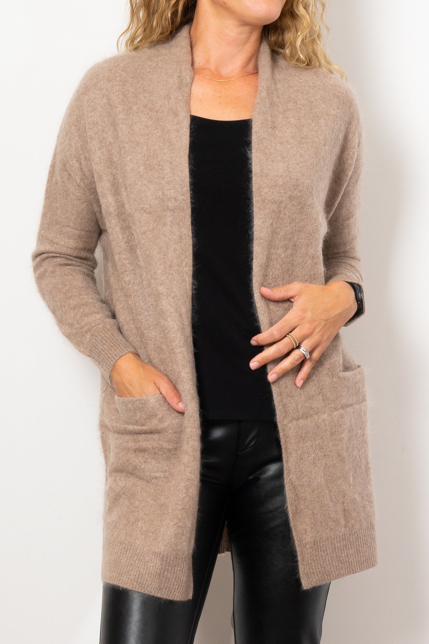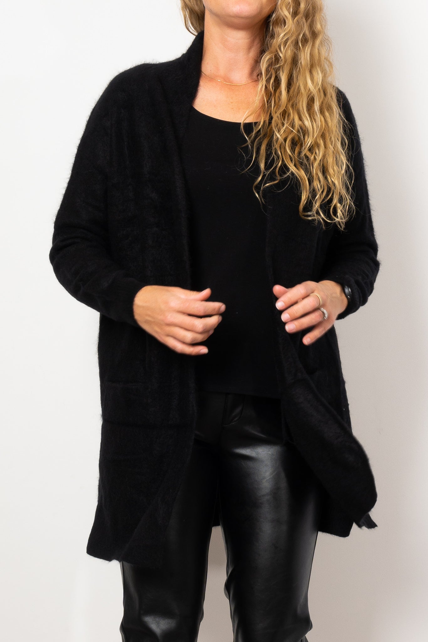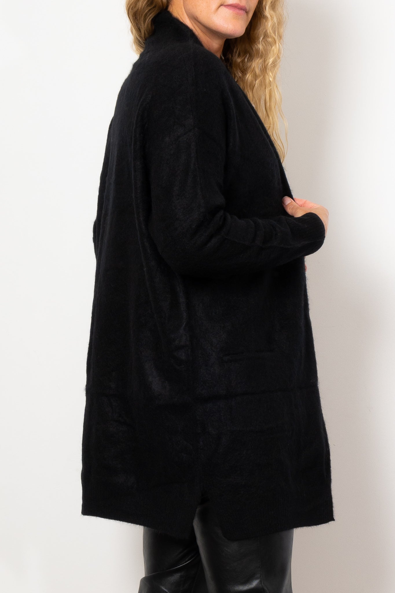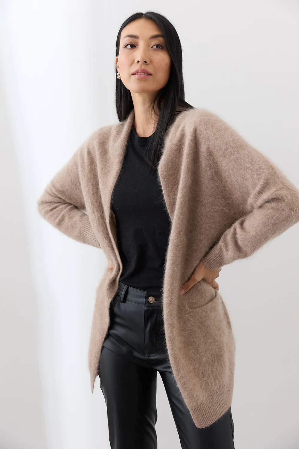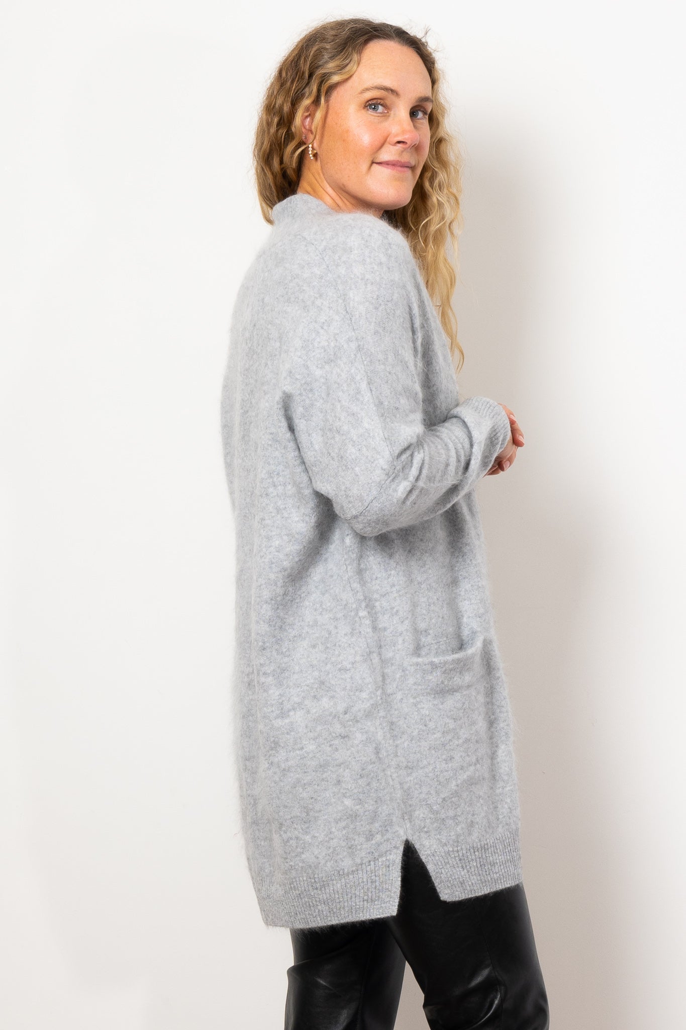 Elevate your cozy wardrobe with the Mia Fratino Prim Cardi. Made from brushed cashmere, this versatile knit offers both comfort and style. Wear it at home with a singlet and lounge pants, or style it for a casual day out with a t-shirt and jeans. Soft, essential, and effortlessly chic.