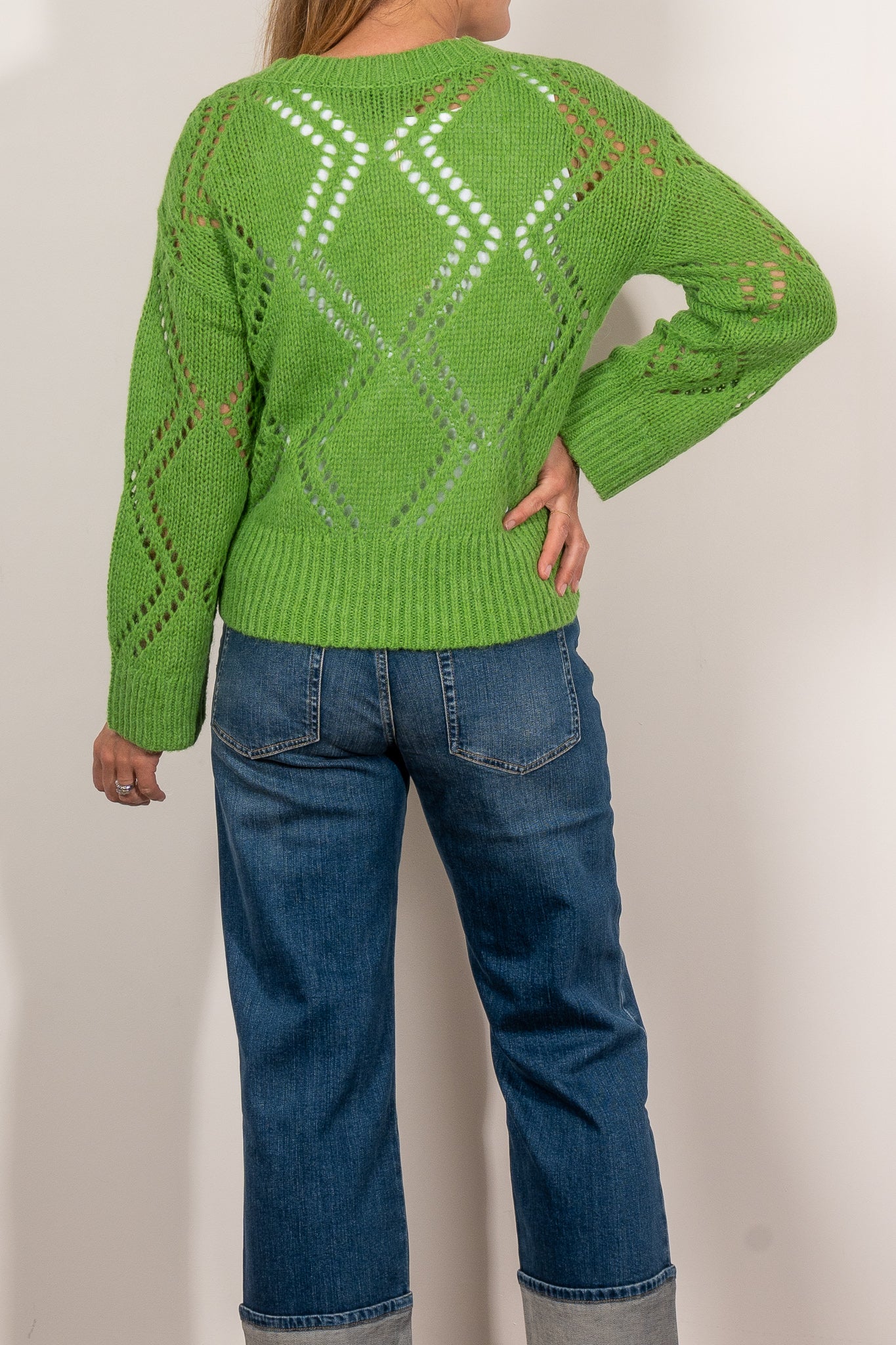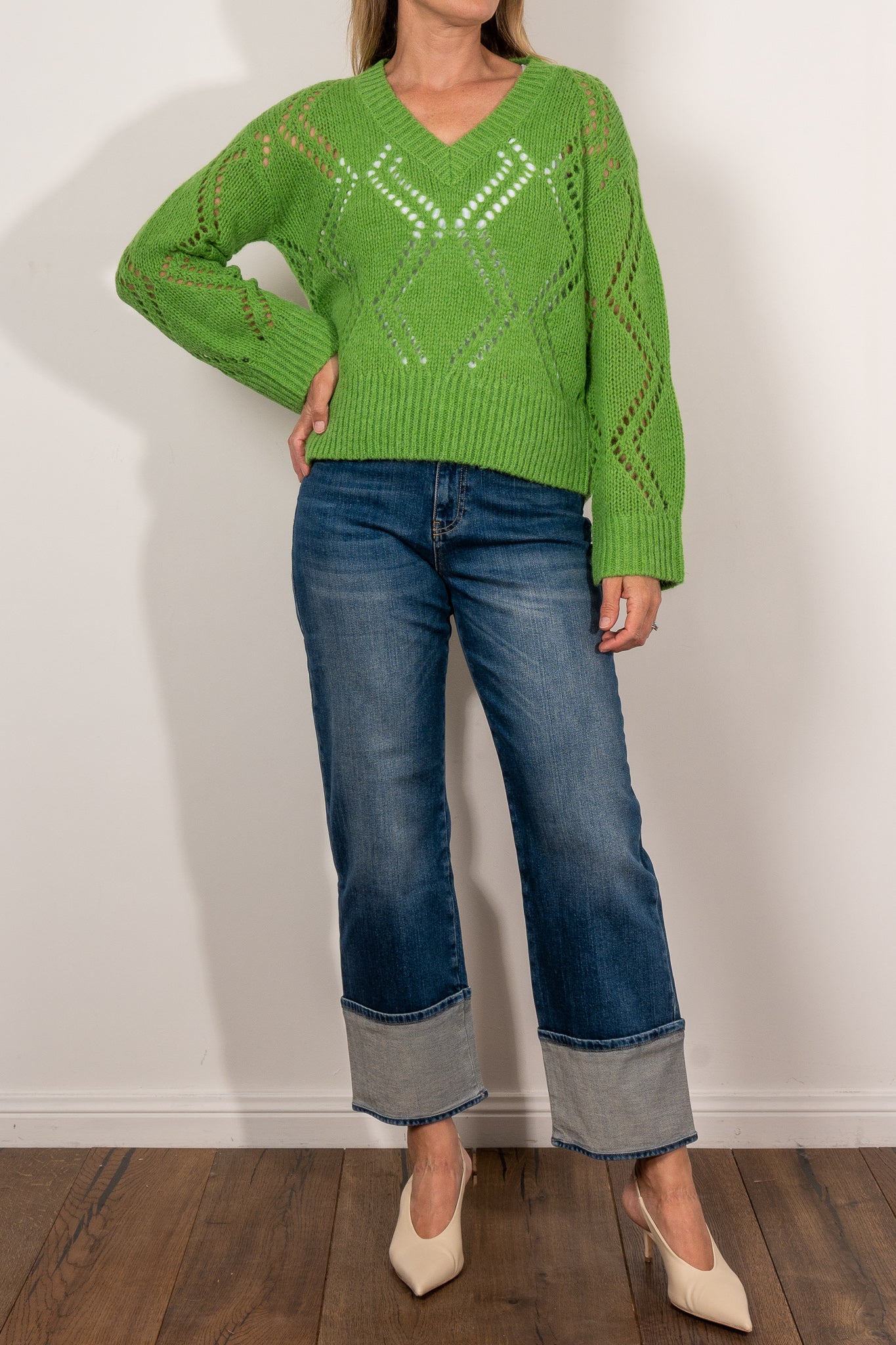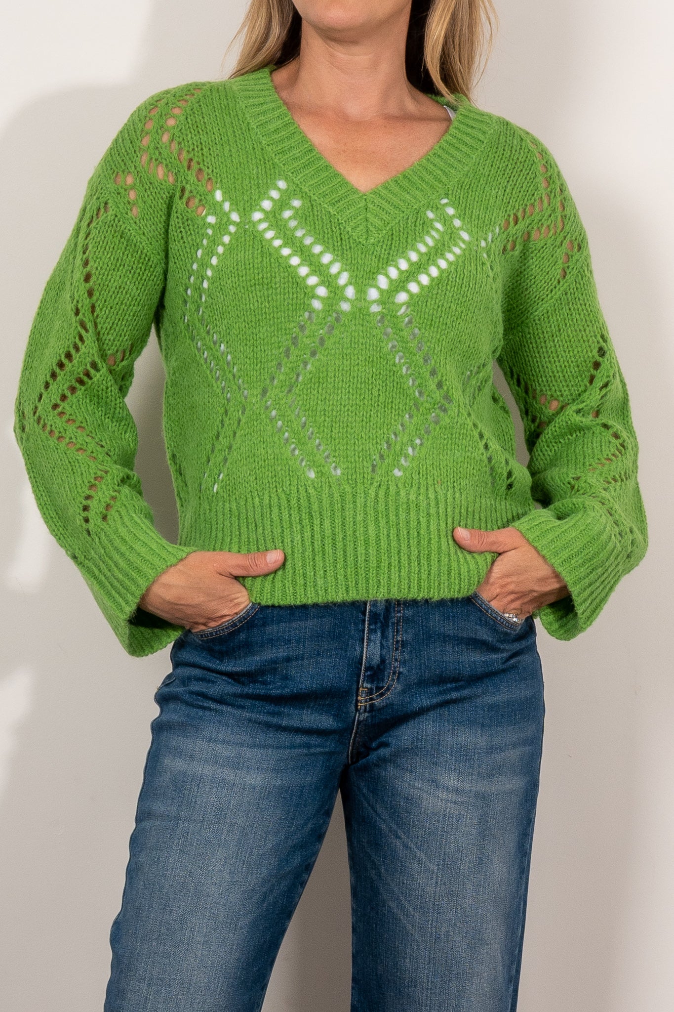 - Bold argyle pointelle knit is inspired by heritage knitwear.