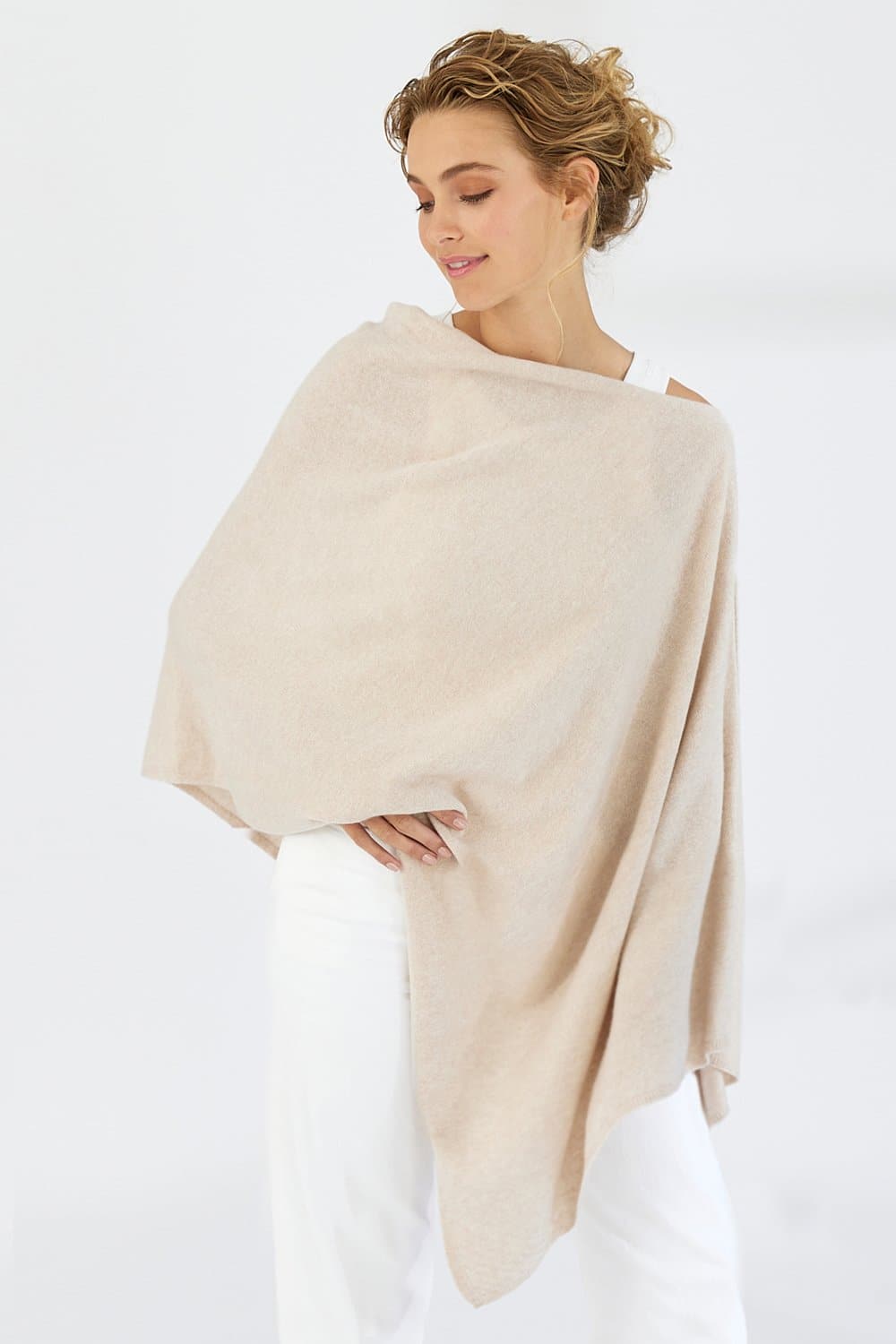 100% Pure Mongolian Cashmere Poncho. Luxuriously soft & lightweight this poncho is easy to tuck away into your handbag at the ready for any occasion.
