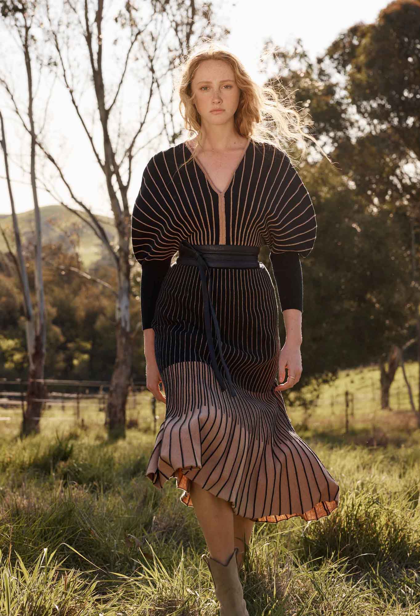 Once Was Equinox Fine Wool Ombre Stripe Dress